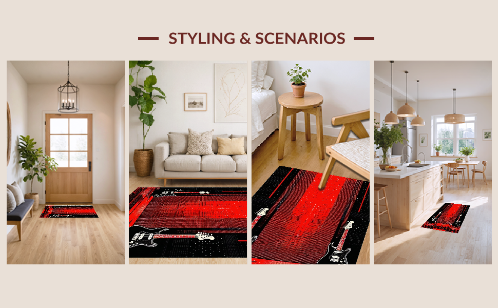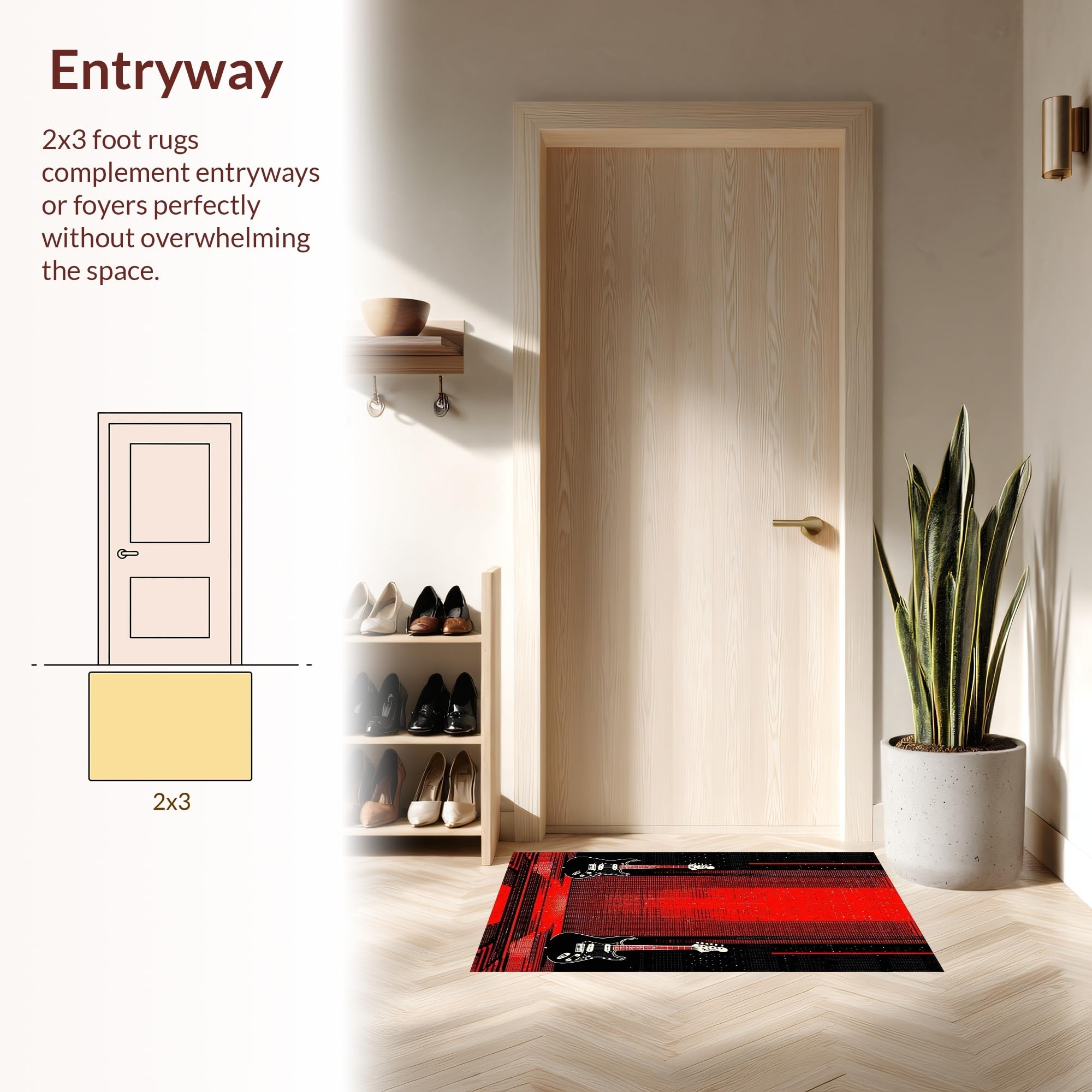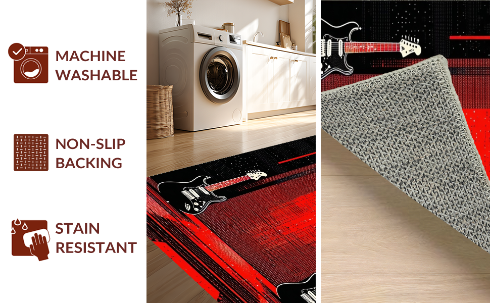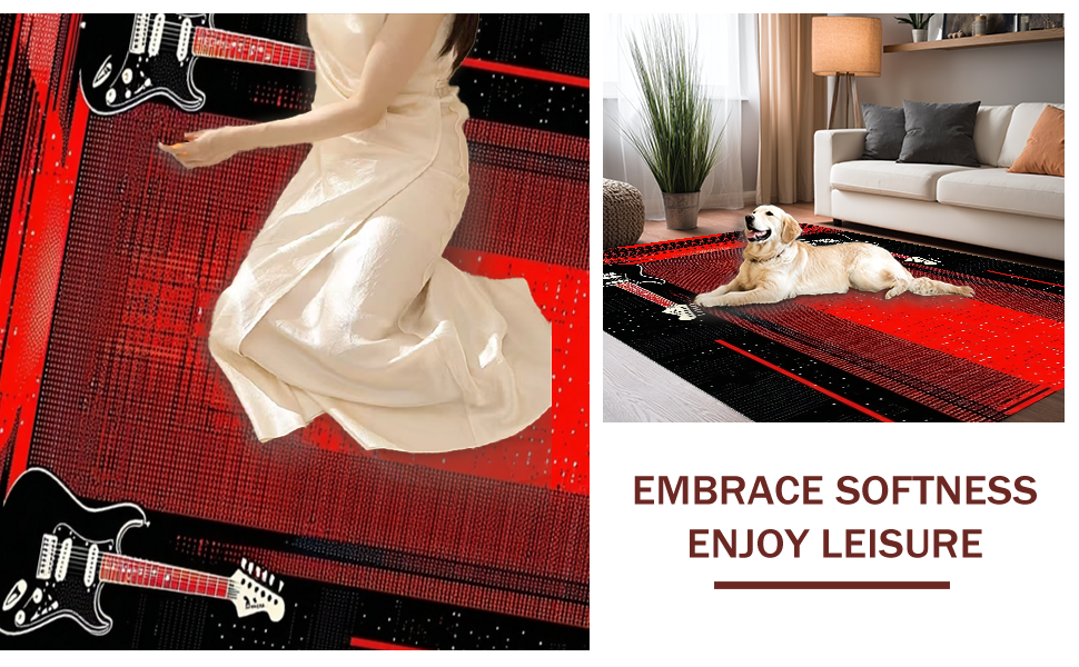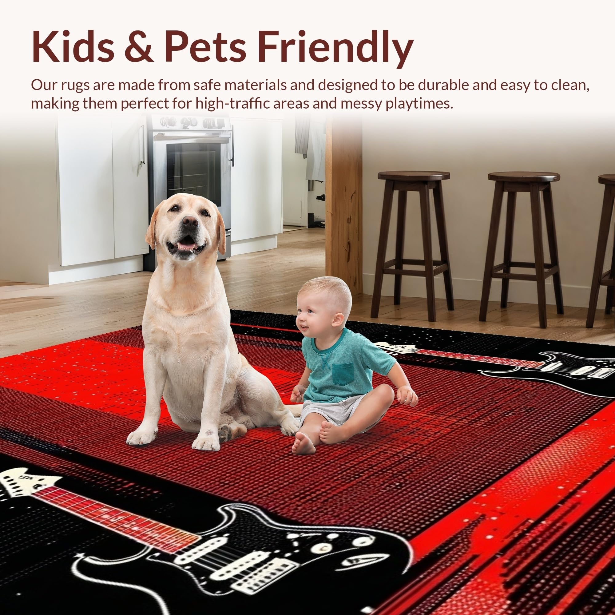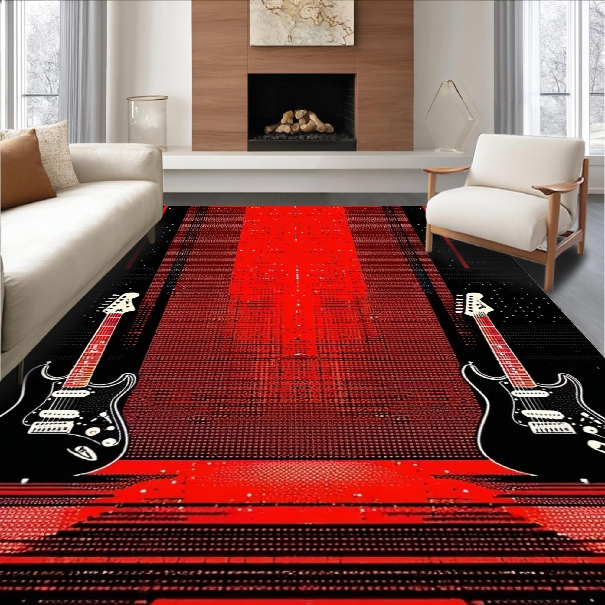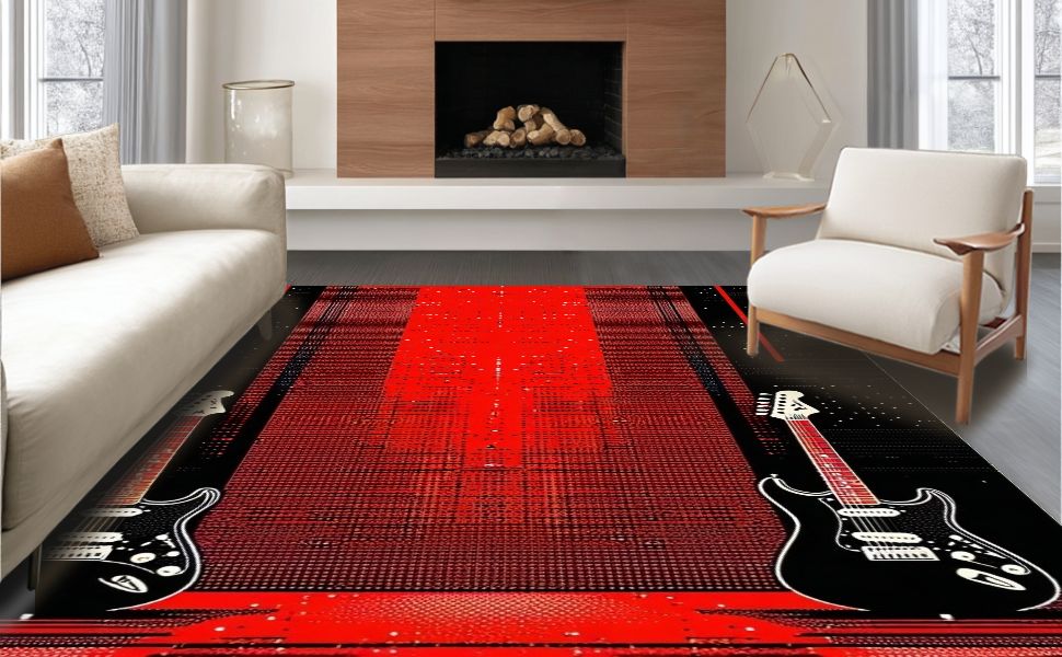 Ultra Soft Area Rug, Non Slip, Stain Resistant, Washable Area Rugs for Living Room, Bedroom, Eclectic Contemporary Music Motif(Red) Overview: