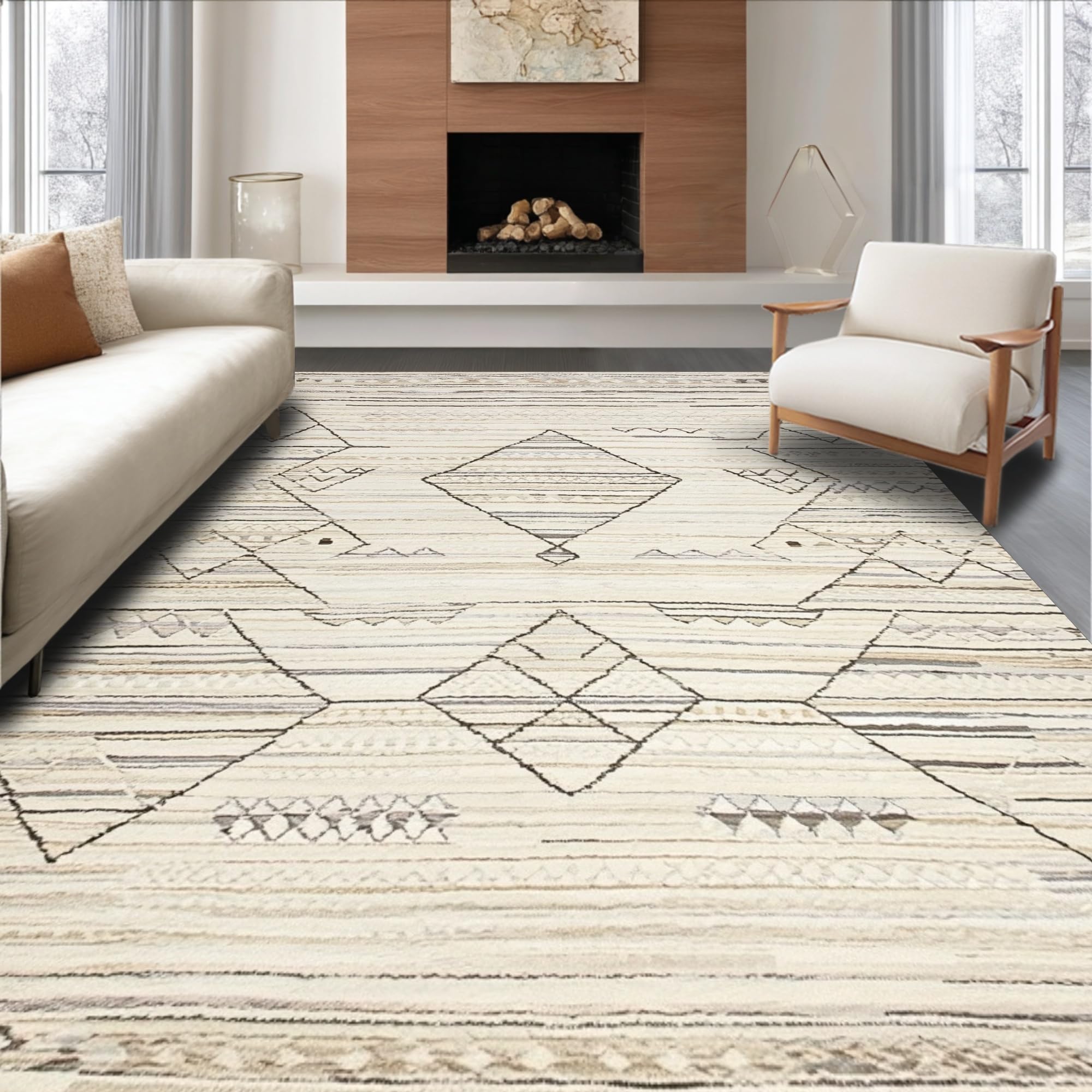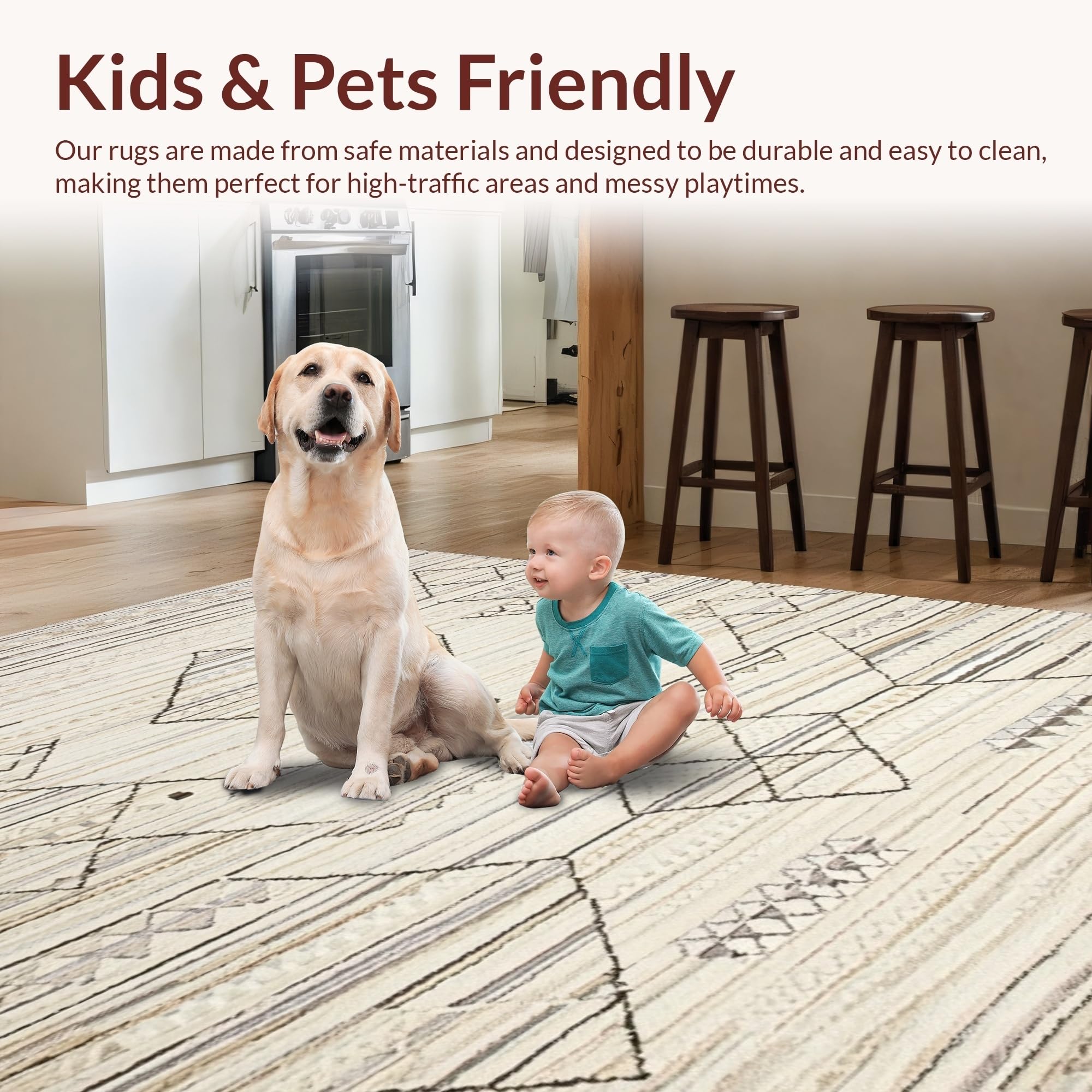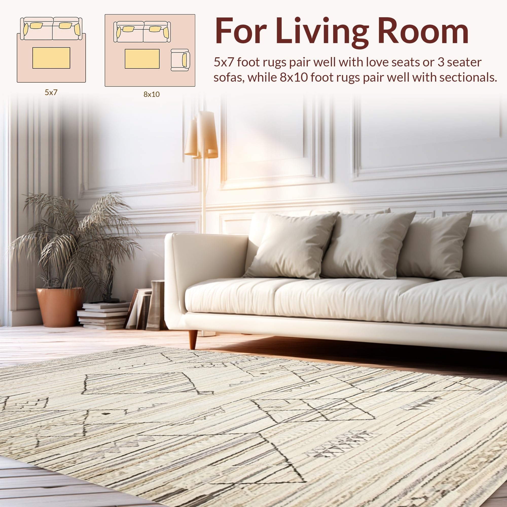 Ultra Soft Area Rug, Non Slip, Stain Resistant, Washable Area Rugs for Living Room, Bedroom, Eclectic Cream Tasseled Elegance(Beige) Overview: