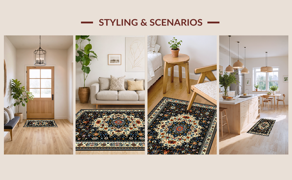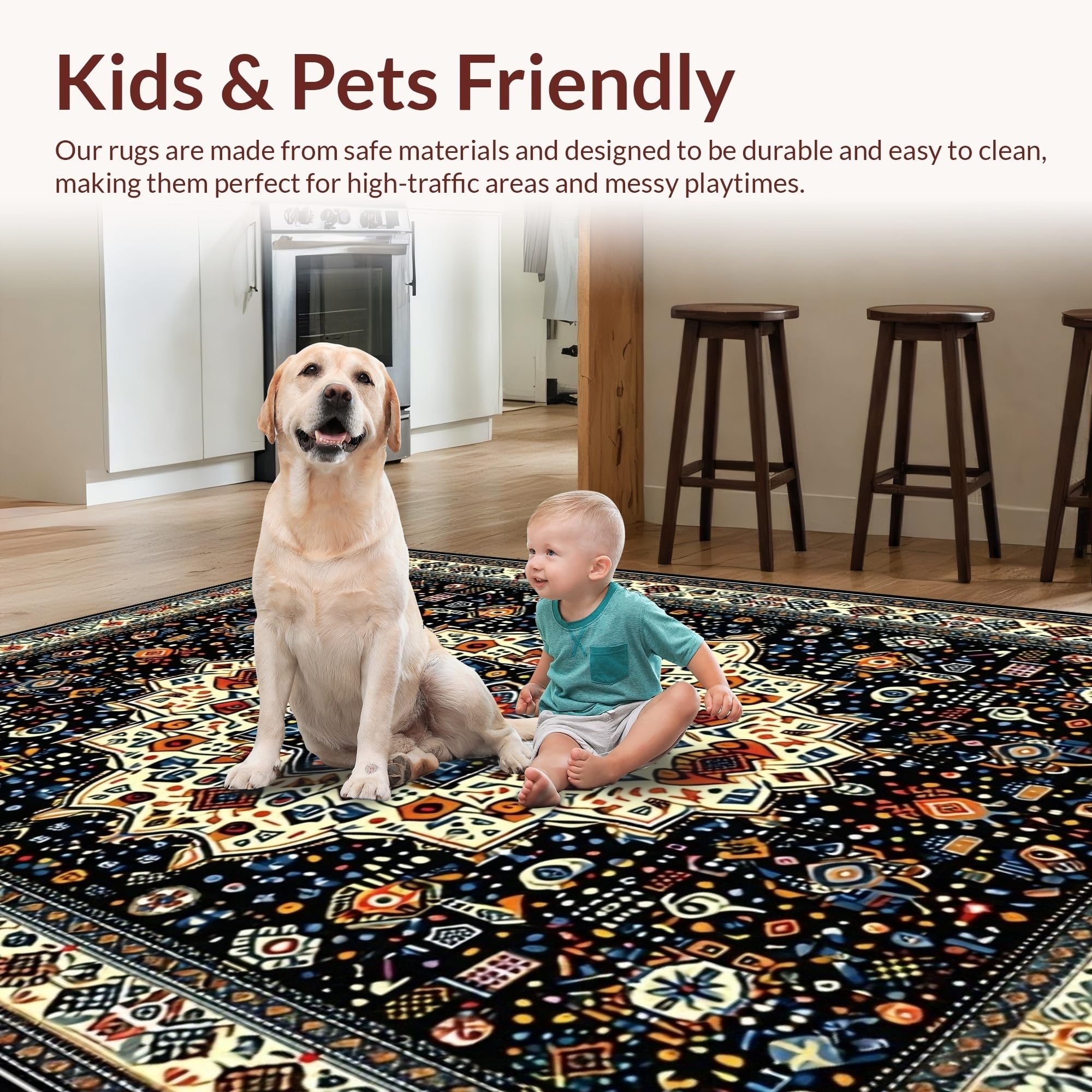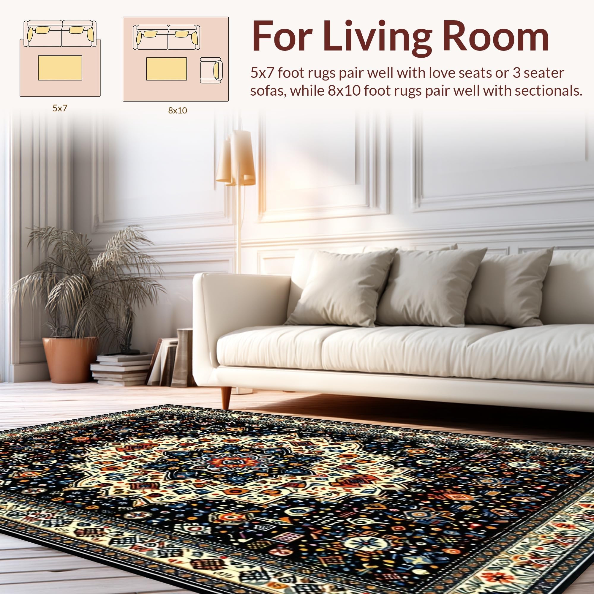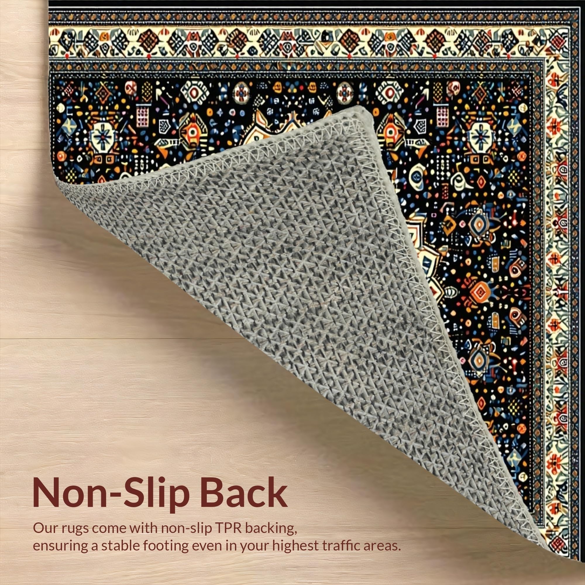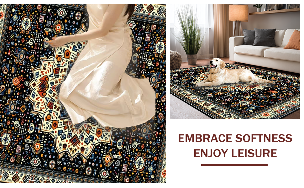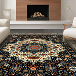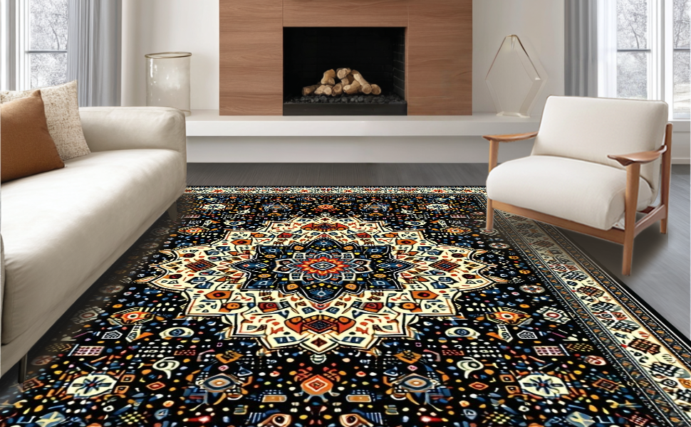 Ultra Soft Area Rug, Non Slip, Stain Resistant, Washable Area Rugs for Living Room, Bedroom, Eclectic Earth Tone Medallion(Blue) Overview: