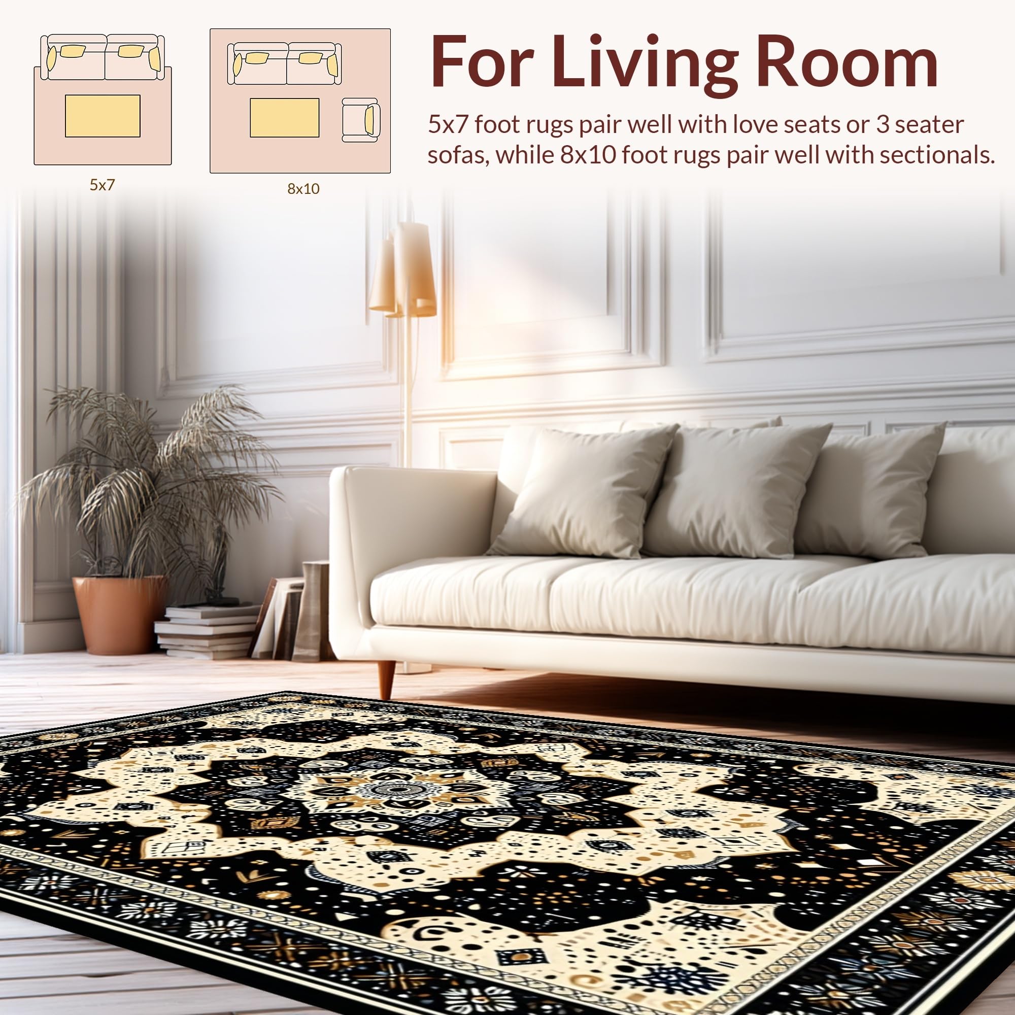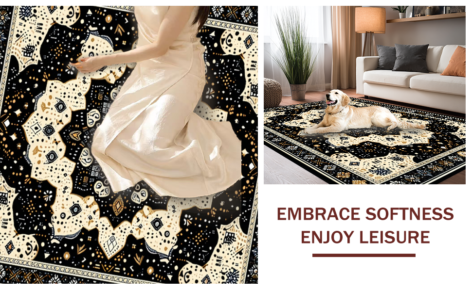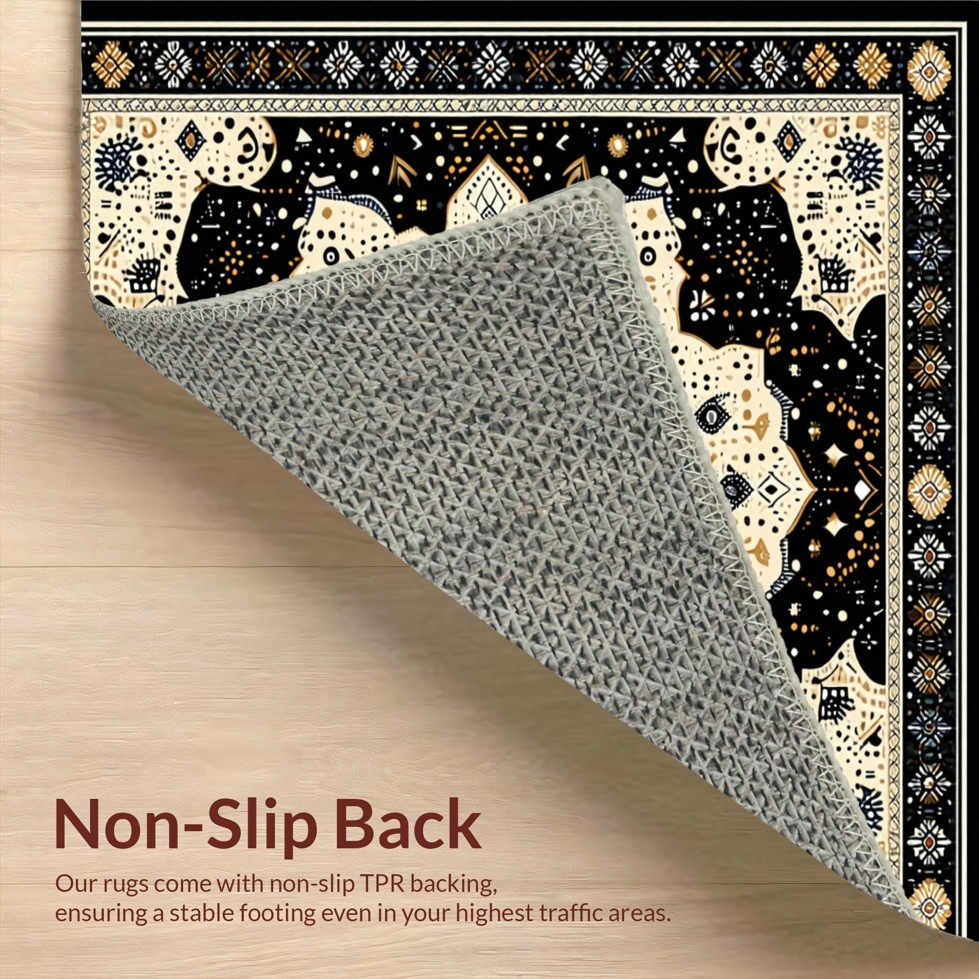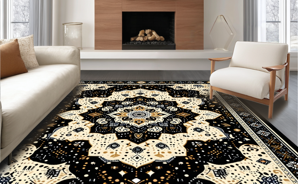 Ultra Soft Area Rug, Non Slip, Stain Resistant, Washable Area Rugs for Living Room, Bedroom, Eclectic Earth Tone Patterns(Black) Overview: