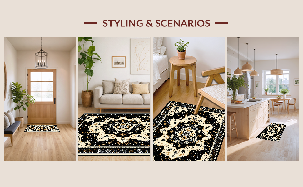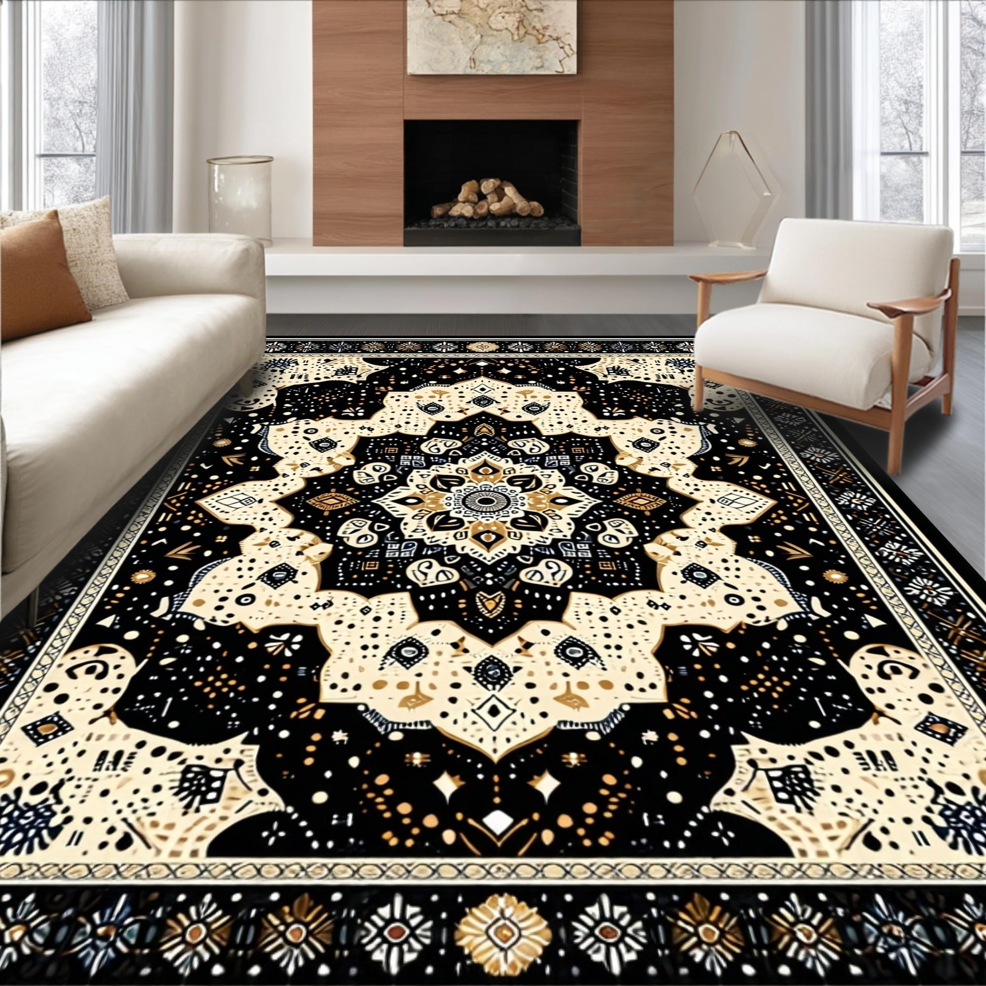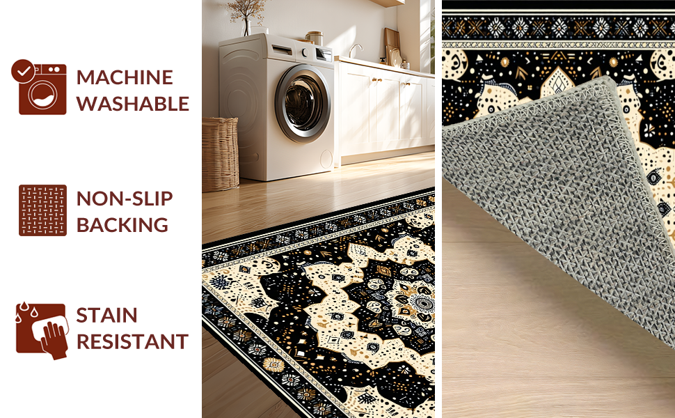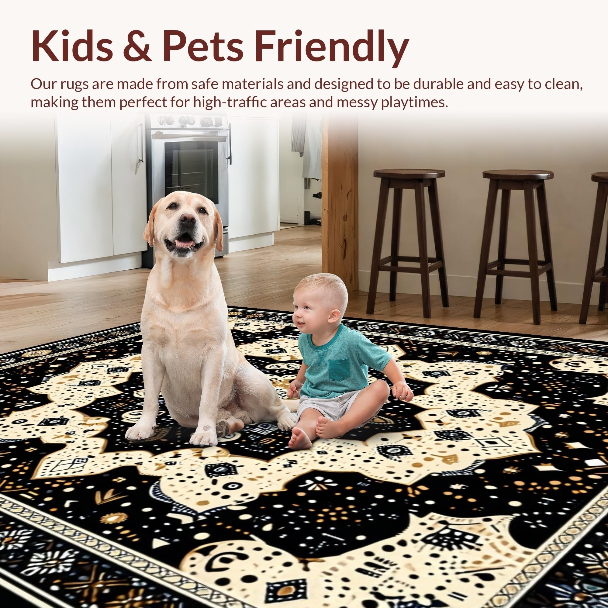 Ultra Soft Area Rug, Non Slip, Stain Resistant, Washable Area Rugs for Living Room, Bedroom, Eclectic Earth Tone Patterns(Black) Overview: