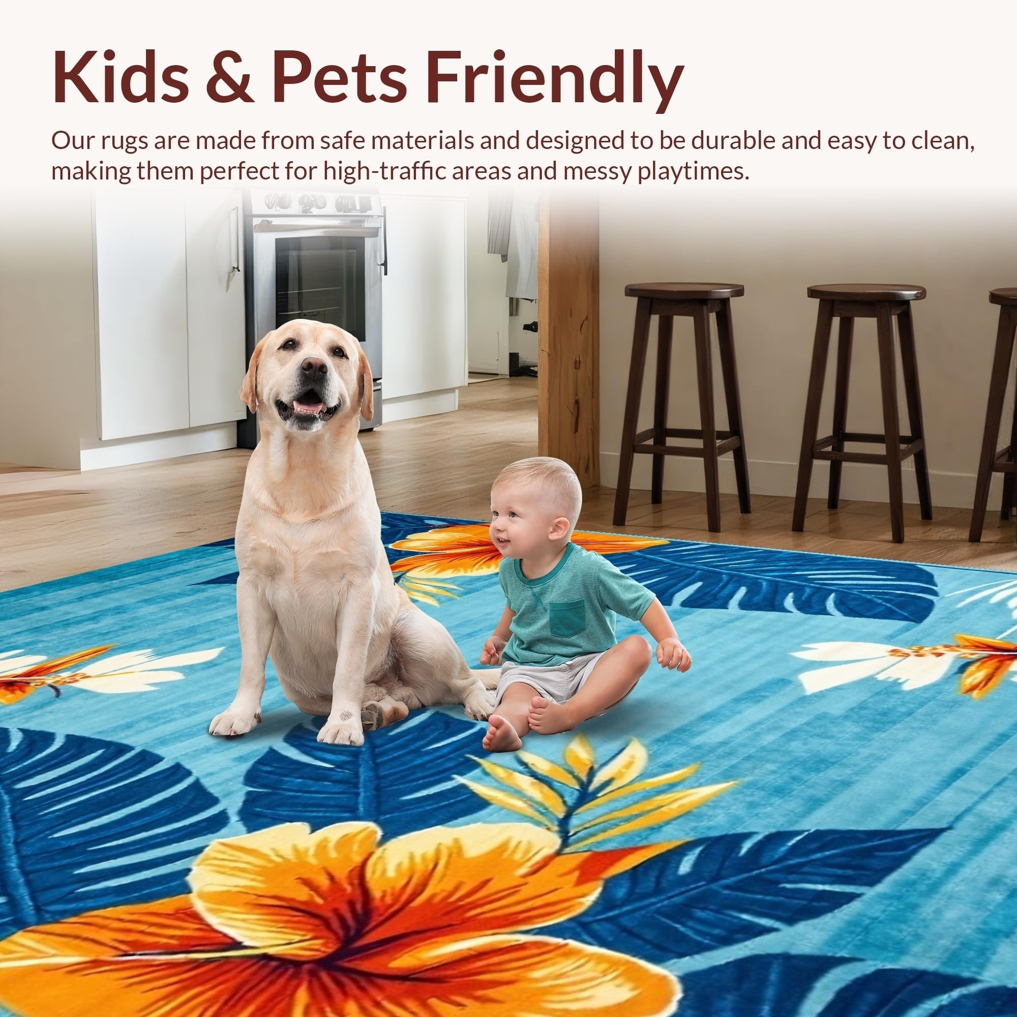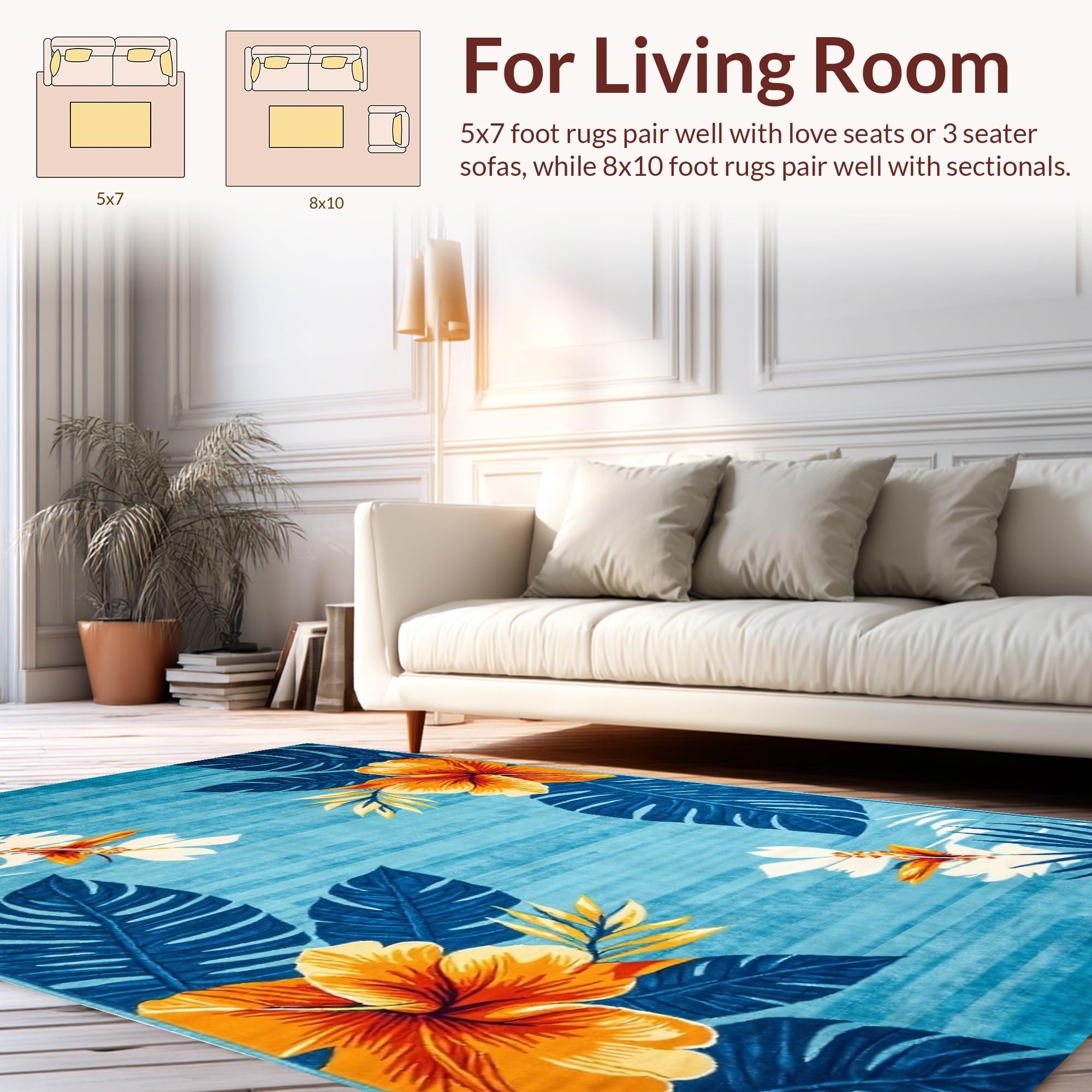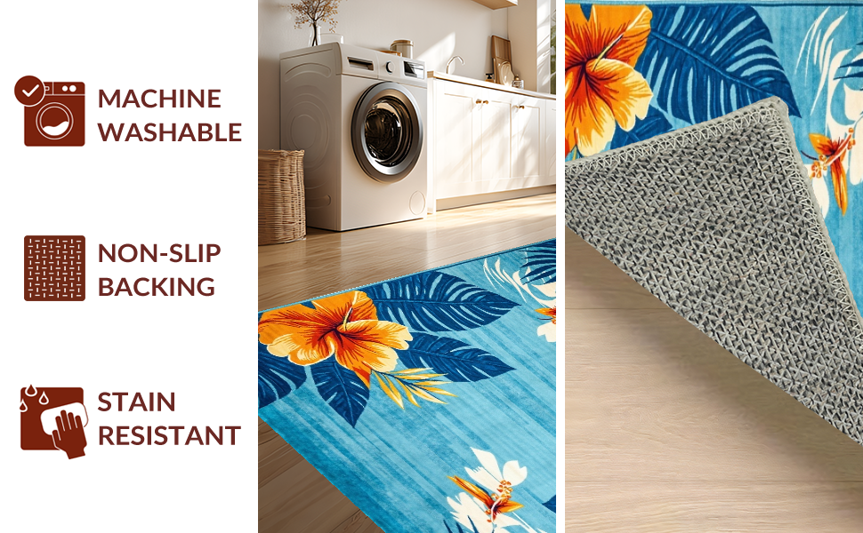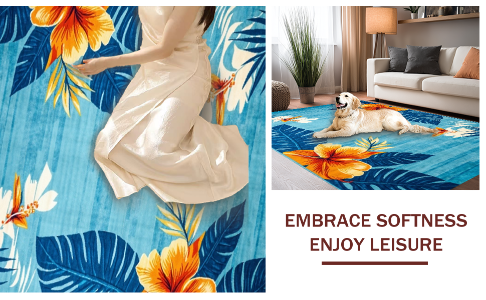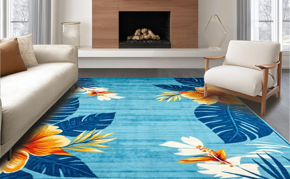Ultra Soft Area Rug, Non Slip, Stain Resistant, Washable Area Rugs for Living Room, Bedroom, Eclectic Earthy Floral Fusion(Blue) Overview: