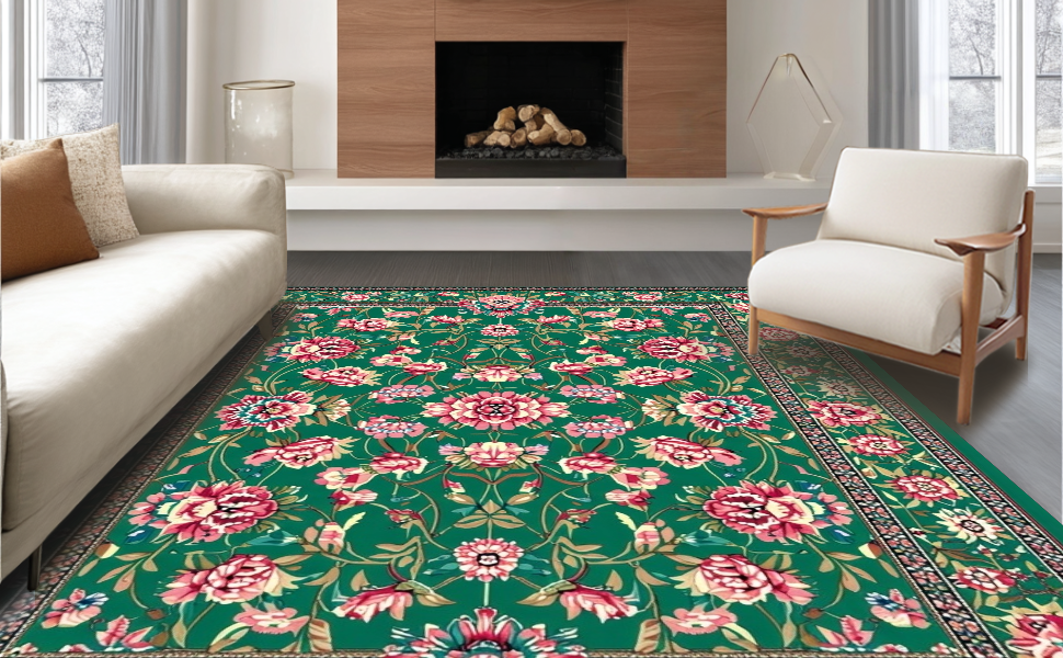 Ultra Soft Area Rug, Non Slip, Stain Resistant, Washable Area Rugs for Living Room, Bedroom, Eclectic Earthy Green Palette(Green) Overview:
