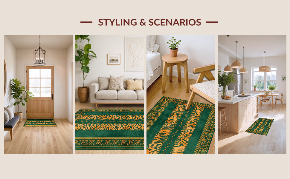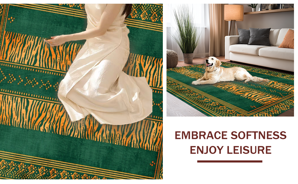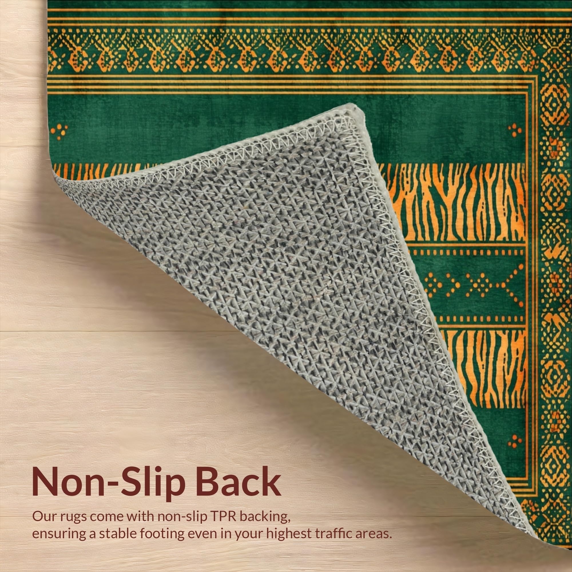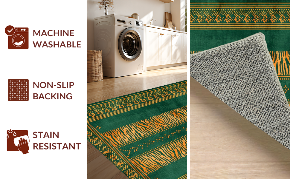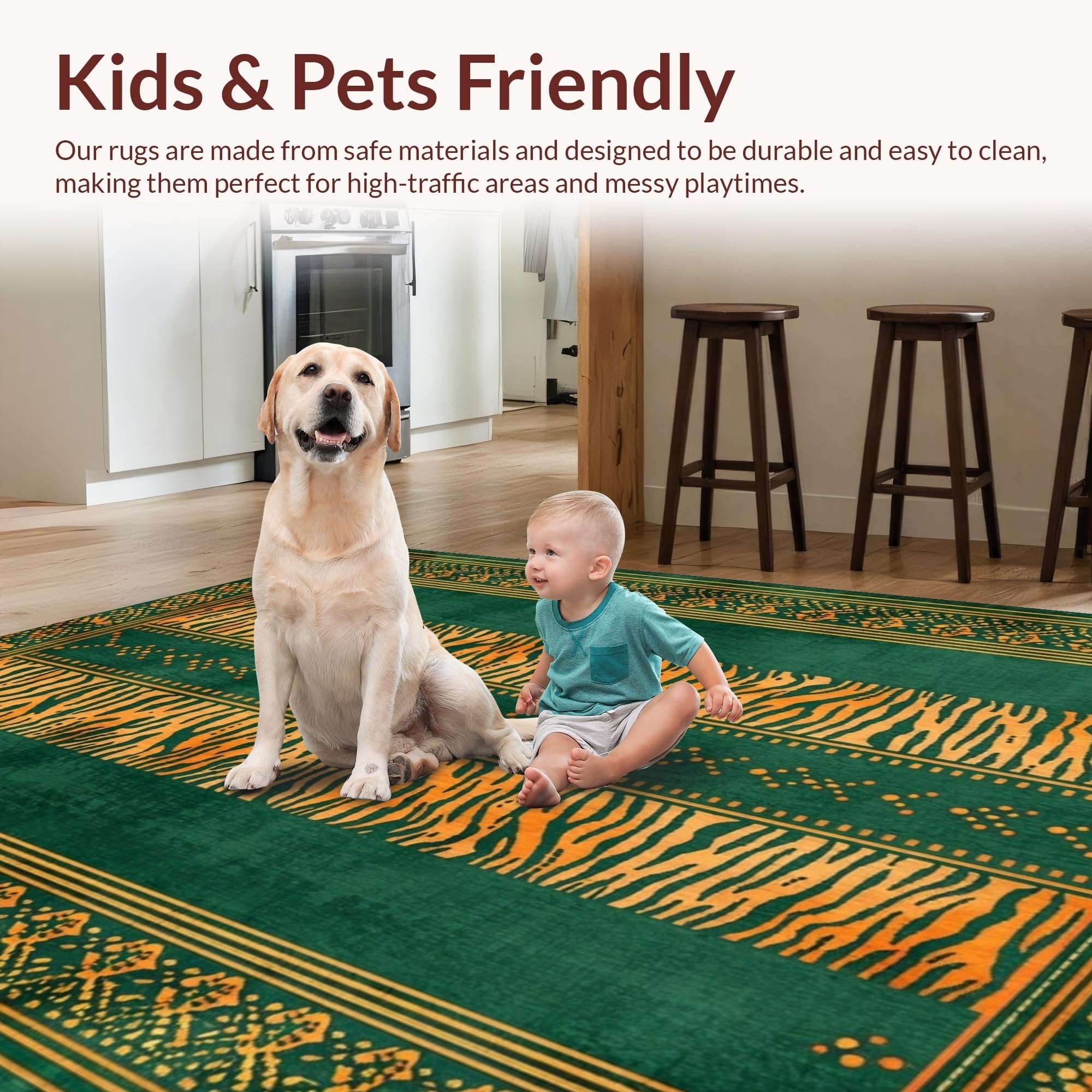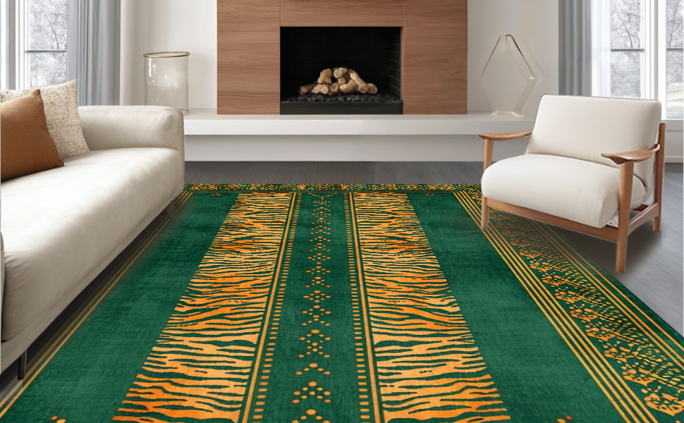 Ultra Soft Area Rug, Non Slip, Stain Resistant, Washable Area Rugs for Living Room, Bedroom, Eclectic Earthy Toned Design(Green) Overview:
