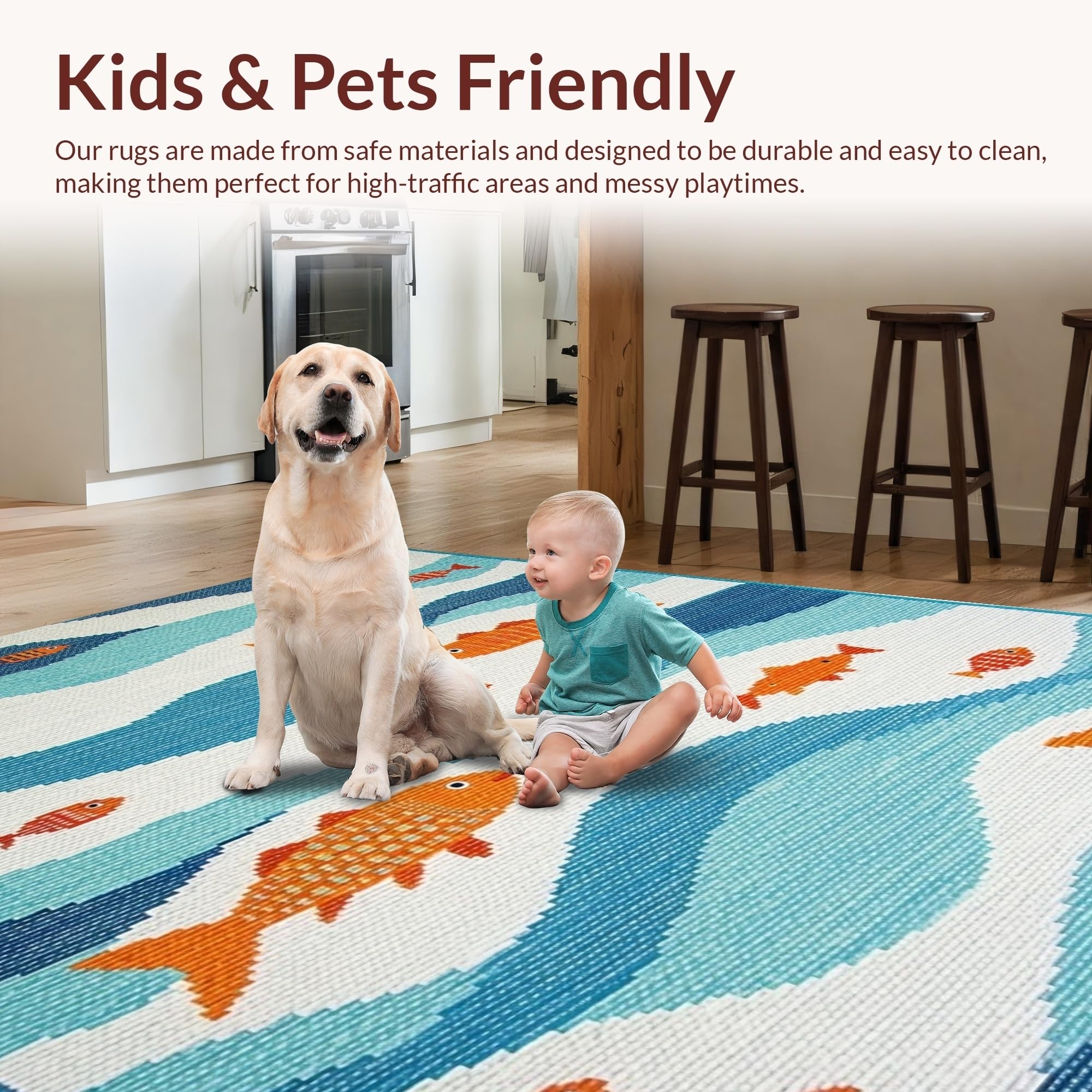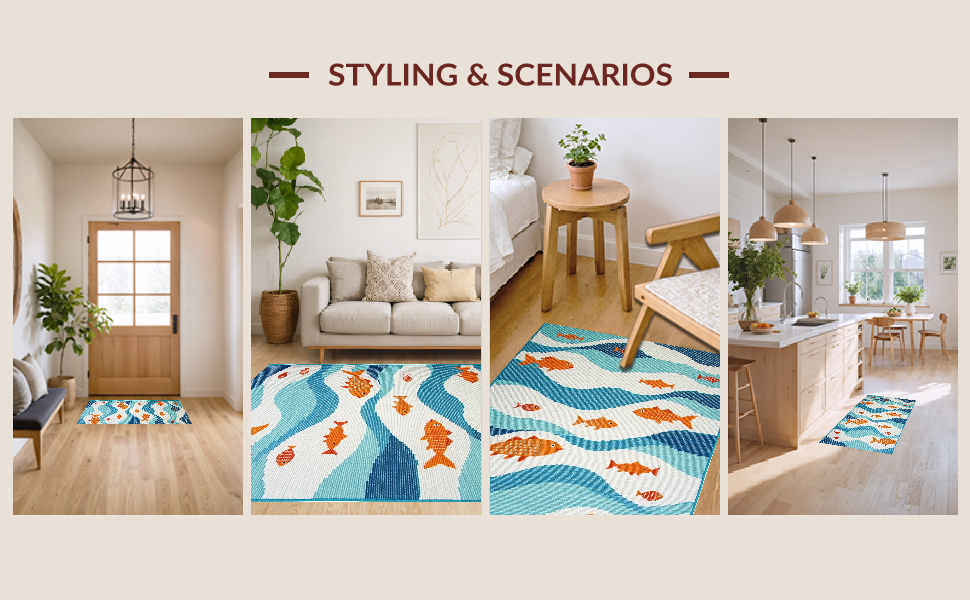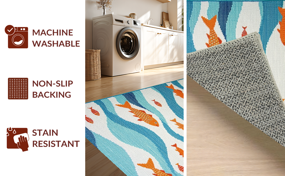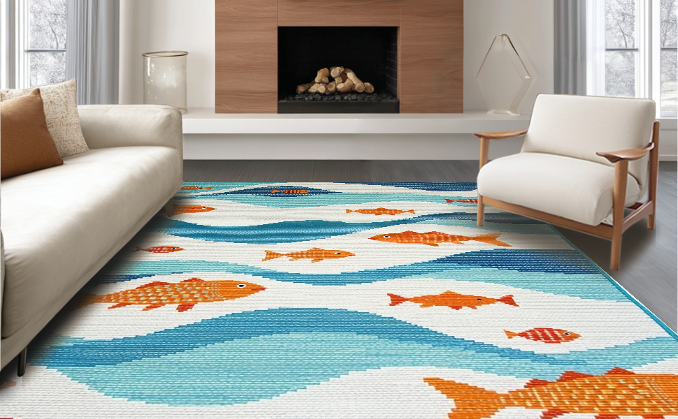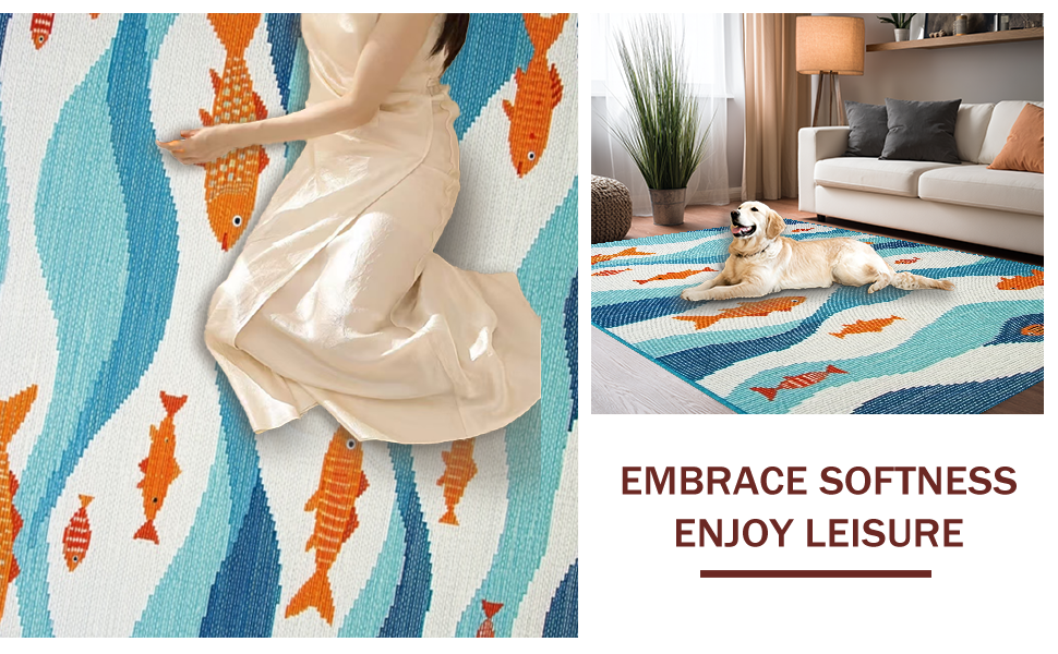 Ultra Soft Area Rug, Non Slip, Stain Resistant, Washable Area Rugs for Living Room, Bedroom, Eclectic Fisherman’s Charm Decor(Blue) Overview: