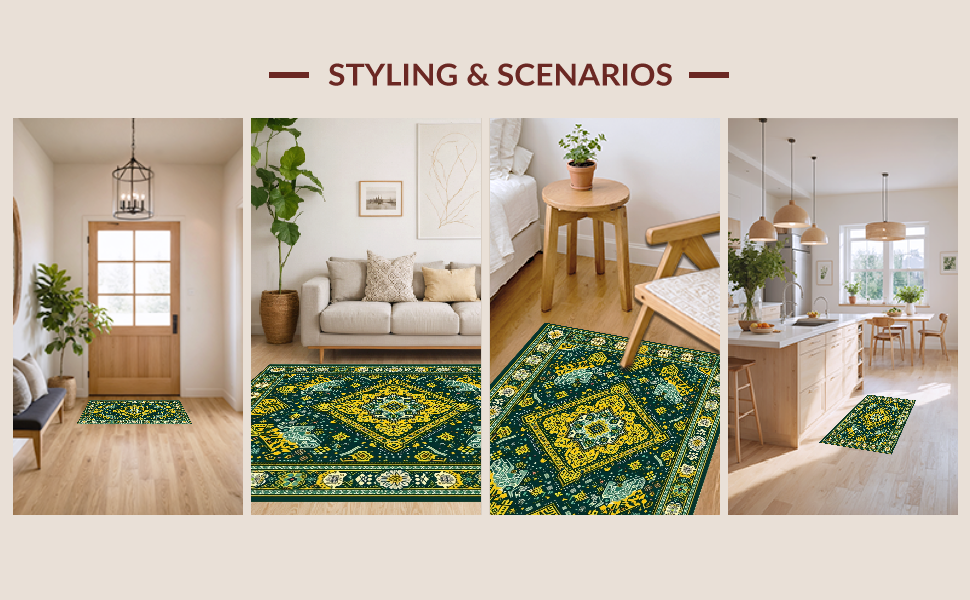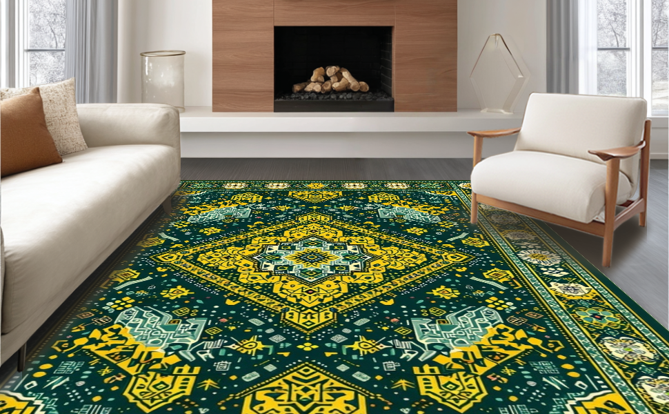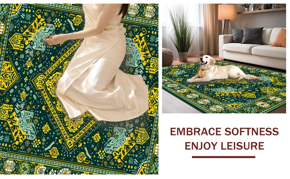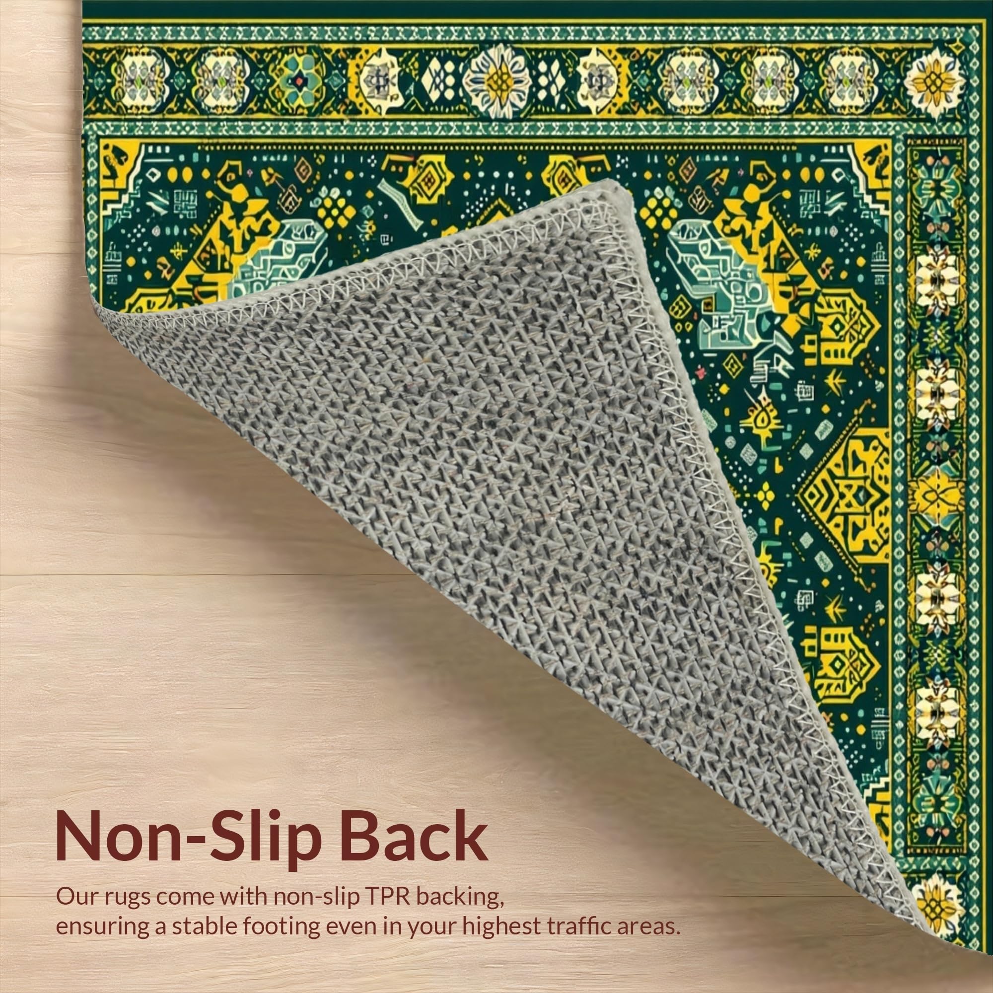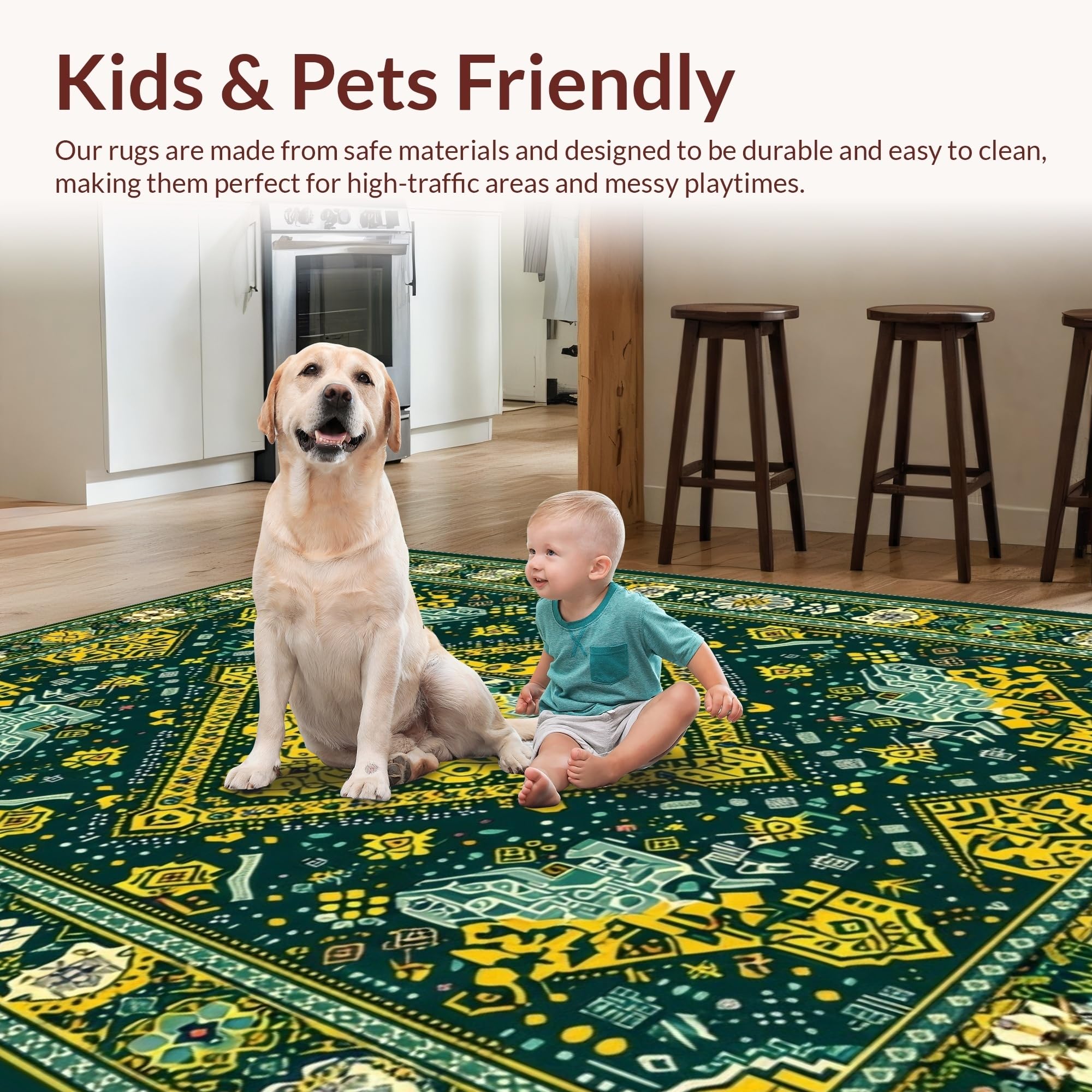 Ultra Soft Area Rug, Non Slip, Stain Resistant, Washable Area Rugs for Living Room, Bedroom, Eclectic Floral Green Palette(Green) Overview: