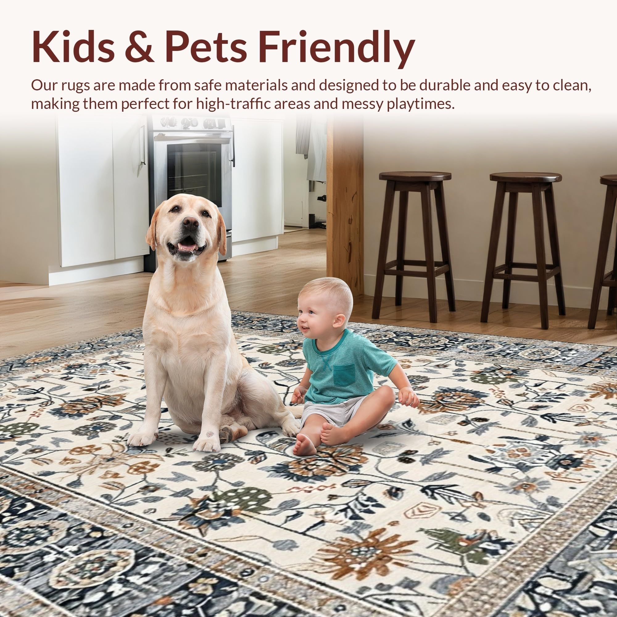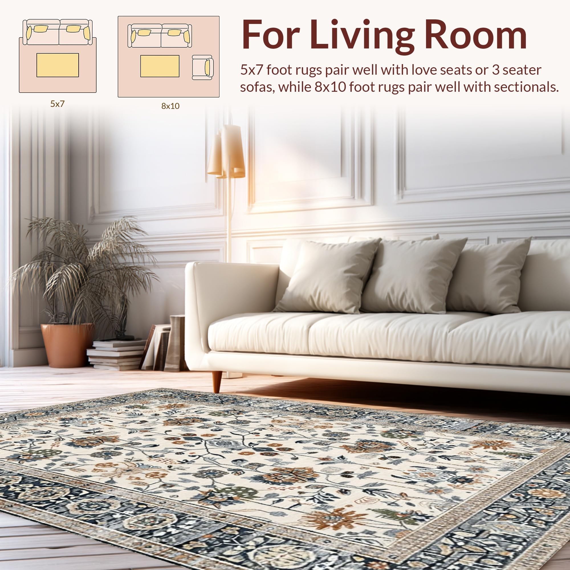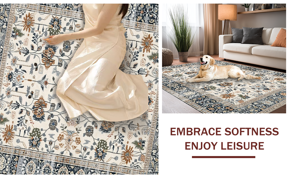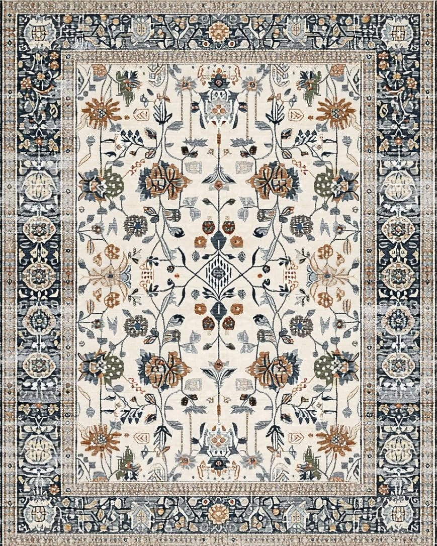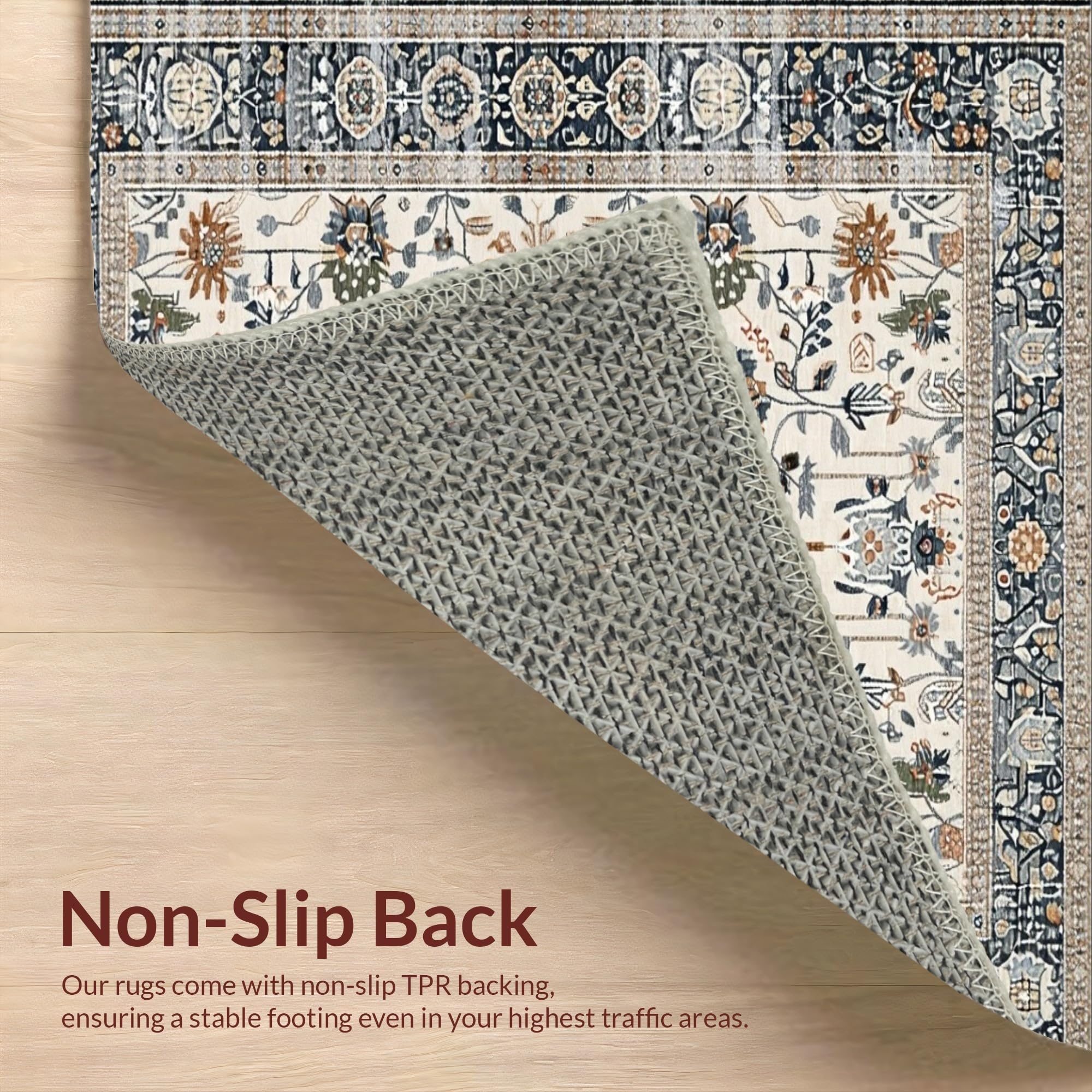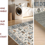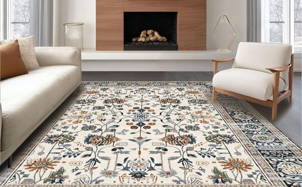 Ultra Soft Area Rug, Non Slip, Stain Resistant, Washable Area Rugs for Living Room, Bedroom, Eclectic Floral Medallion Design(Ivory) Overview: