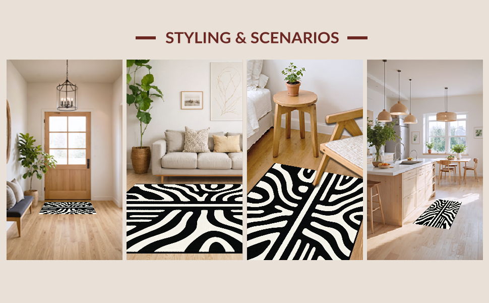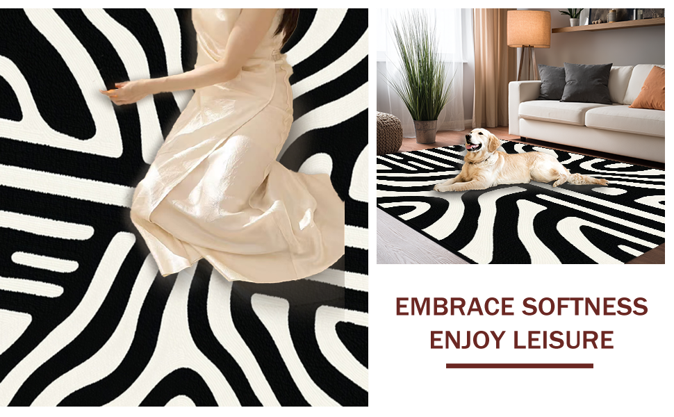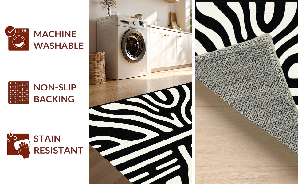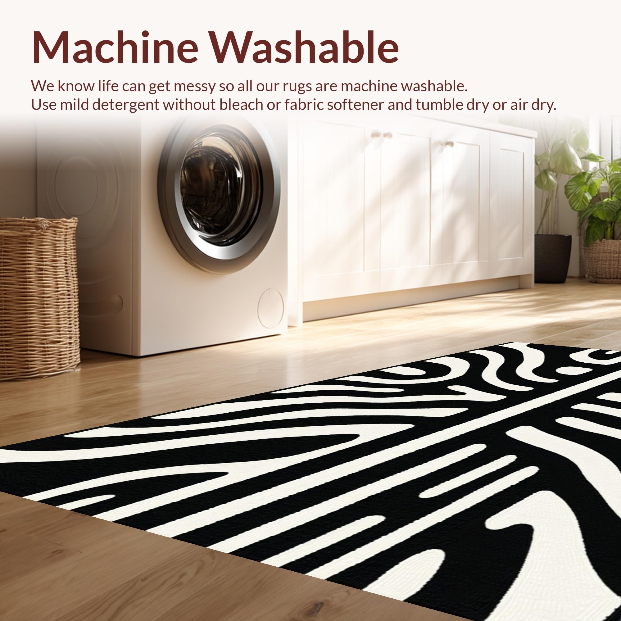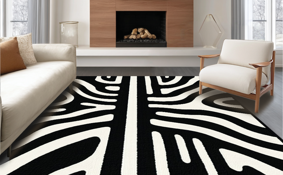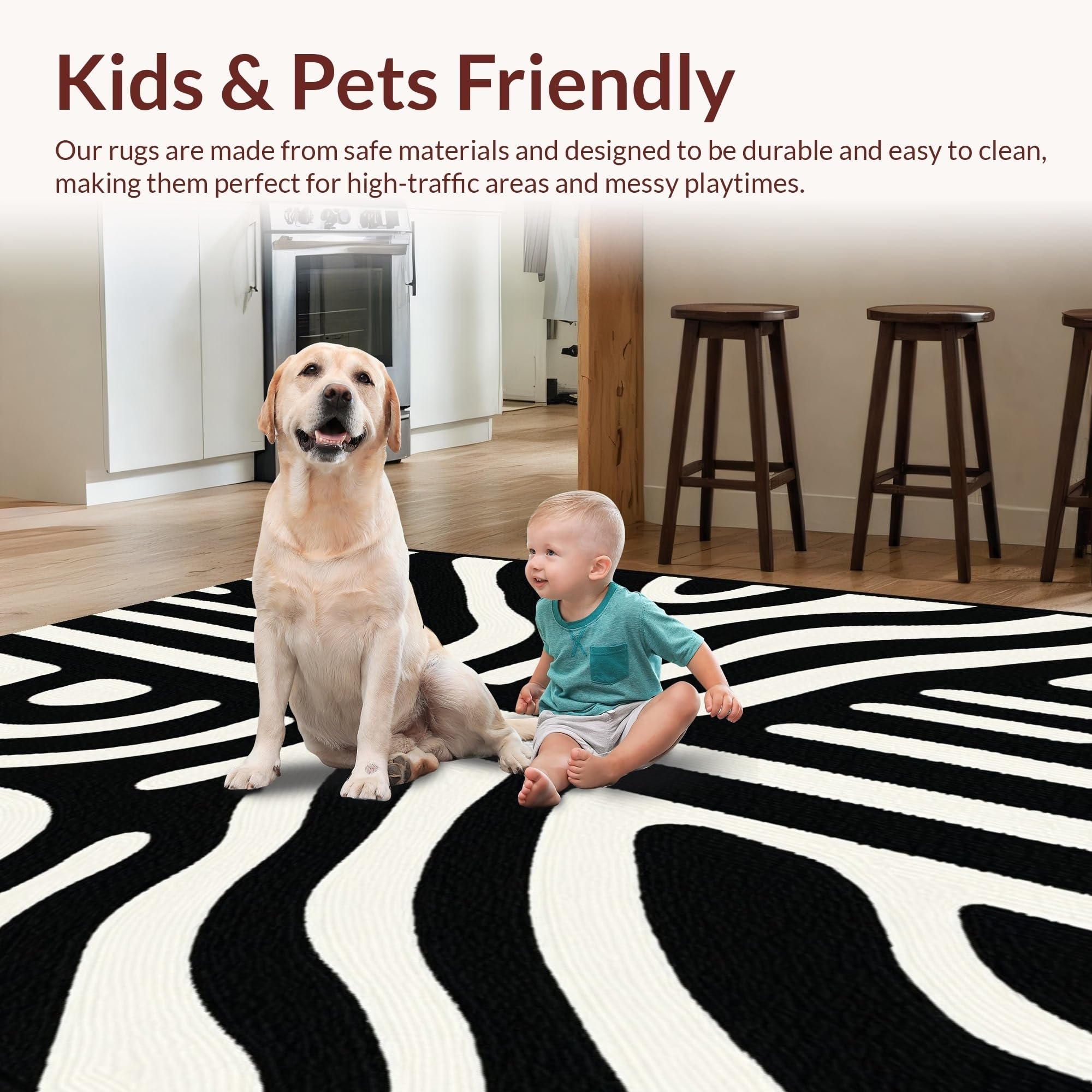 Ultra Soft Area Rug, Non Slip, Stain Resistant, Washable Area Rugs for Living Room, Bedroom, Eclectic Fun Zebra Graphic Style(Black) Overview: