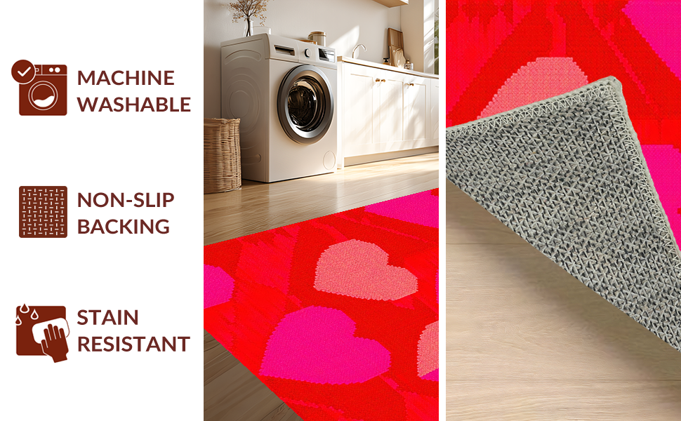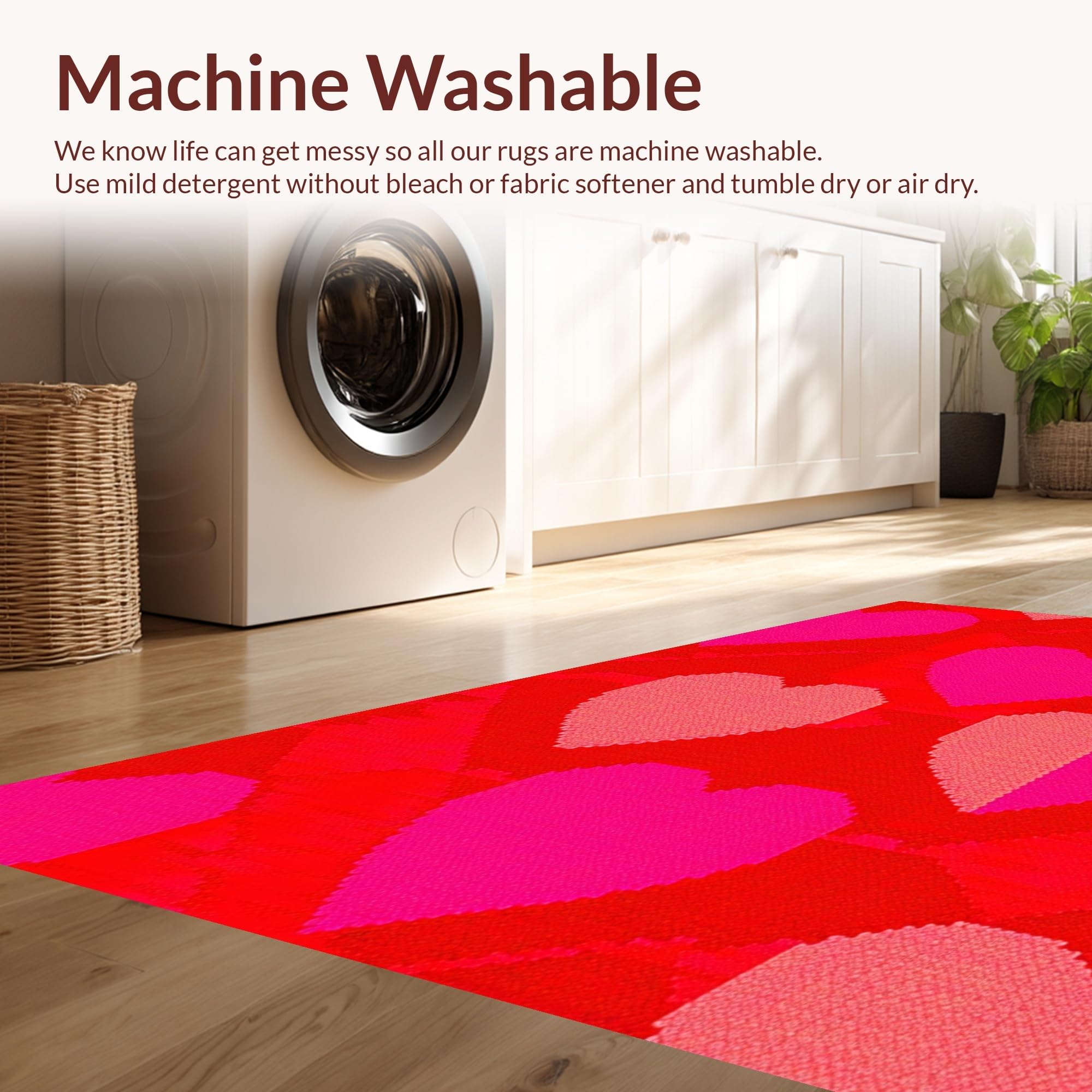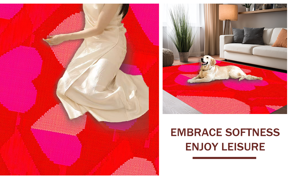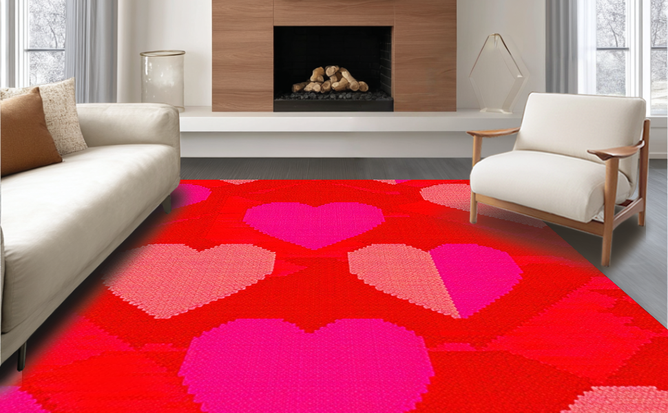Ultra Soft Area Rug, Non Slip, Stain Resistant, Washable Area Rugs for Living Room, Bedroom, Eclectic Graphic Love Statement(Red) Overview:
