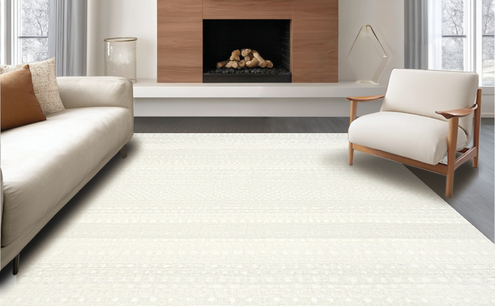 Ultra Soft Area Rug, Non Slip, Stain Resistant, Washable Area Rugs for Living Room, Bedroom, Eclectic Gray Linear Style(Beige) Overview: