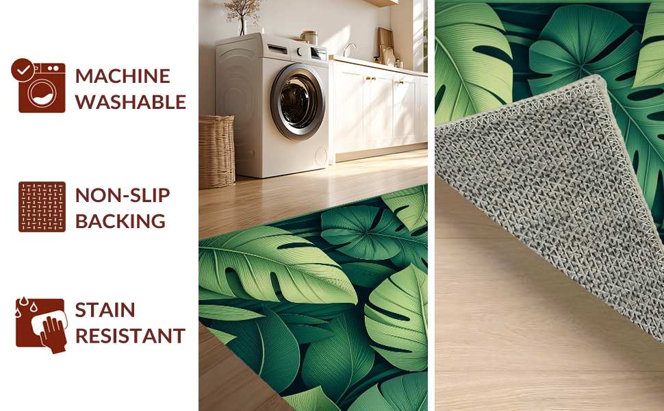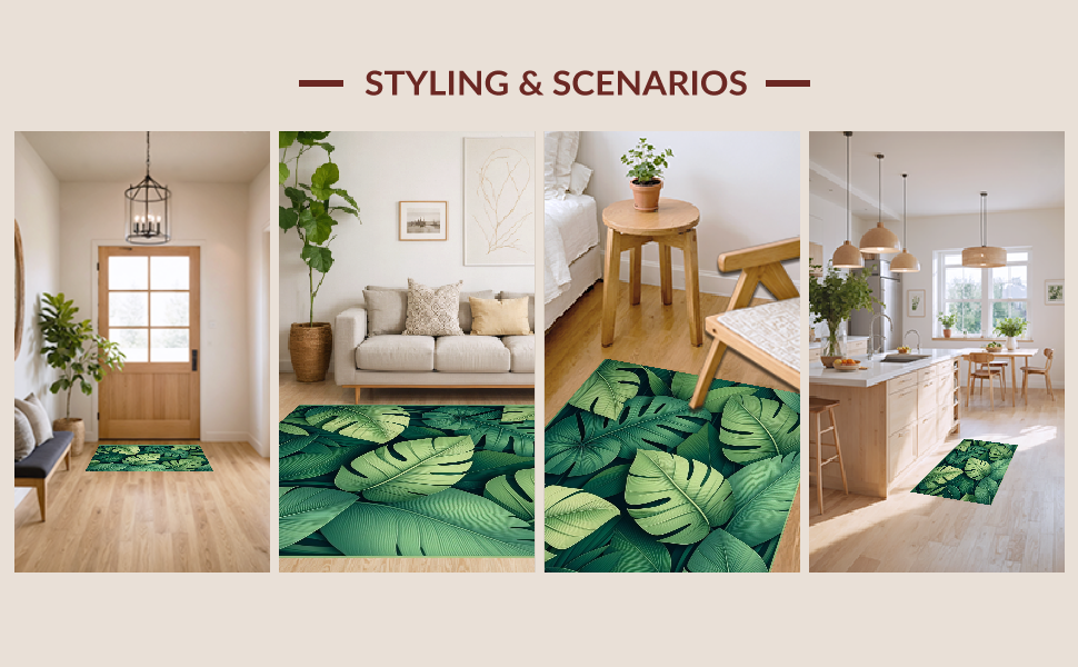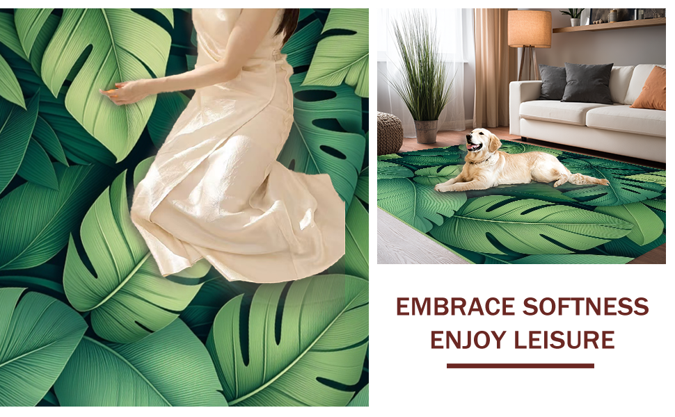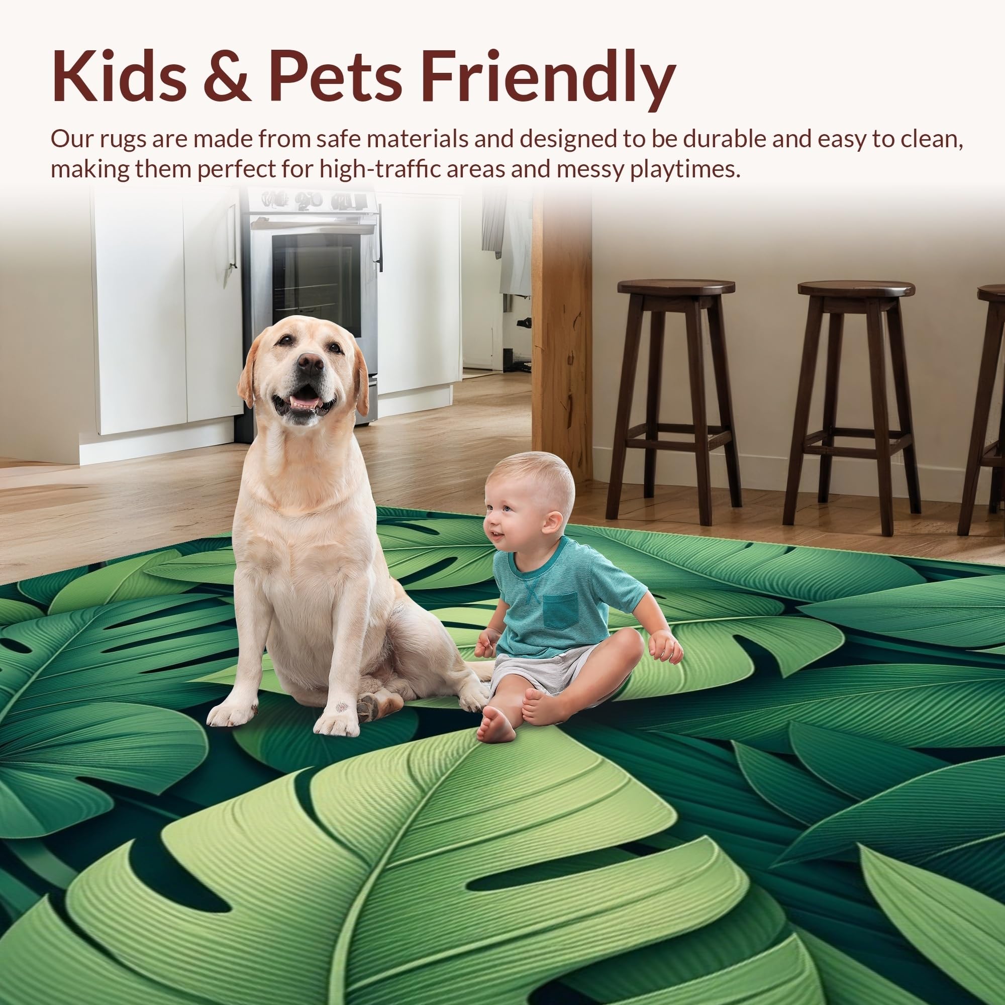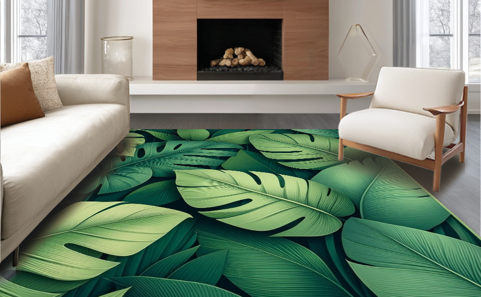 Ultra Soft Area Rug, Non Slip, Stain Resistant, Washable Area Rugs for Living Room, Bedroom, Eclectic Greenery Theme Fusion(Green) Overview:
