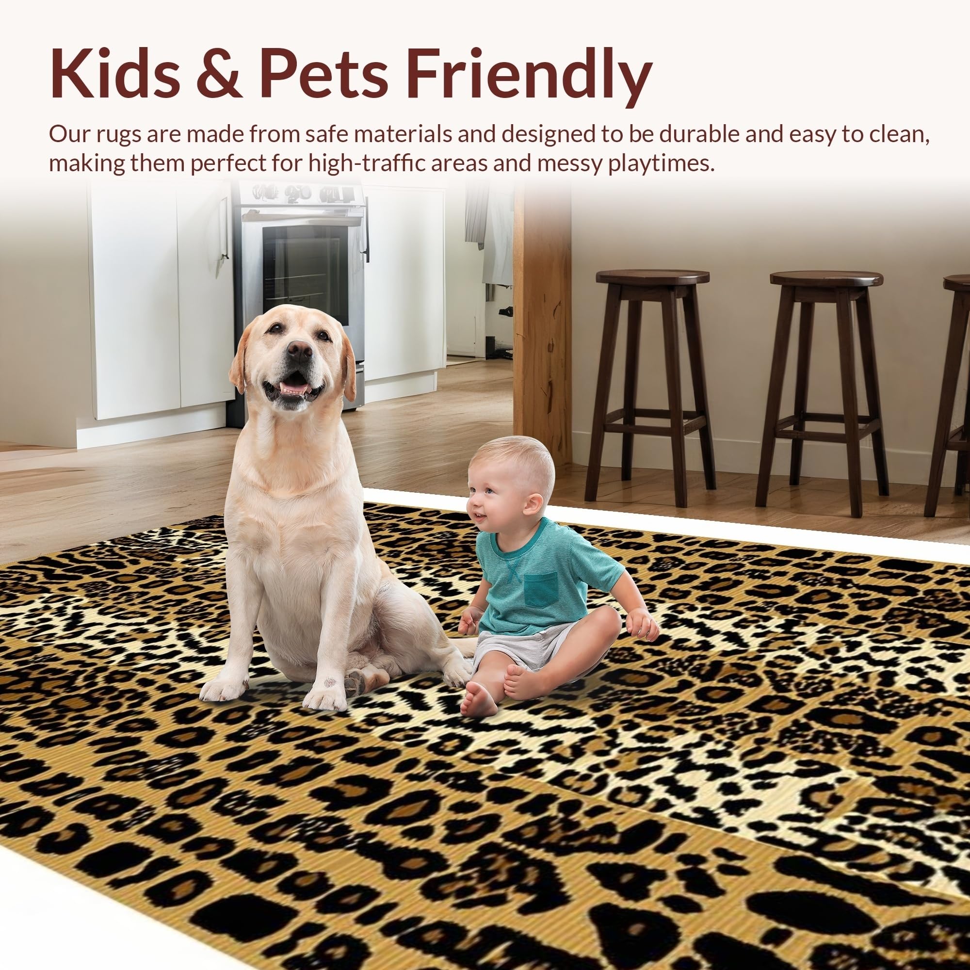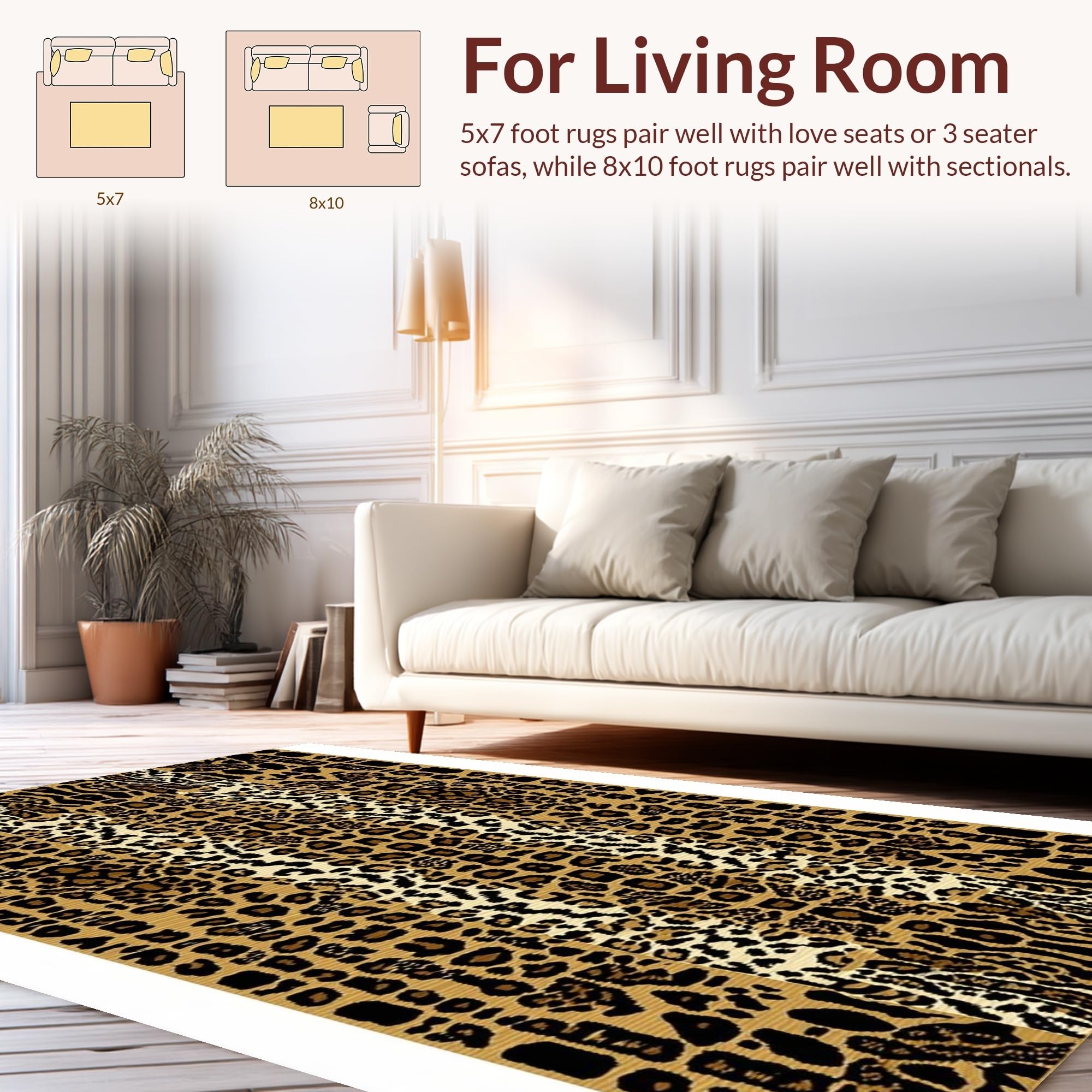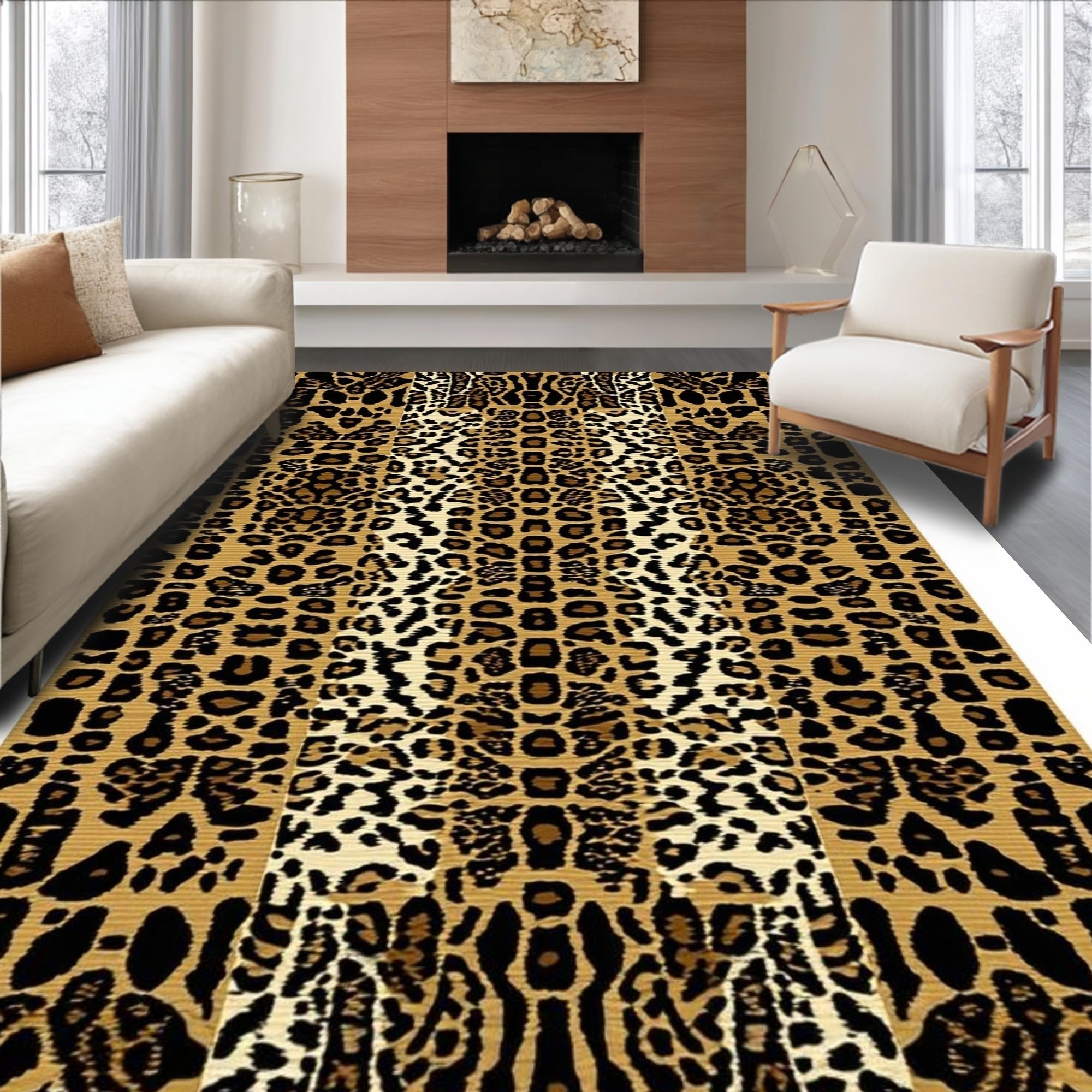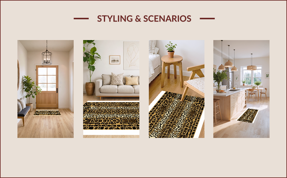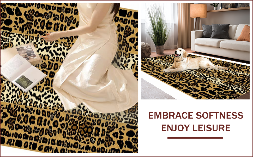 Ultra Soft Area Rug, Non Slip, Stain Resistant, Washable Area Rugs for Living Room, Bedroom, Eclectic Khaki Animal Motif(Beige) Overview: