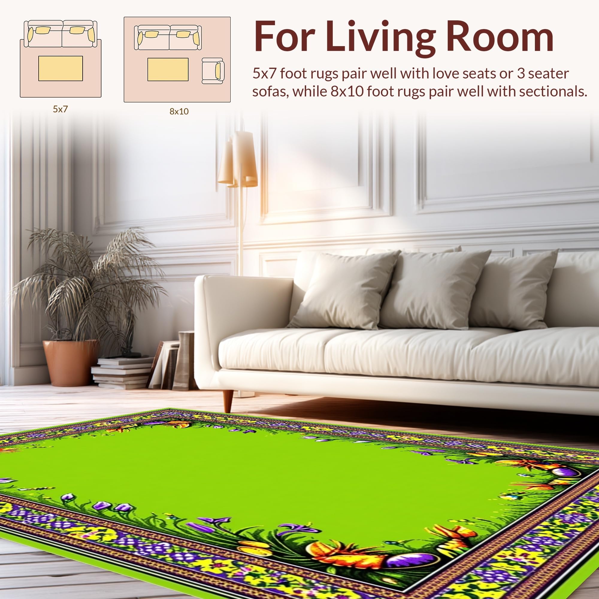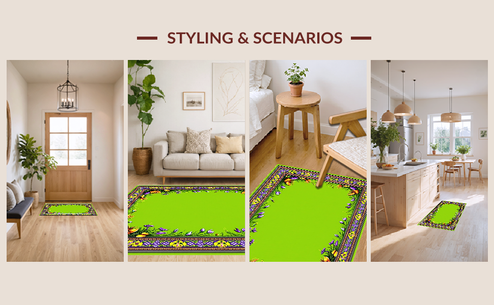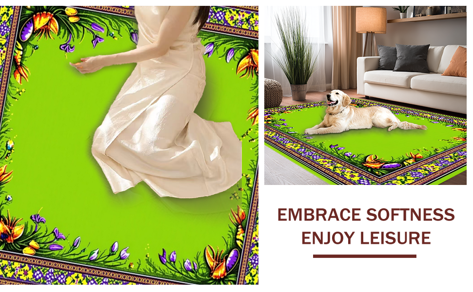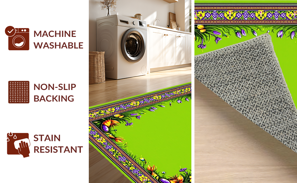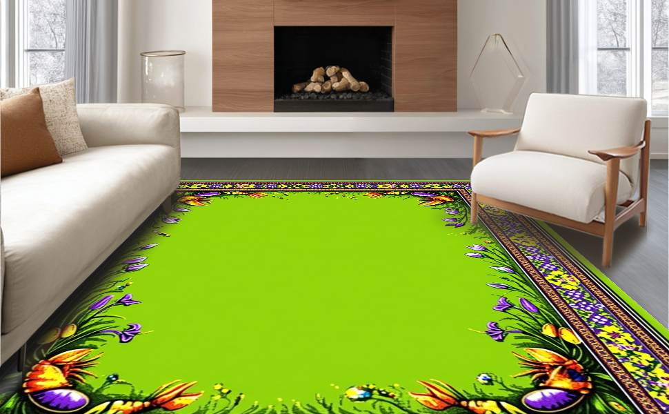 Ultra Soft Area Rug, Non Slip, Stain Resistant, Washable Area Rugs for Living Room, Bedroom, Eclectic Kitchen Decor with Patterns(Green) Overview: