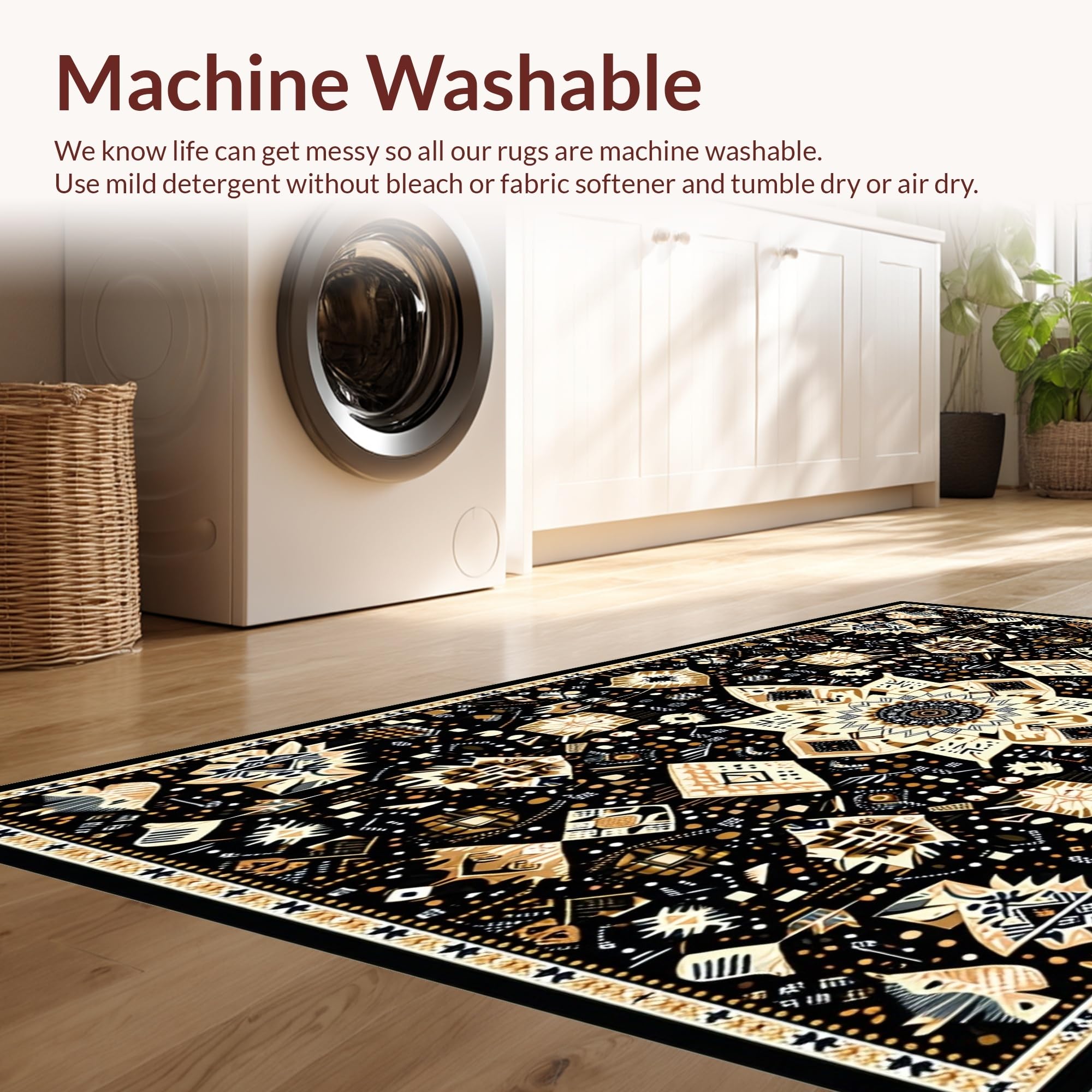 - Machine Washable: Our rugs can be easily thrown in the wash machine.