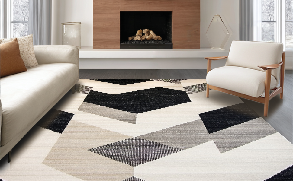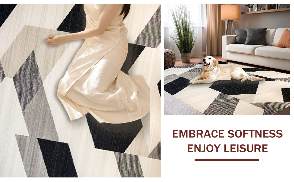 Ultra Soft Area Rug, Non Slip, Stain Resistant, Washable Area Rugs for Living Room, Bedroom, Eclectic Modern Form Design(Beige) Overview: