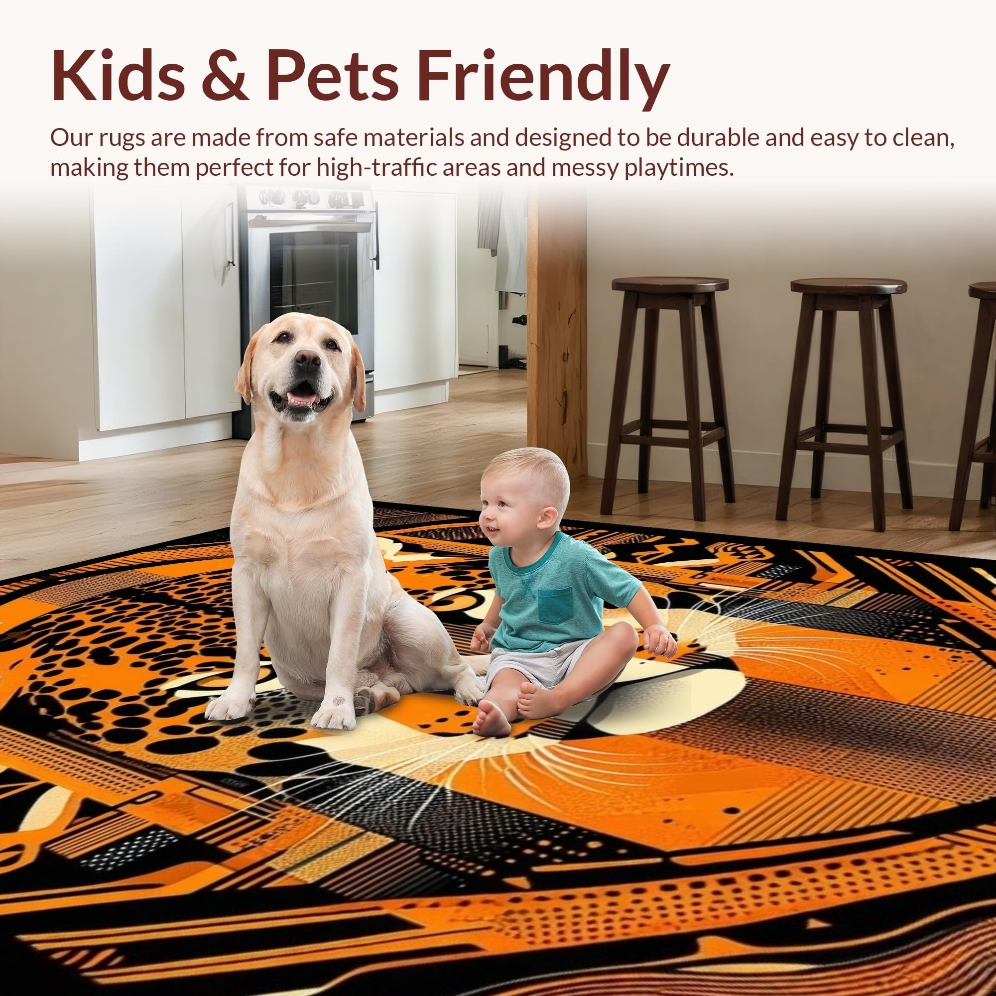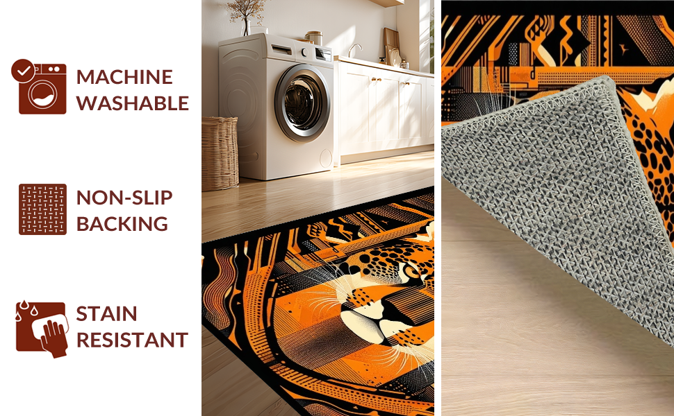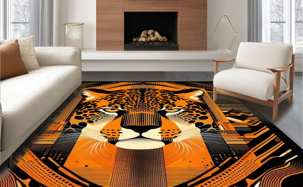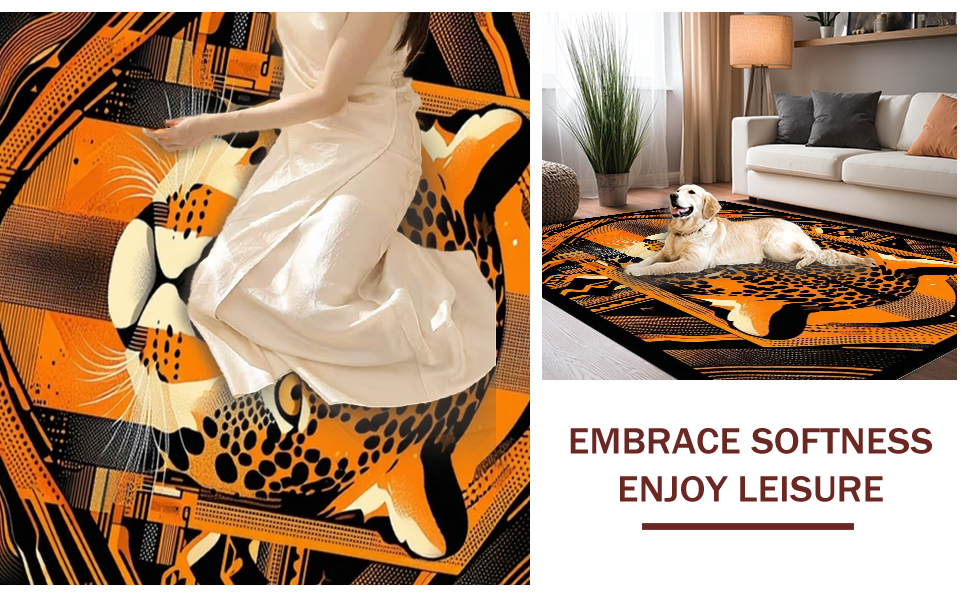 Ultra Soft Area Rug, Non Slip, Stain Resistant, Washable Area Rugs for Living Room, Bedroom, Eclectic Modern Nature Motif(Orange) Overview: