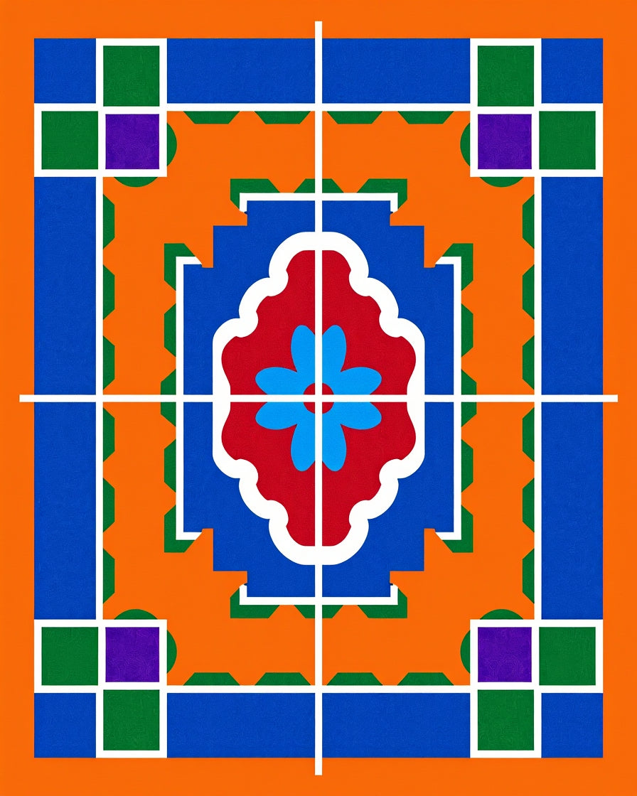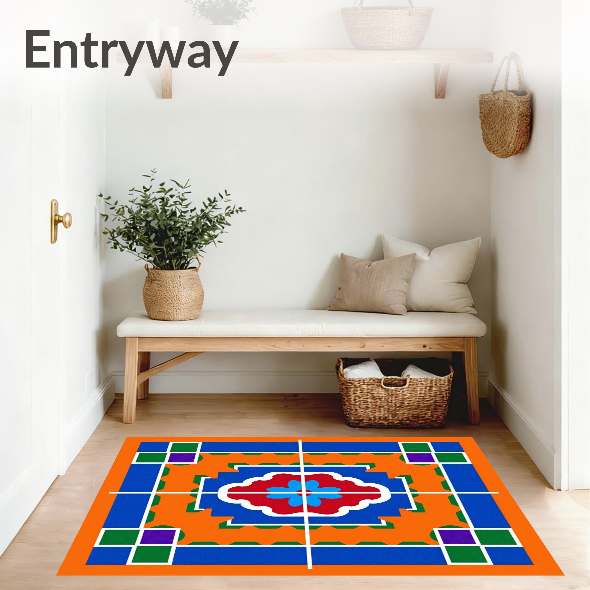 Eclectic Mosaic Welcome Displaying Kaleidoscope Blocks(Orange)