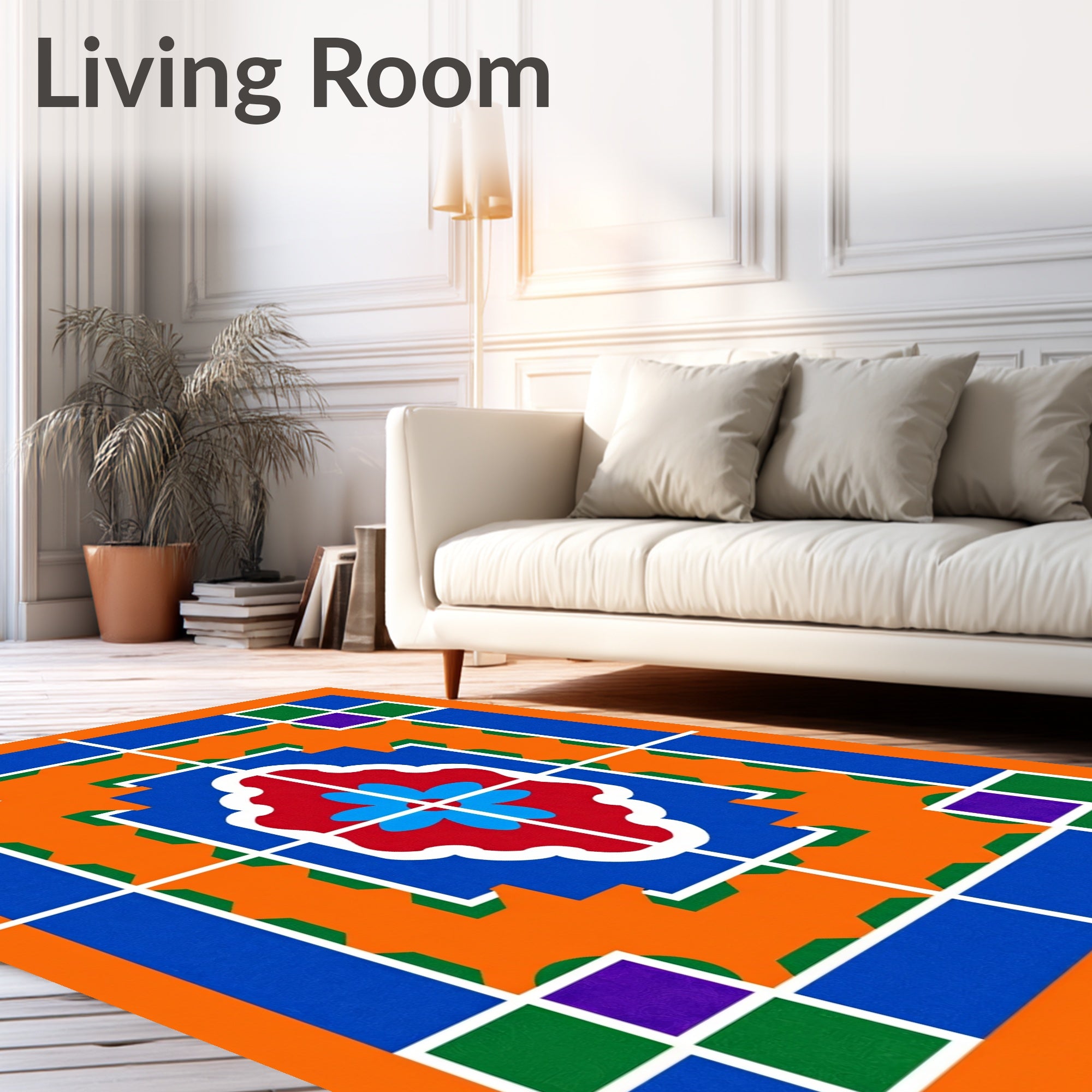 Ultra Soft Area Rug, Non Slip, Stain Resistant, Washable Area Rugs for Living Room, Bedroom, Eclectic Mosaic Welcome Displaying Kaleidoscope Blocks(Orange) Overview: