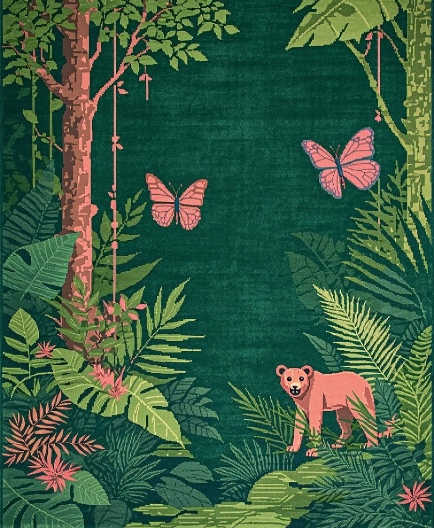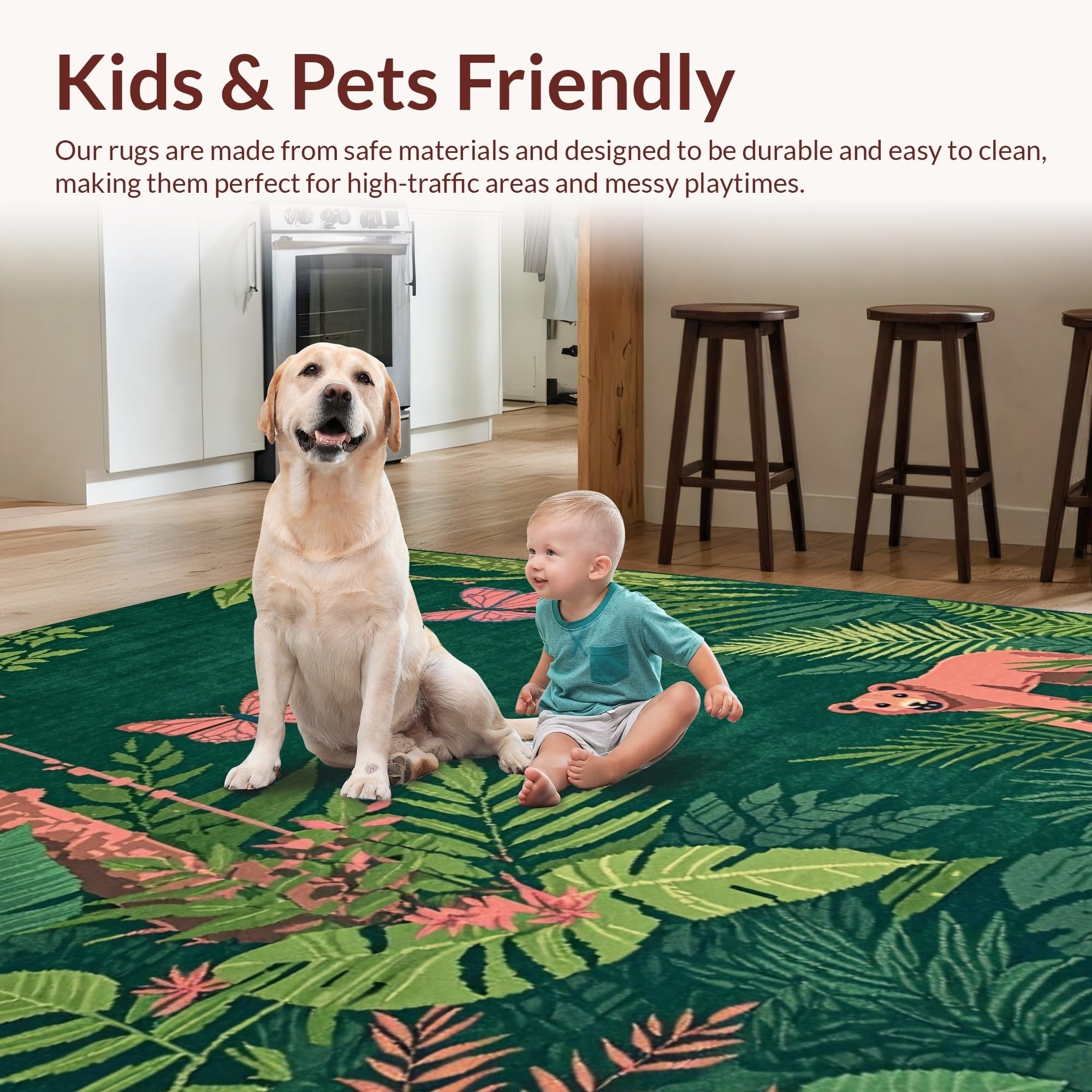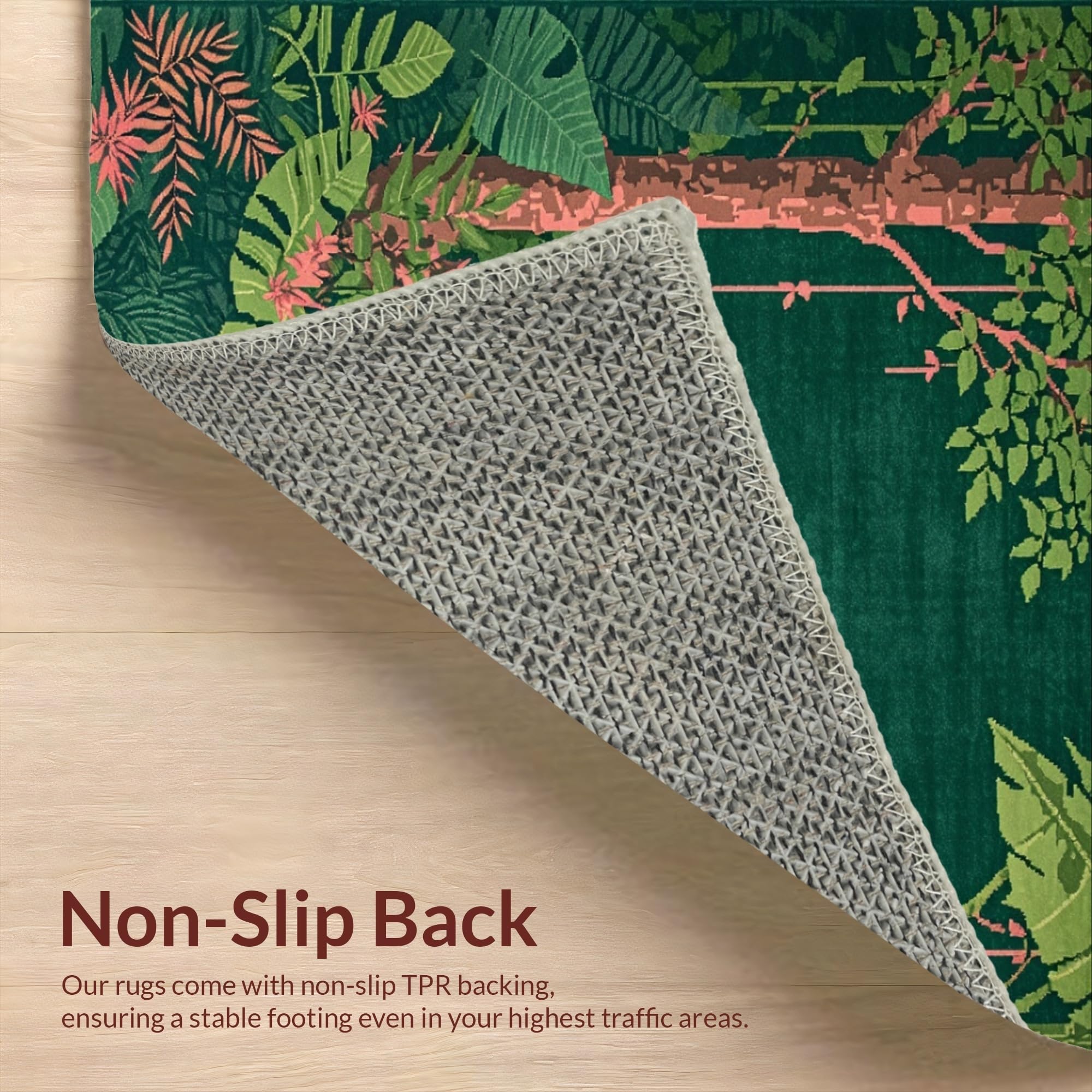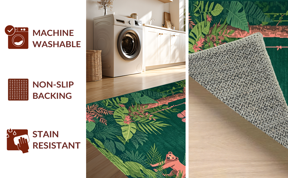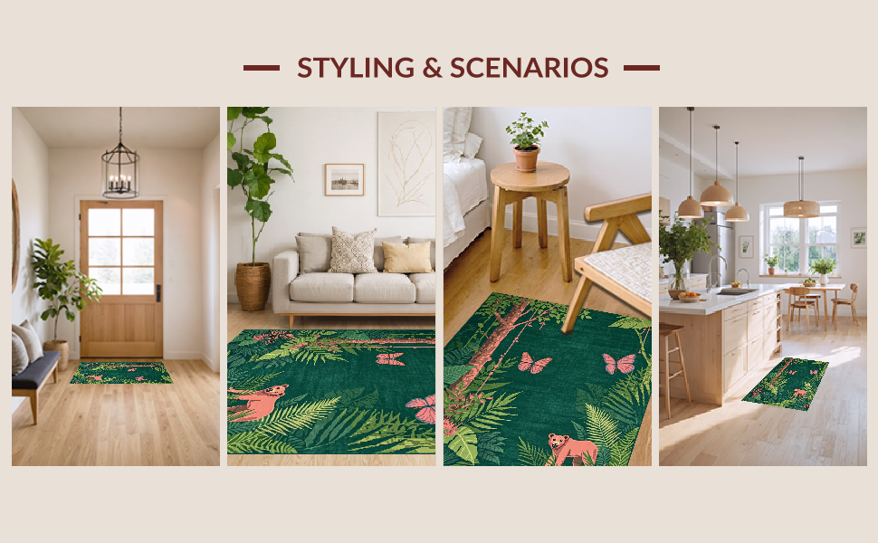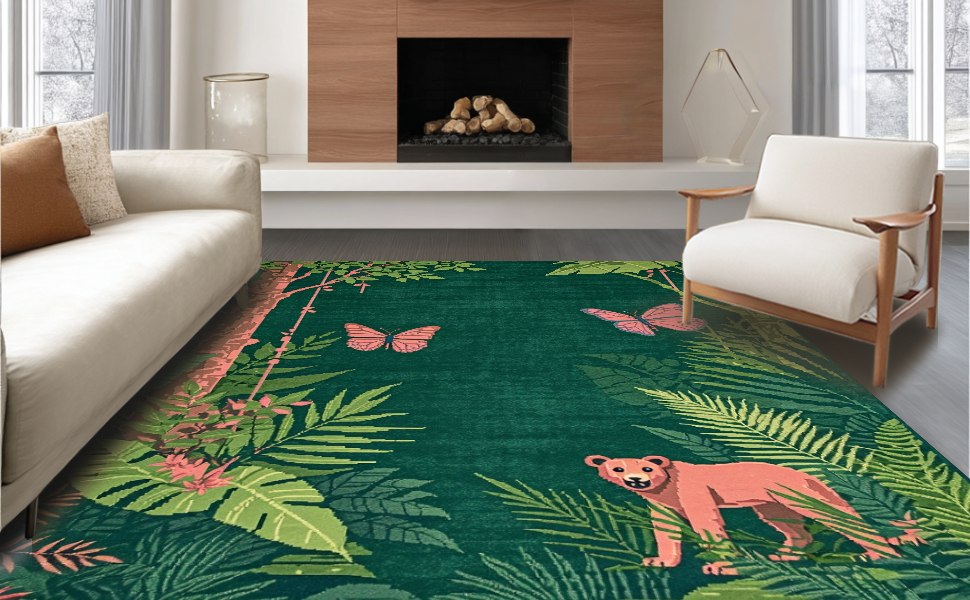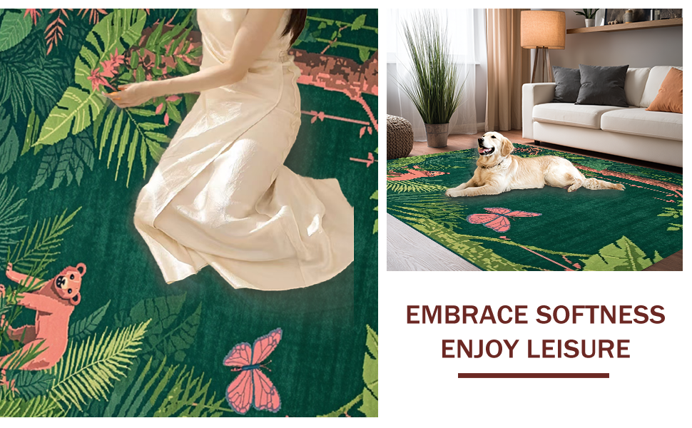 Ultra Soft Area Rug, Non Slip, Stain Resistant, Washable Area Rugs for Living Room, Bedroom, Eclectic Nature-Inspired Palette(Green) Overview: