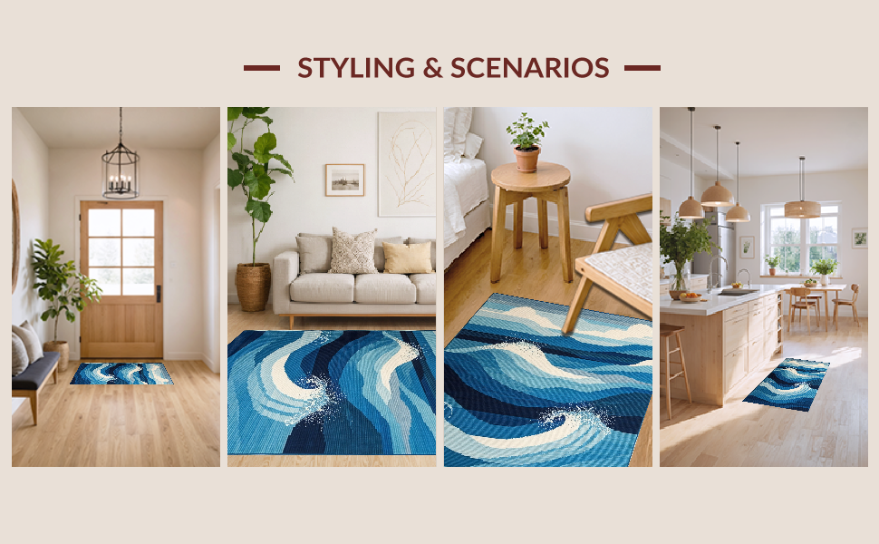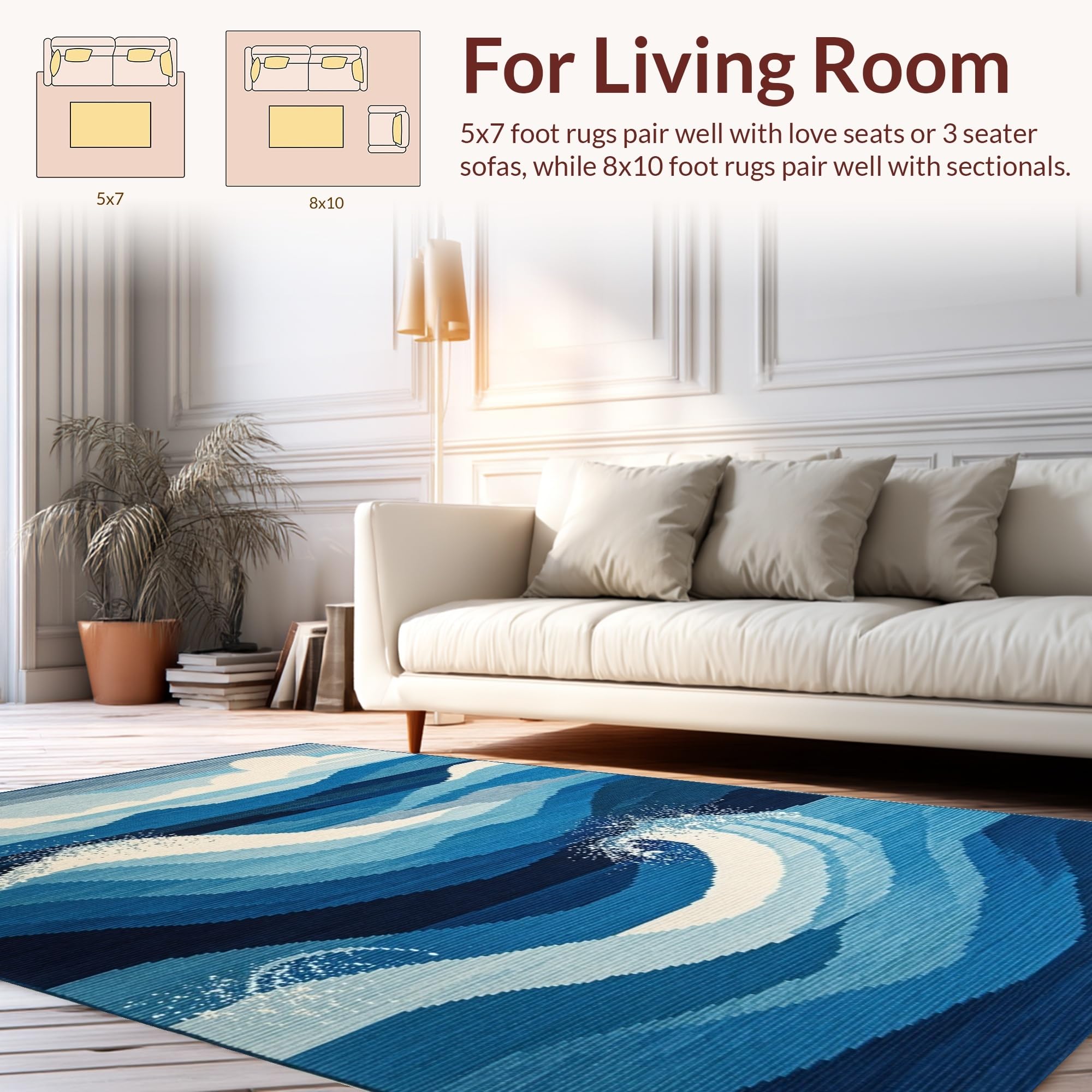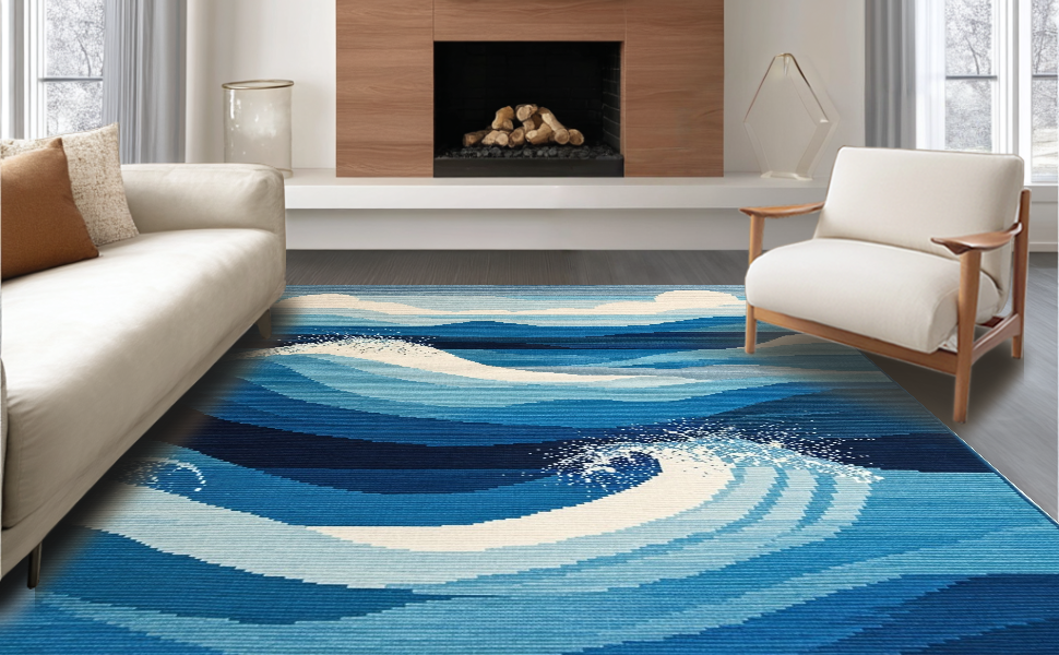 Ultra Soft Area Rug, Non Slip, Stain Resistant, Washable Area Rugs for Living Room, Bedroom, Eclectic Nautical Pattern Play(Blue) Overview: