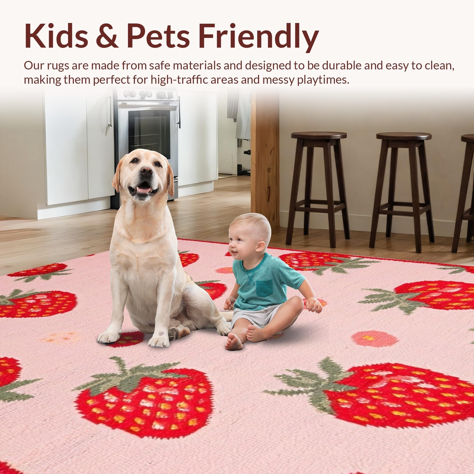 Ultra Soft Area Rug, Non Slip, Stain Resistant, Washable Area Rugs for Living Room, Bedroom, Eclectic Pink and Green Delight(Pink) Overview: