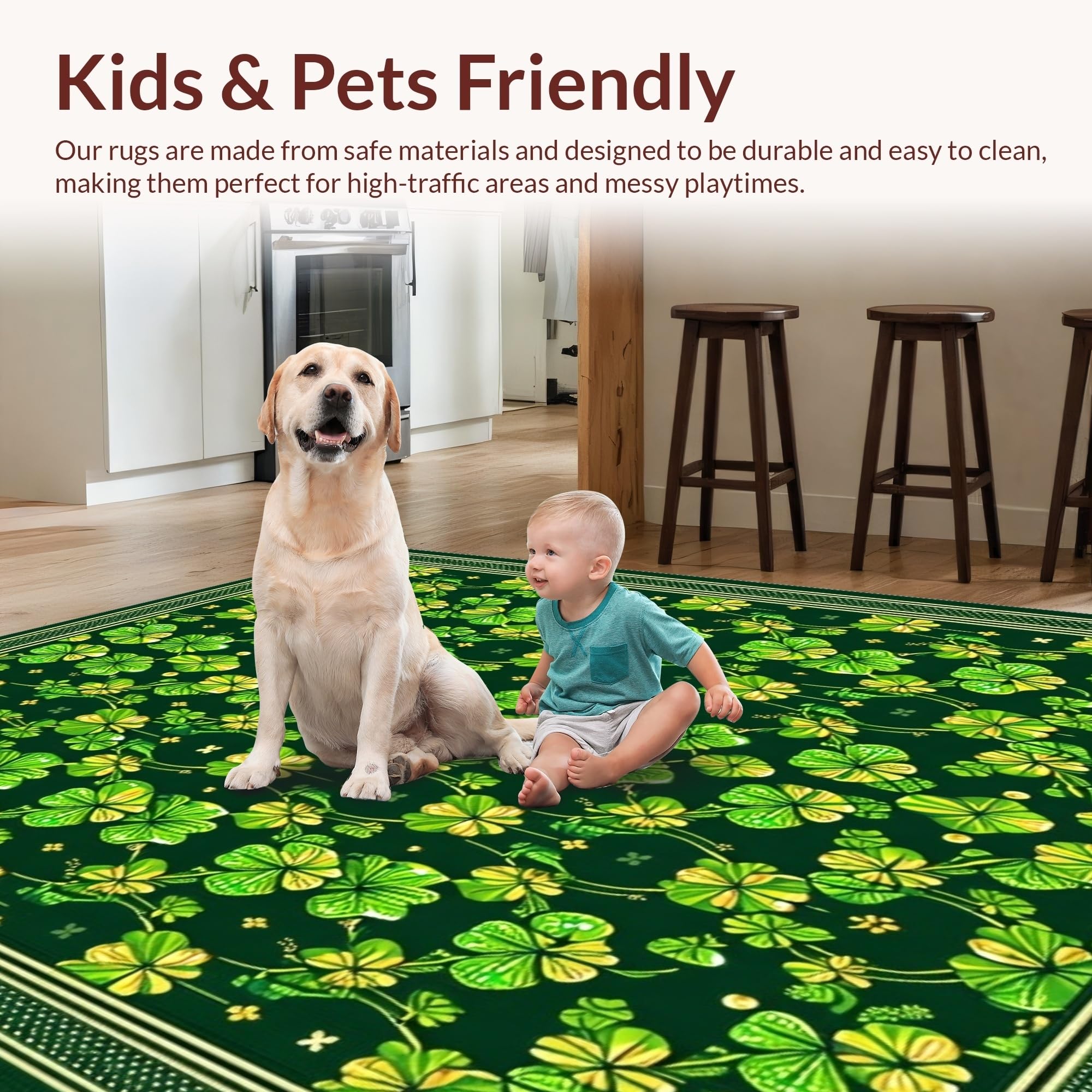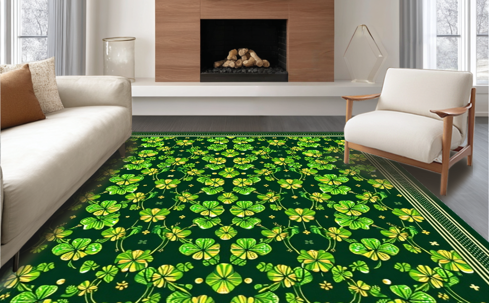 Ultra Soft Area Rug, Non Slip, Stain Resistant, Washable Area Rugs for Living Room, Bedroom, Eclectic Pot of Gold Inspiration(Green) Overview: