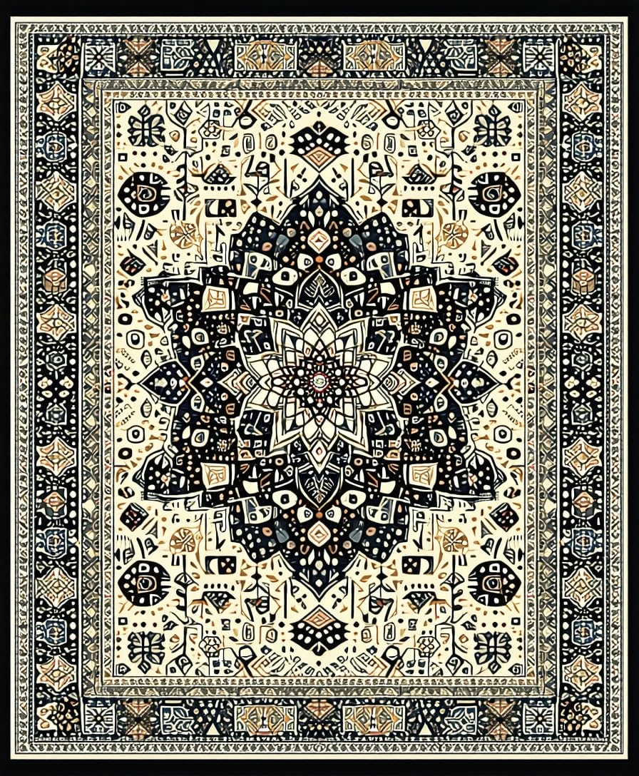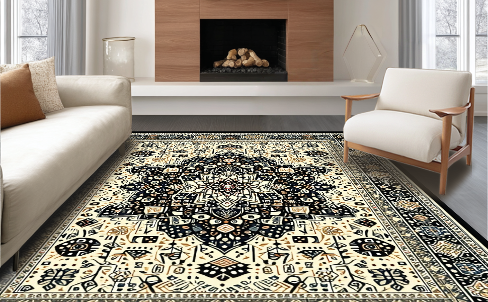 Ultra Soft Area Rug, Non Slip, Stain Resistant, Washable Area Rugs for Living Room, Bedroom, Eclectic Round Rustic Ornamentation(Beige) Overview: