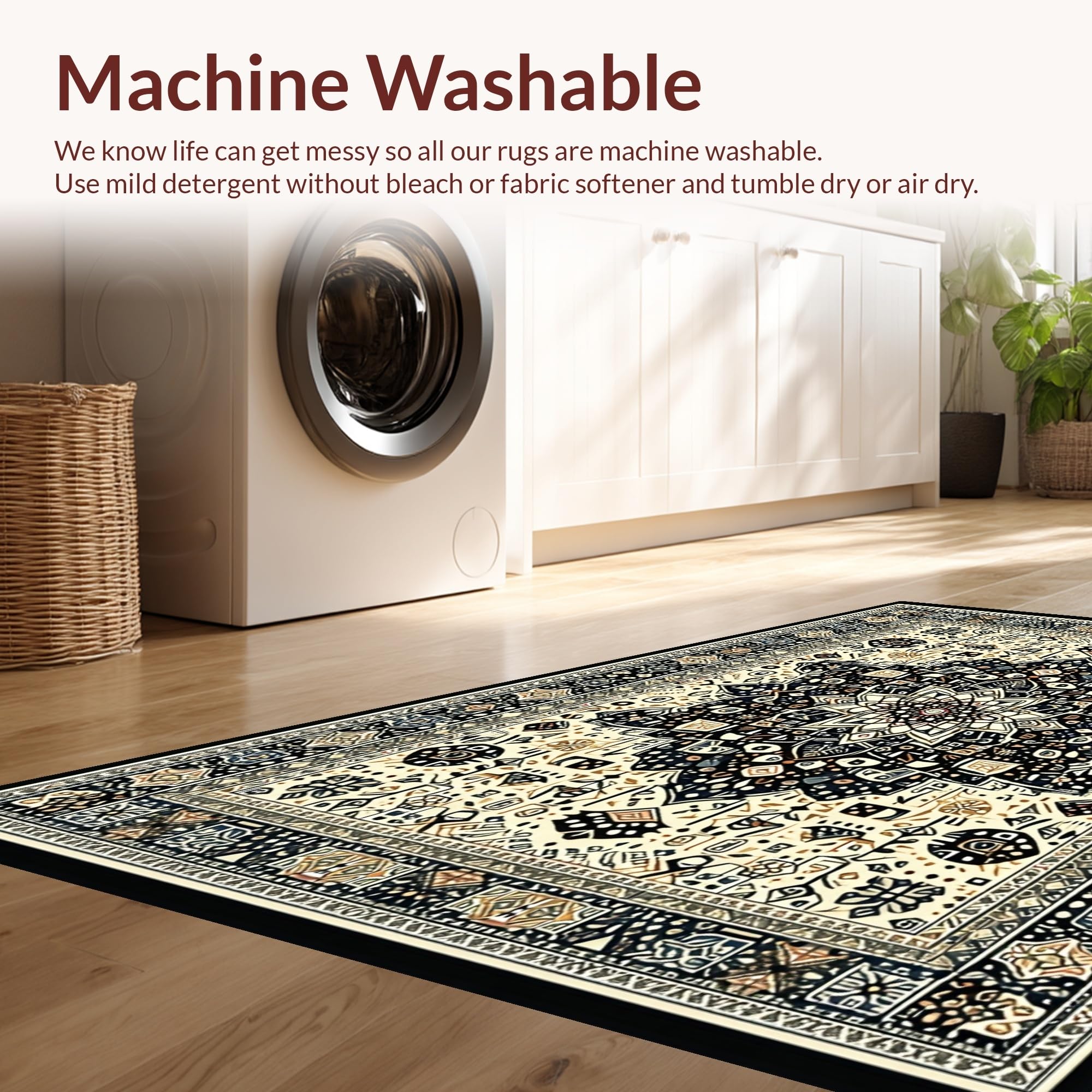 - Machine Washable: Our rugs can be easily thrown in the wash machine.