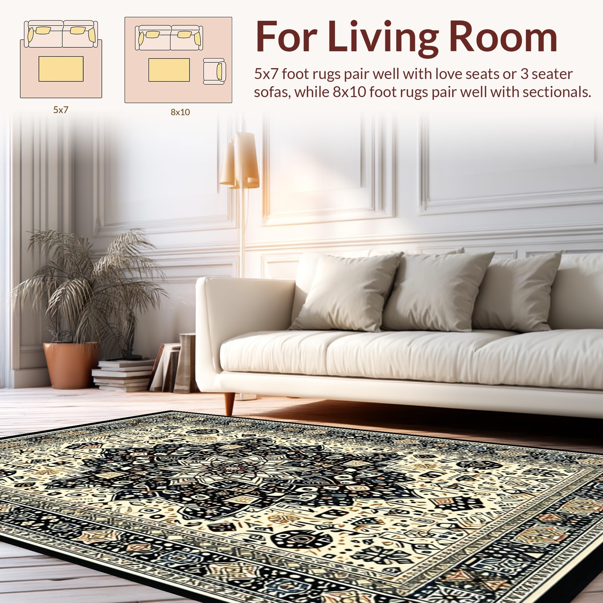- Durable: Designed for the living room, your rug will be perfectly serviceable for long-term usage in any 'high-traffic' area. Enjoy the underfoot comfort without any shedding.
