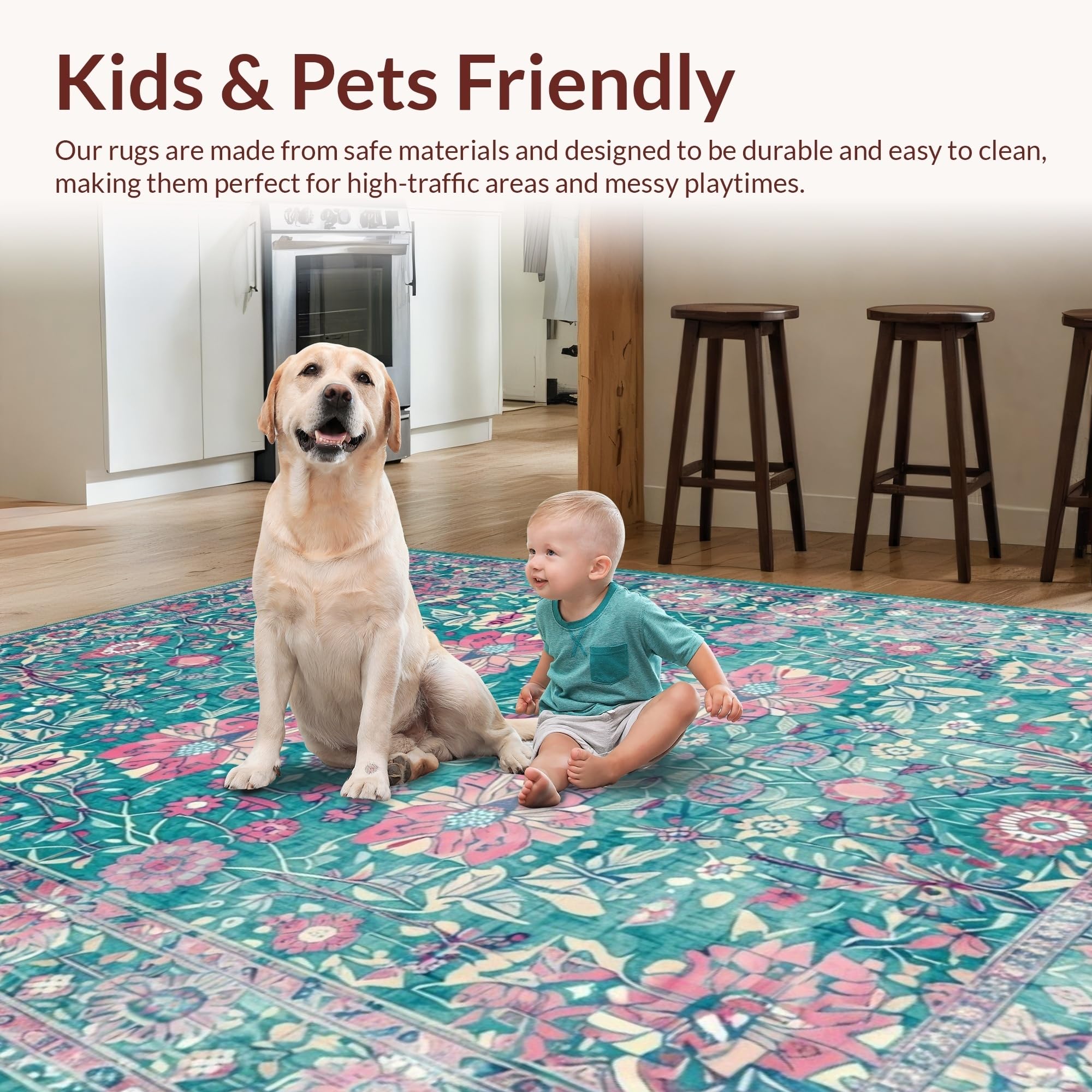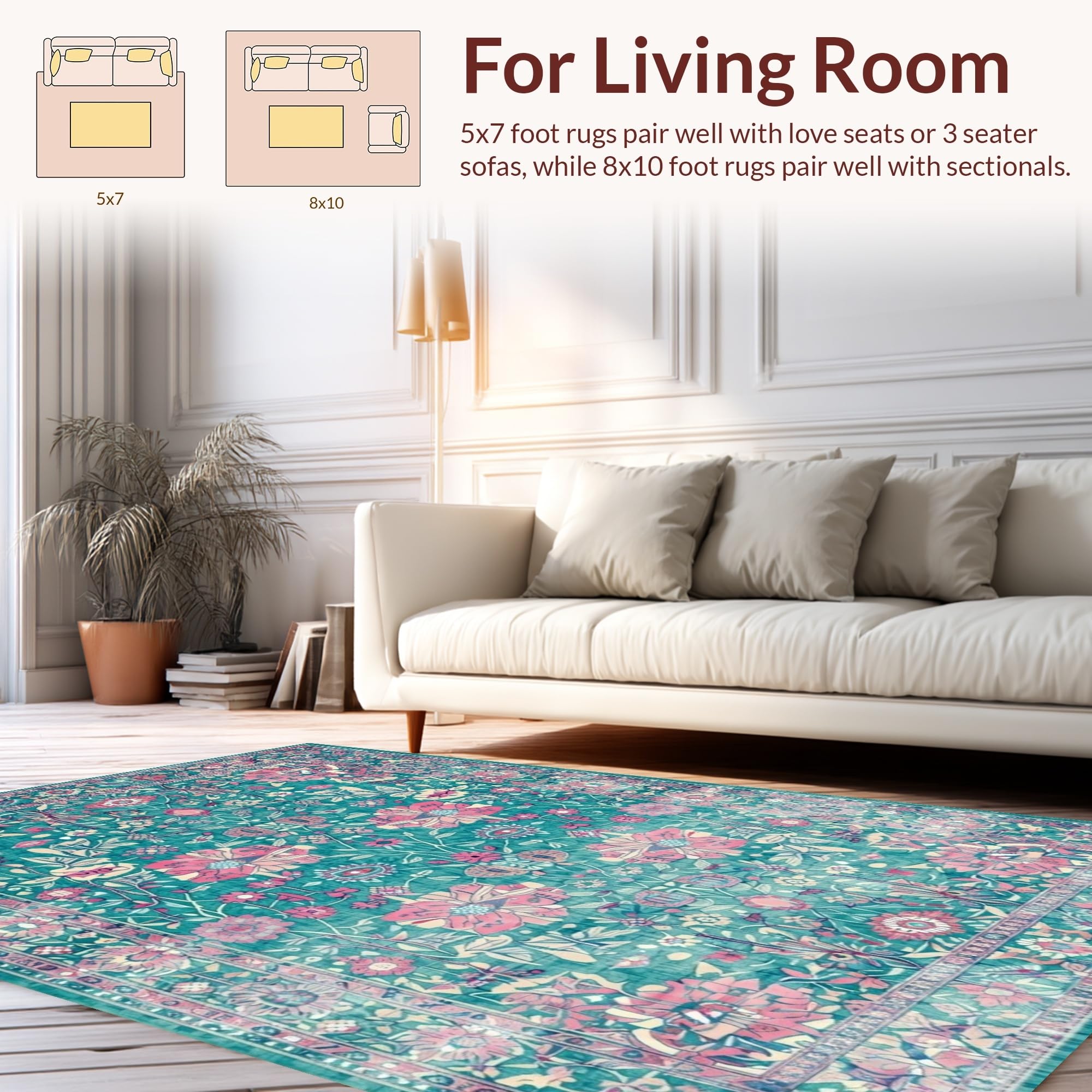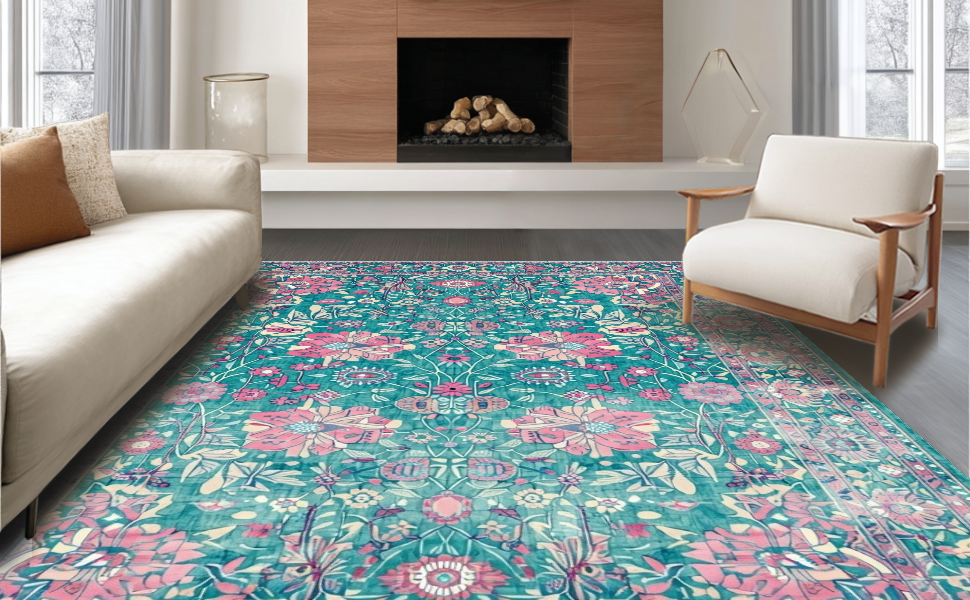 Ultra Soft Area Rug, Non Slip, Stain Resistant, Washable Area Rugs for Living Room, Bedroom, Eclectic Soft Green Medallion Style(Green) Overview: