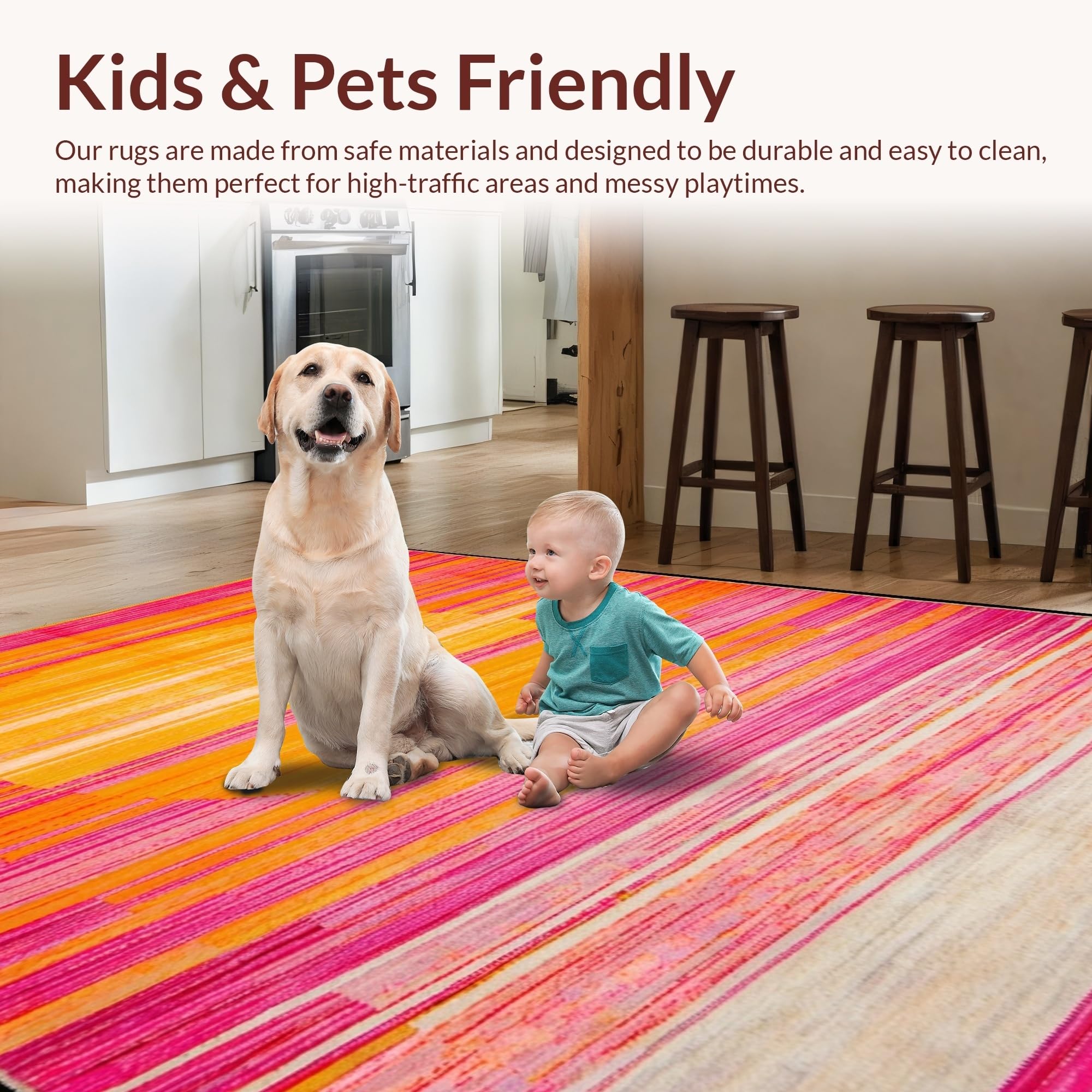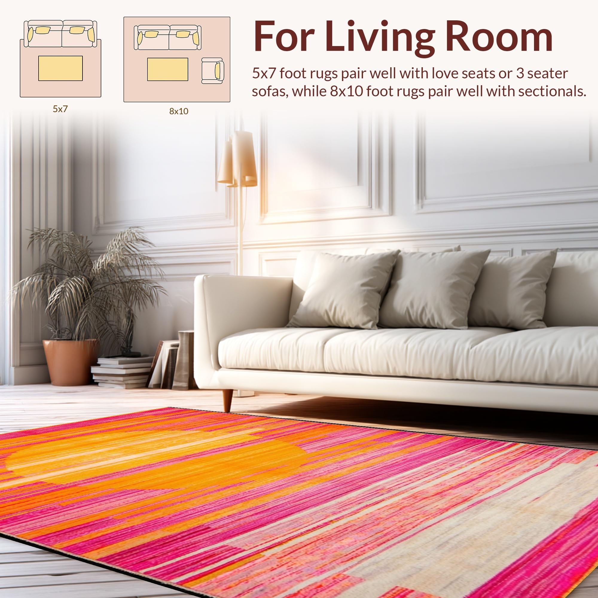 Ultra Soft Area Rug, Non Slip, Stain Resistant, Washable Area Rugs for Living Room, Bedroom, Eclectic Soft Textured Decorative Piece(Pink) Overview: