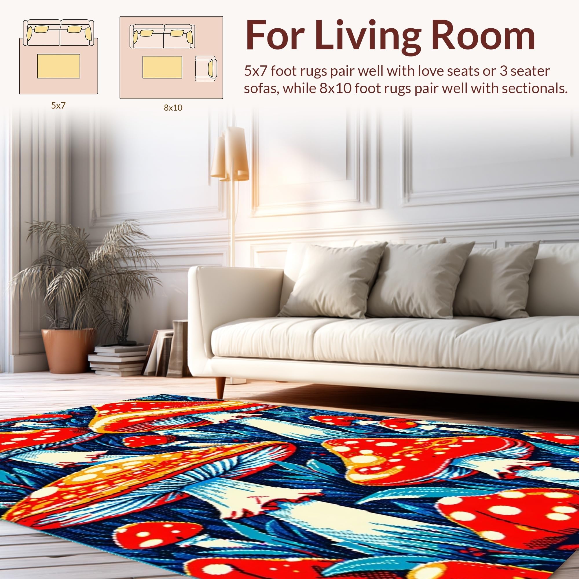 Ultra Soft Area Rug, Non Slip, Stain Resistant, Washable Area Rugs for Living Room, Bedroom, Eclectic Soft Textured Rainbow Motif(Red) Overview:
