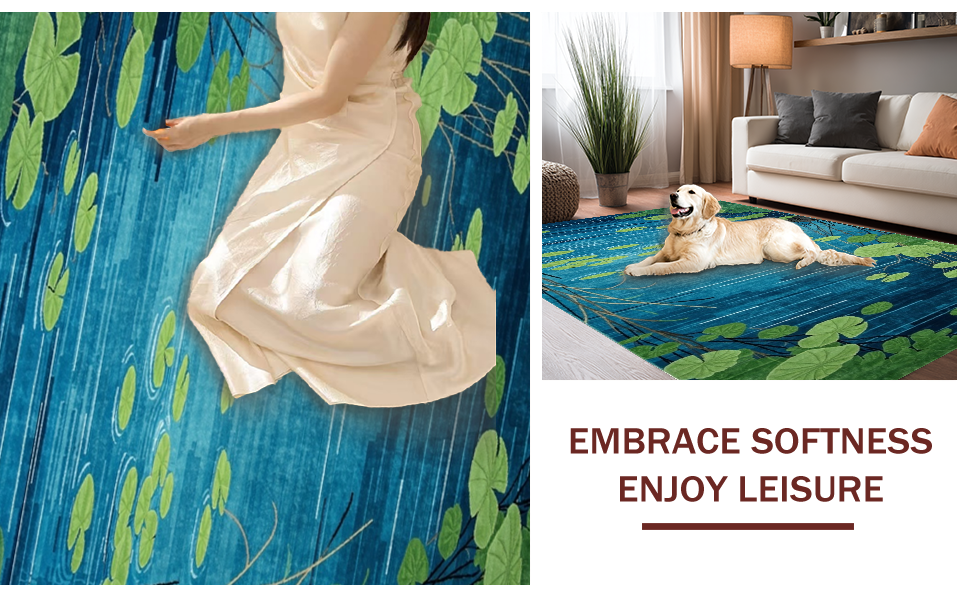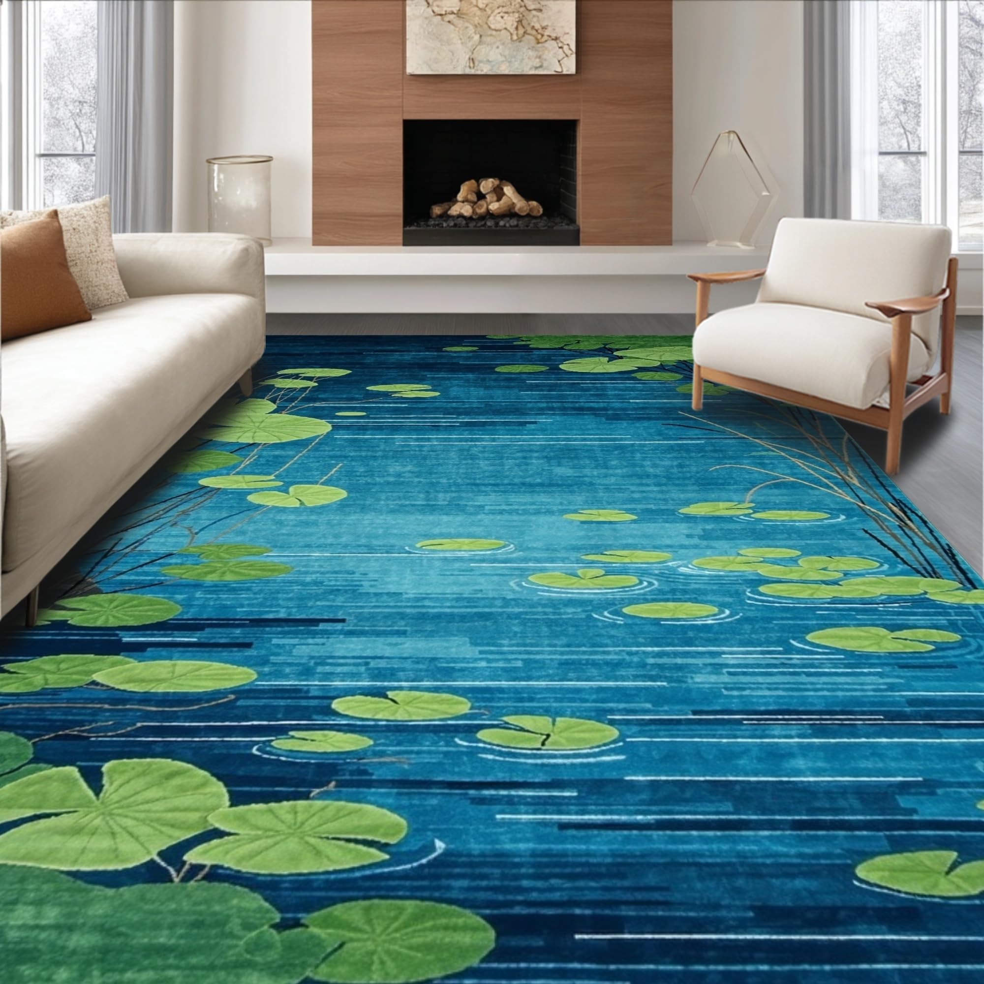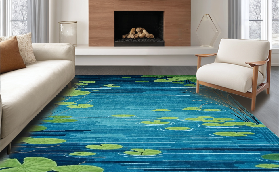 Ultra Soft Area Rug, Non Slip, Stain Resistant, Washable Area Rugs for Living Room, Bedroom, Eclectic Soft-Toned Aquatic Design(Blue) Overview: