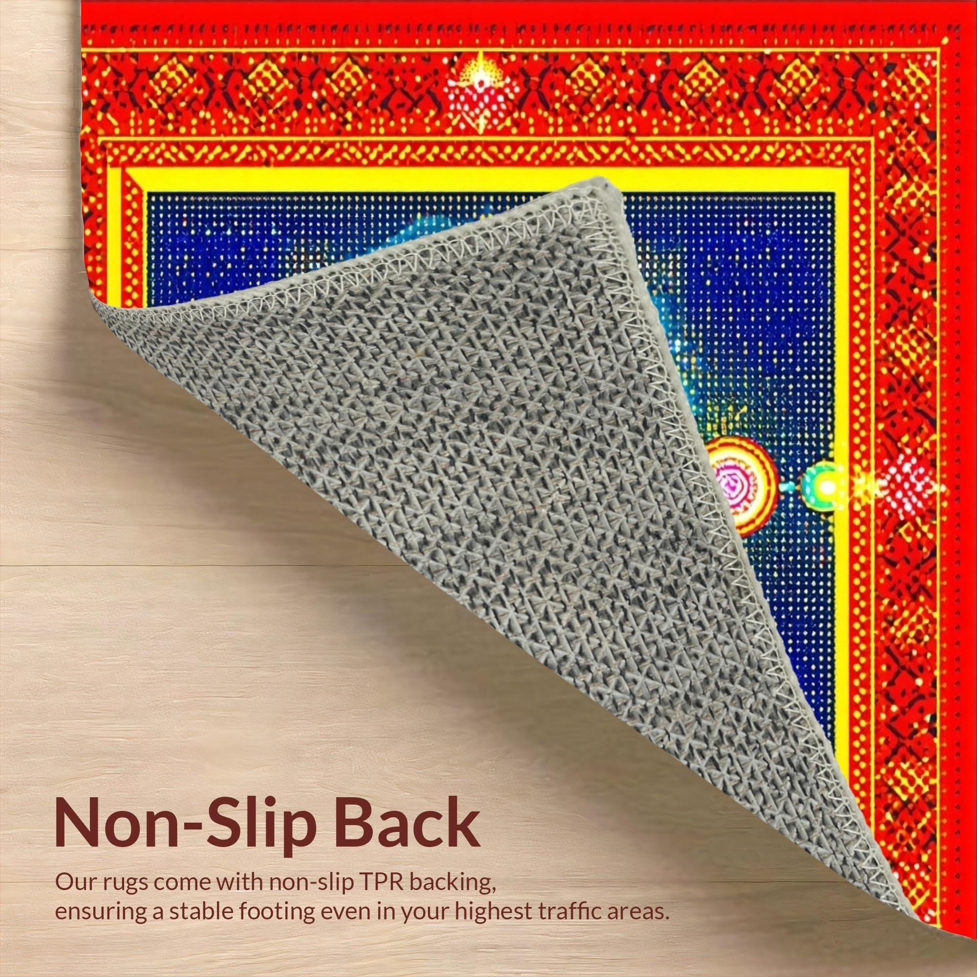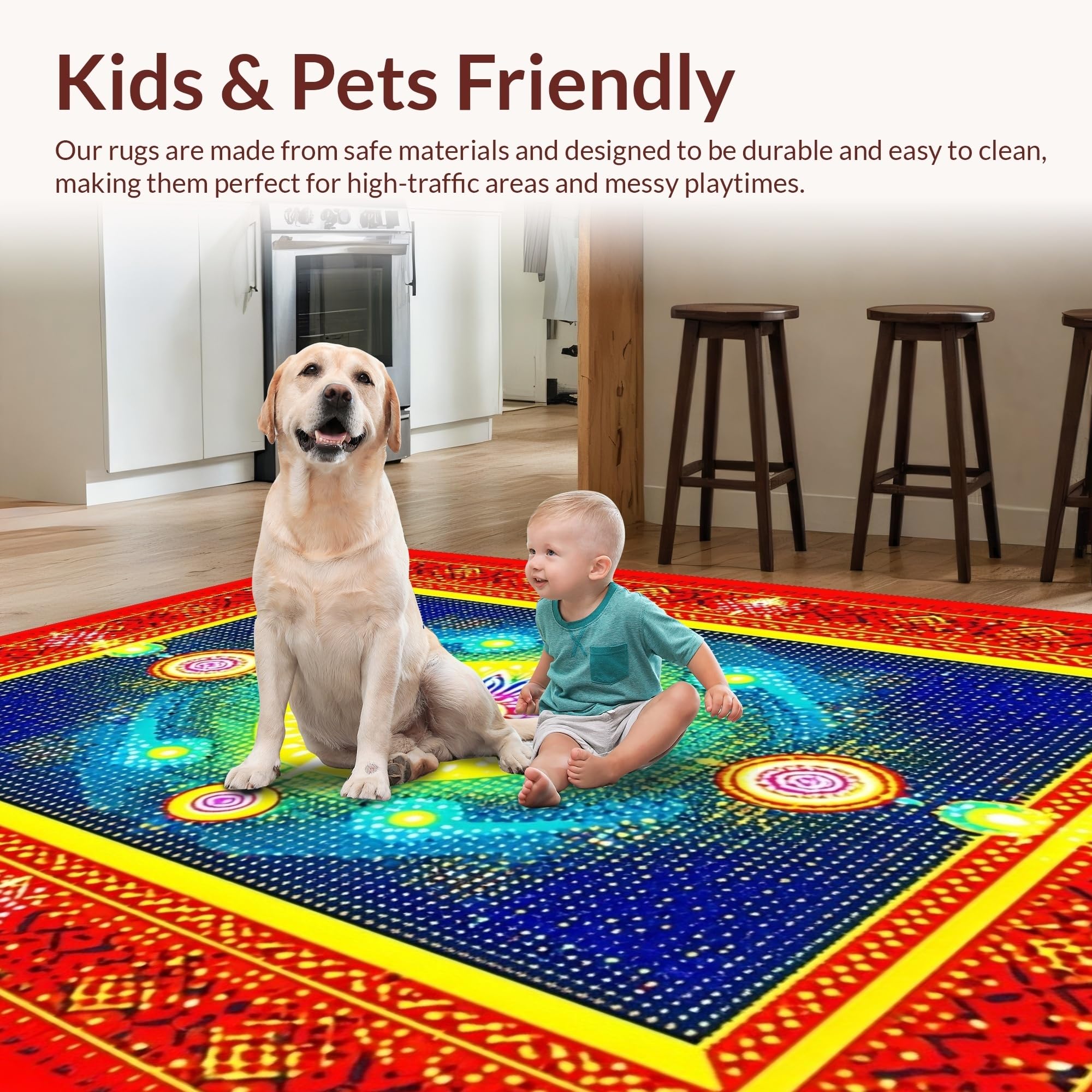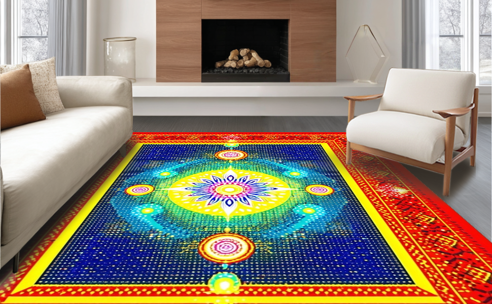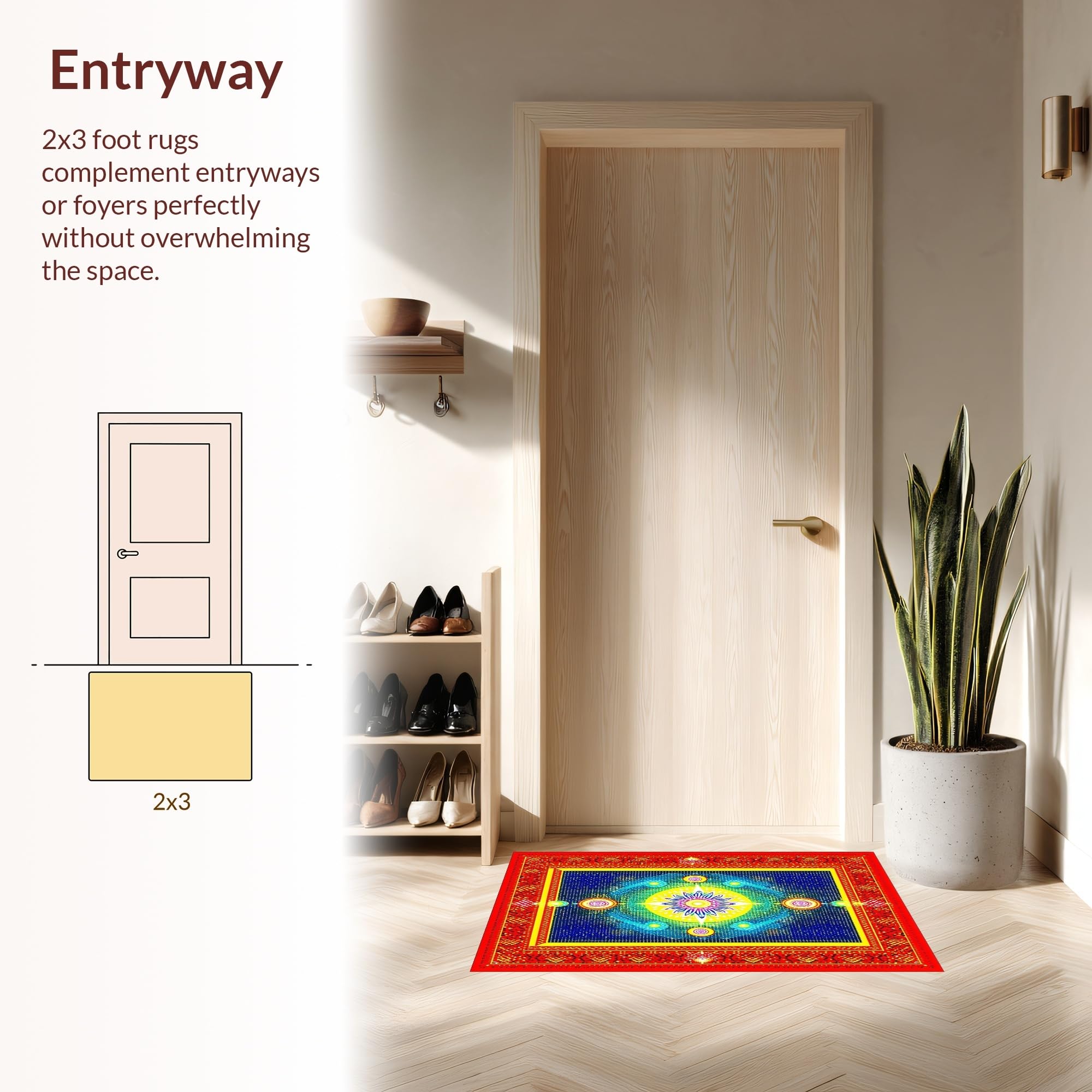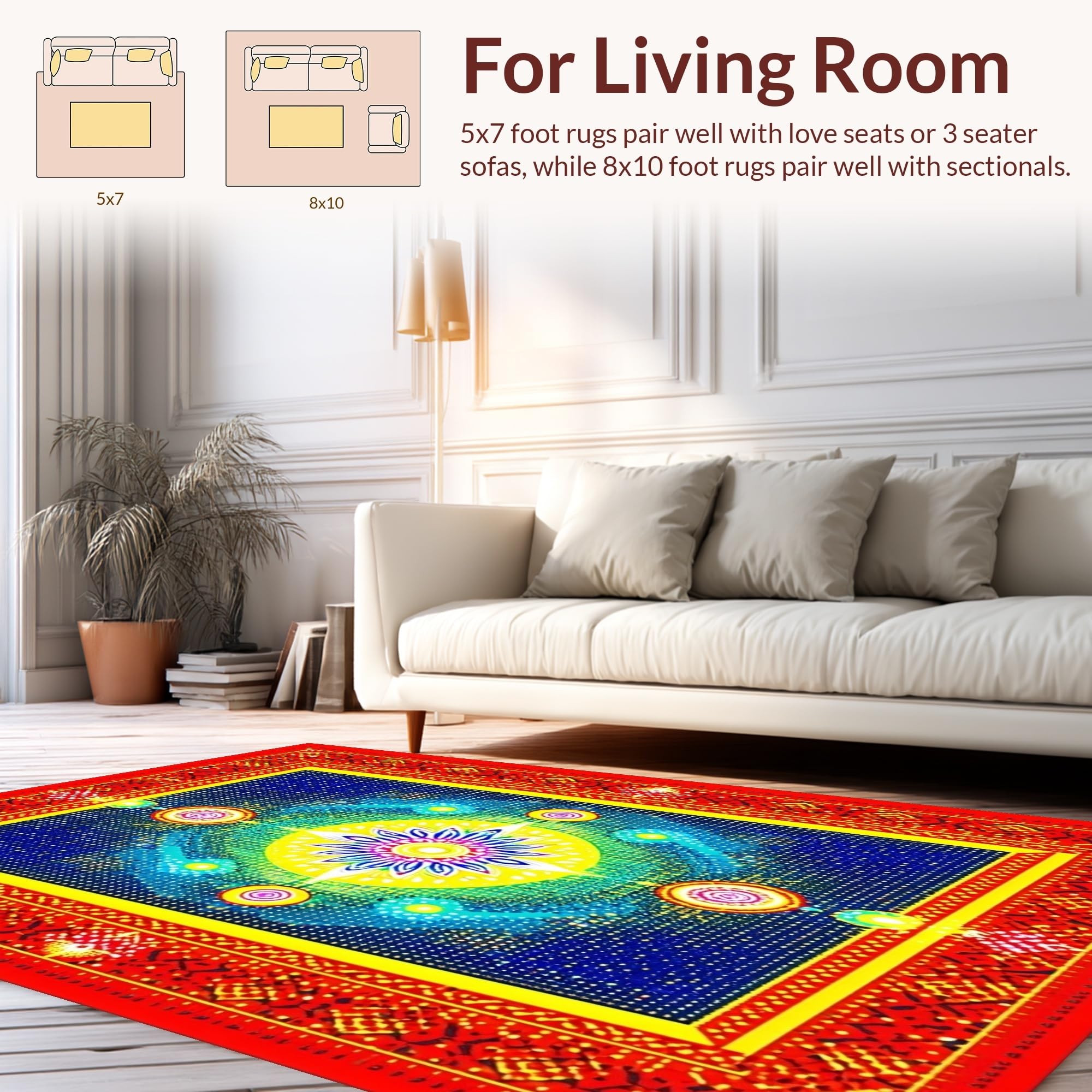 Ultra Soft Area Rug, Non Slip, Stain Resistant, Washable Area Rugs for Living Room, Bedroom, Eclectic Spiritual Symbolic Artwork(Red) Overview: