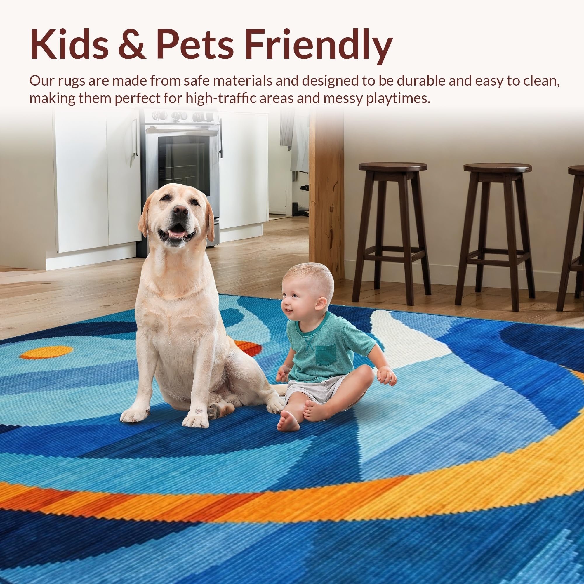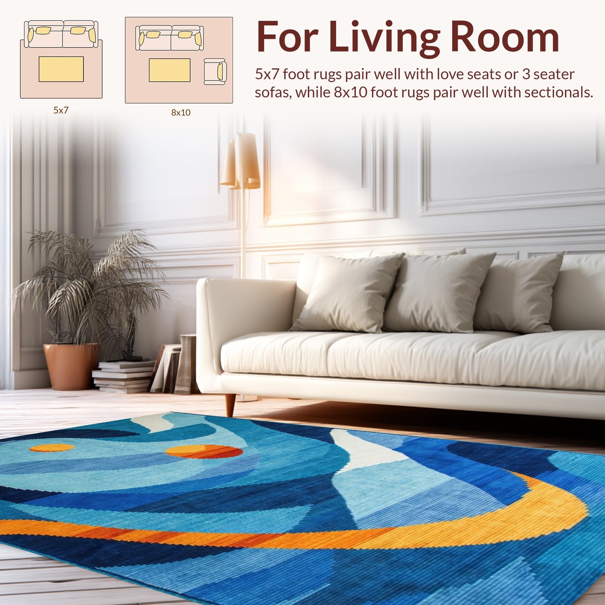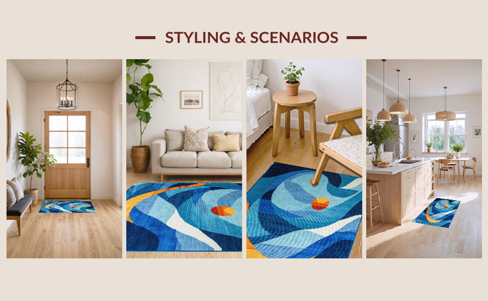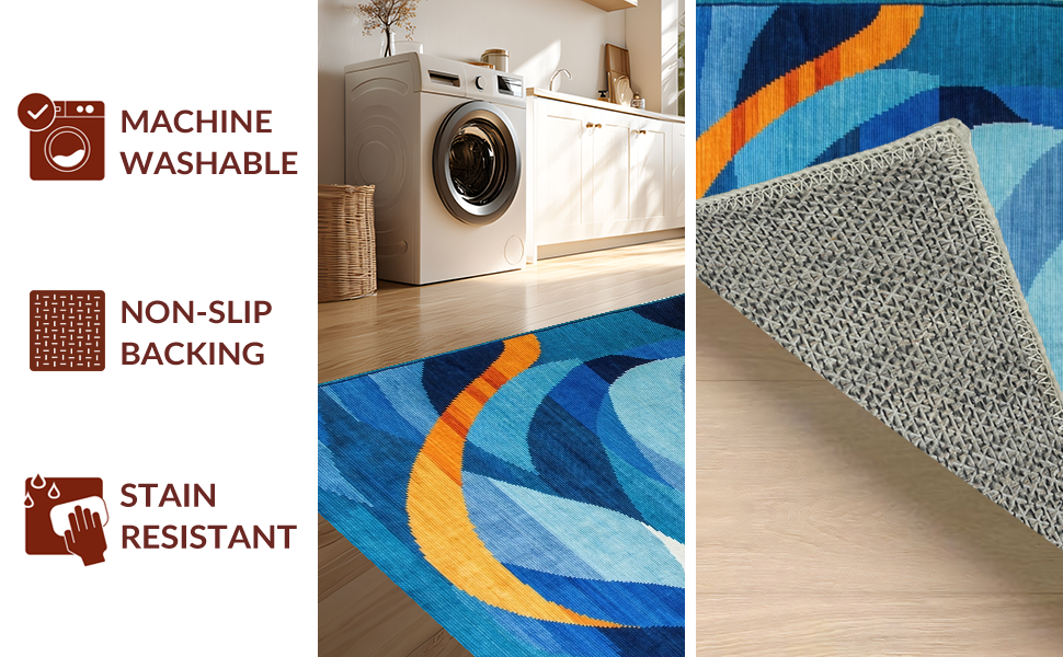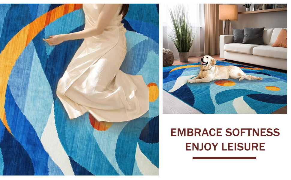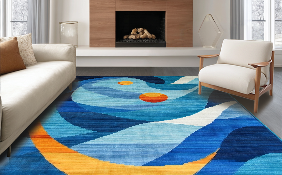 Ultra Soft Area Rug, Non Slip, Stain Resistant, Washable Area Rugs for Living Room, Bedroom, Eclectic Vibrant Abstract Motif(Blue) Overview: