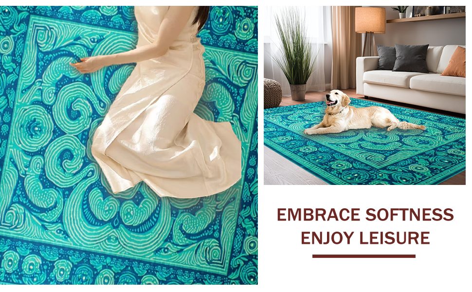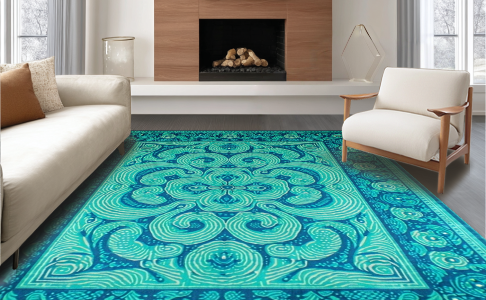 Ultra Soft Area Rug, Non Slip, Stain Resistant, Washable Area Rugs for Living Room, Bedroom, Eclectic Vibrant Artistic Design(Blue) Overview: