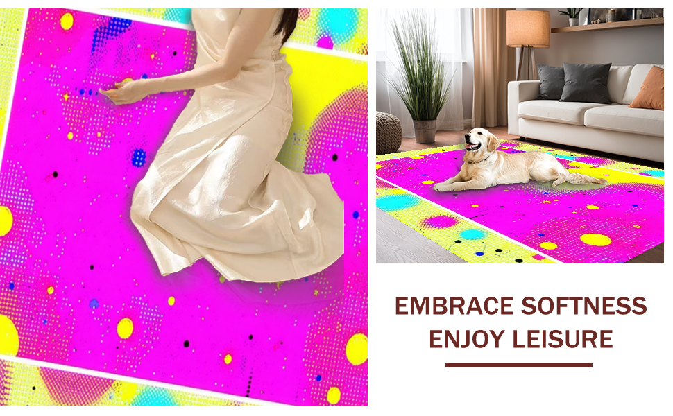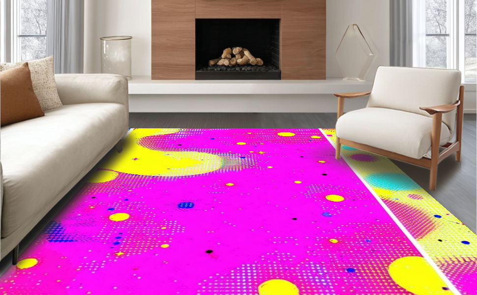 Ultra Soft Area Rug, Non Slip, Stain Resistant, Washable Area Rugs for Living Room, Bedroom, Eclectic Vibrant Curvilinear Shapes(Pink) Overview: