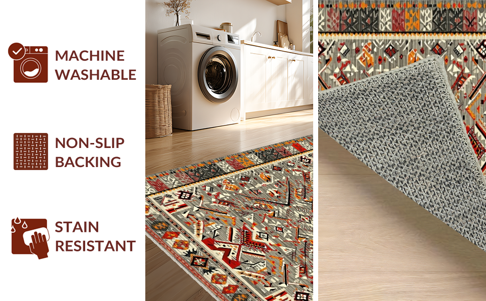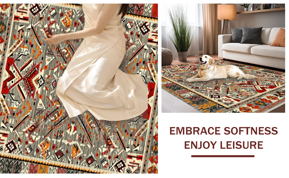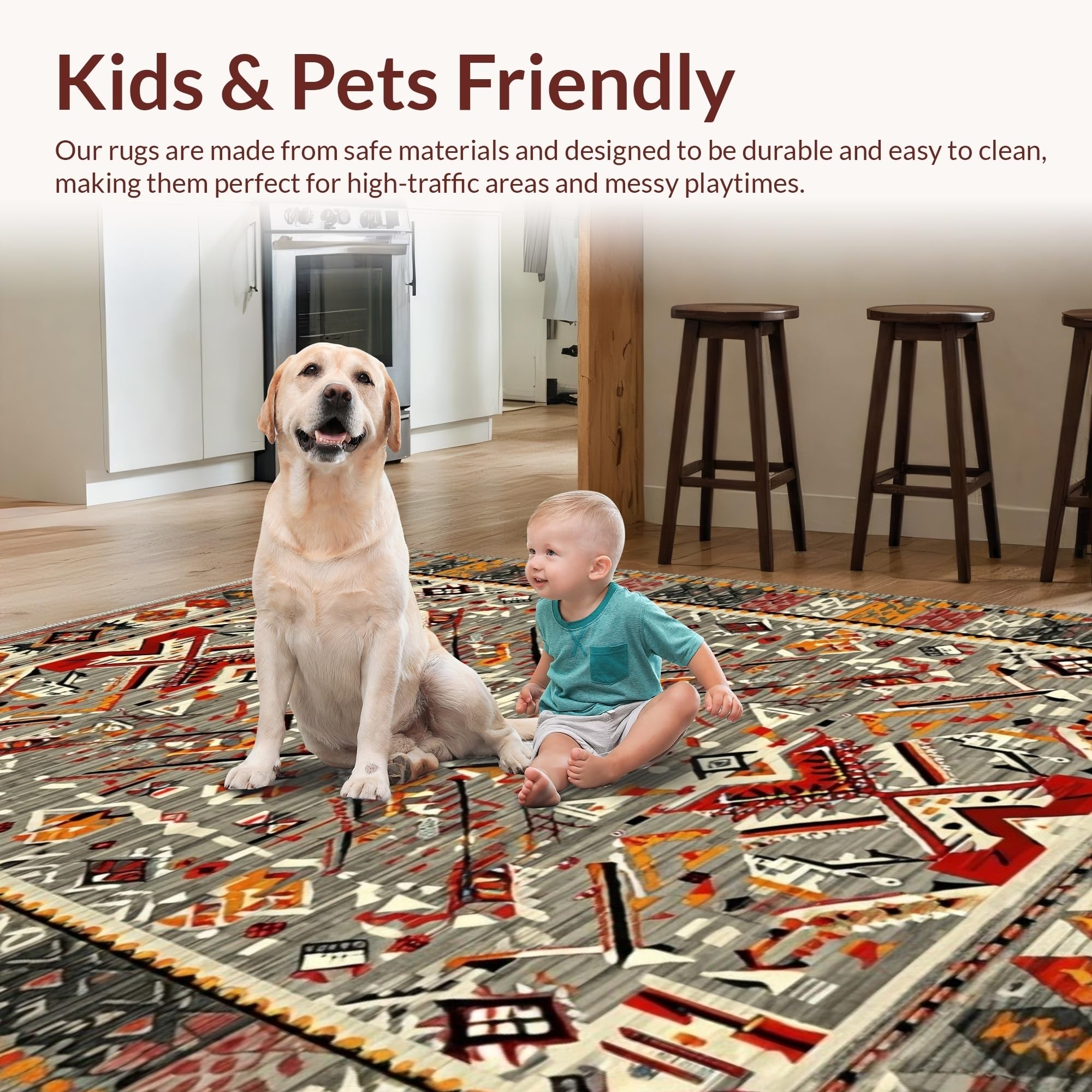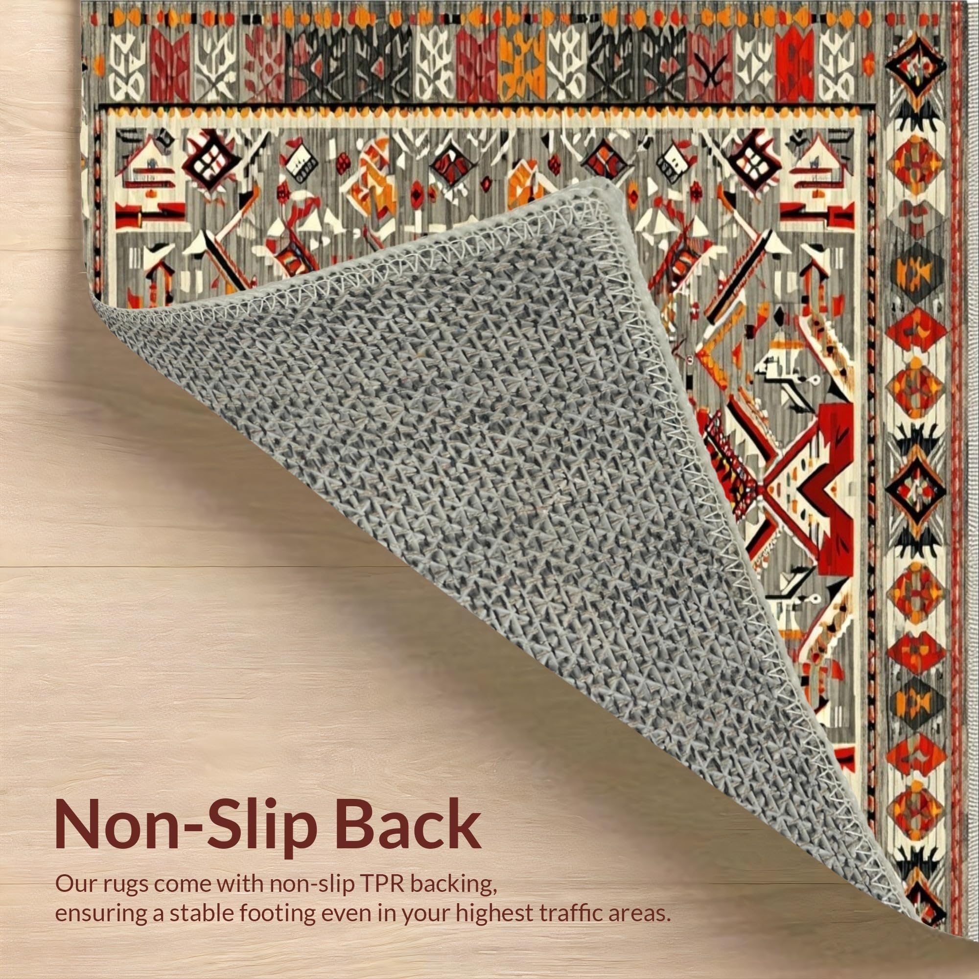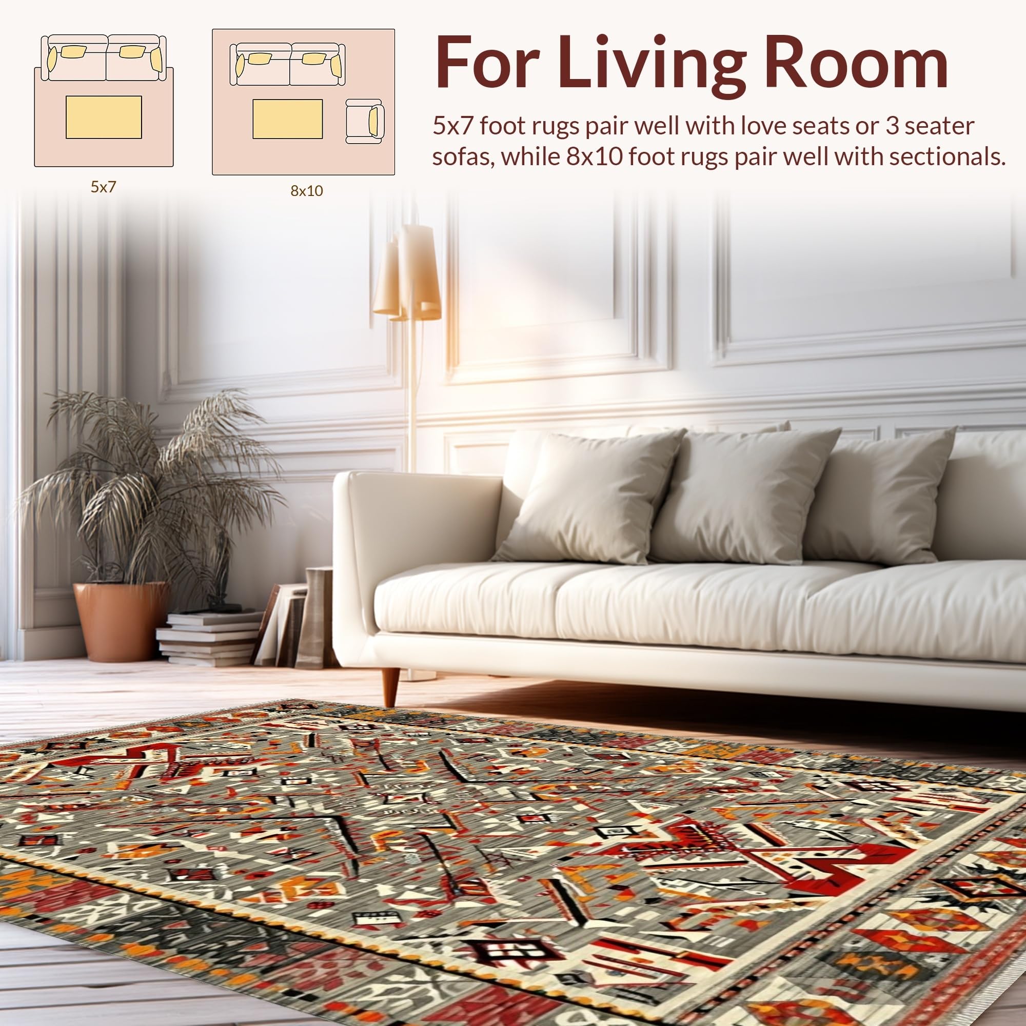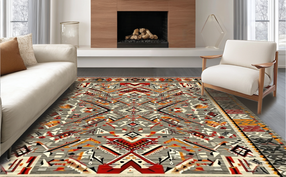 Ultra Soft Area Rug, Non Slip, Stain Resistant, Washable Area Rugs for Living Room, Bedroom, Eclectic Vibrant Ethnic Weave(Gray) Overview: