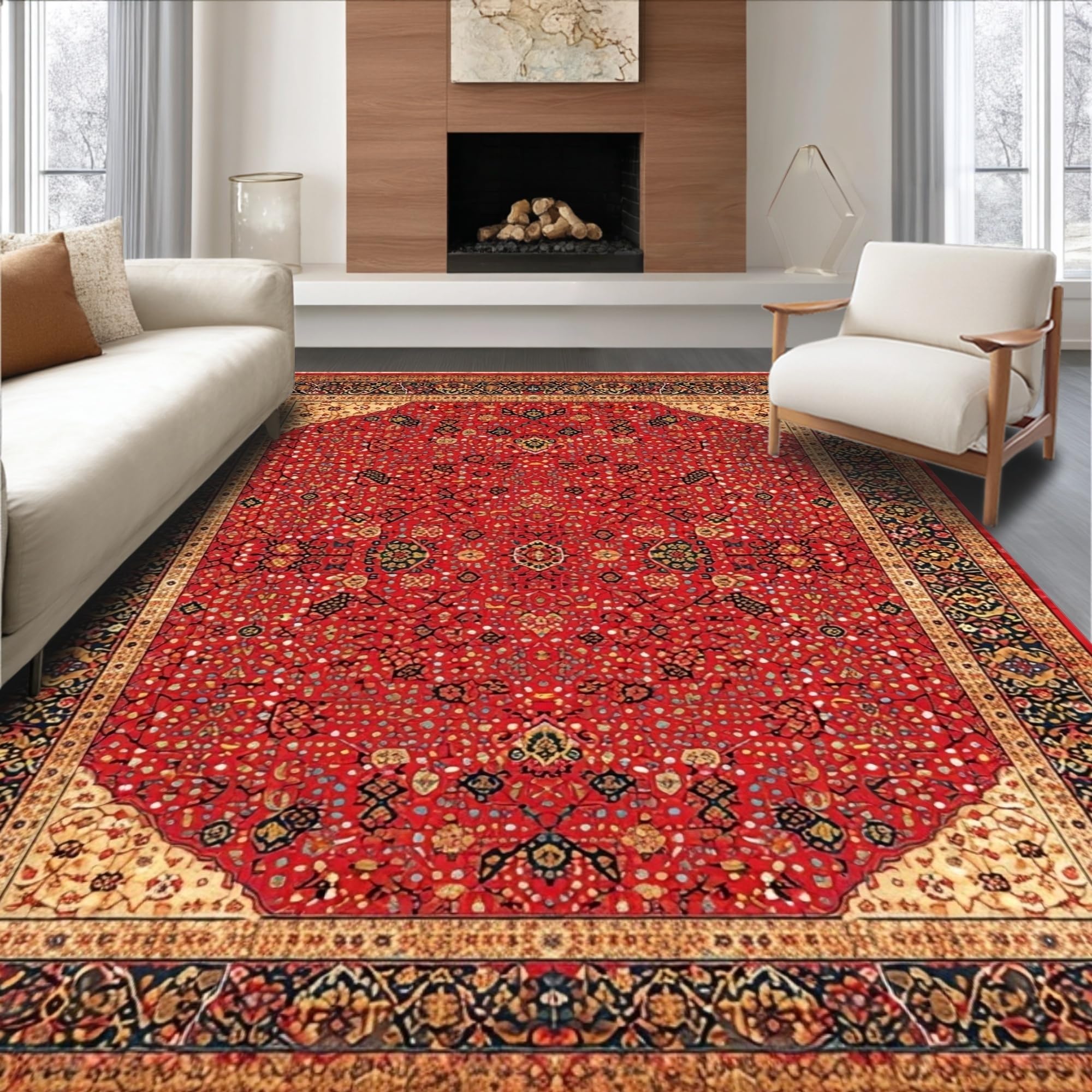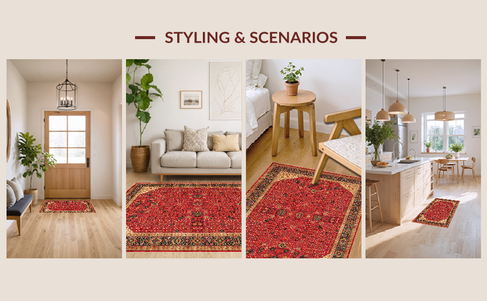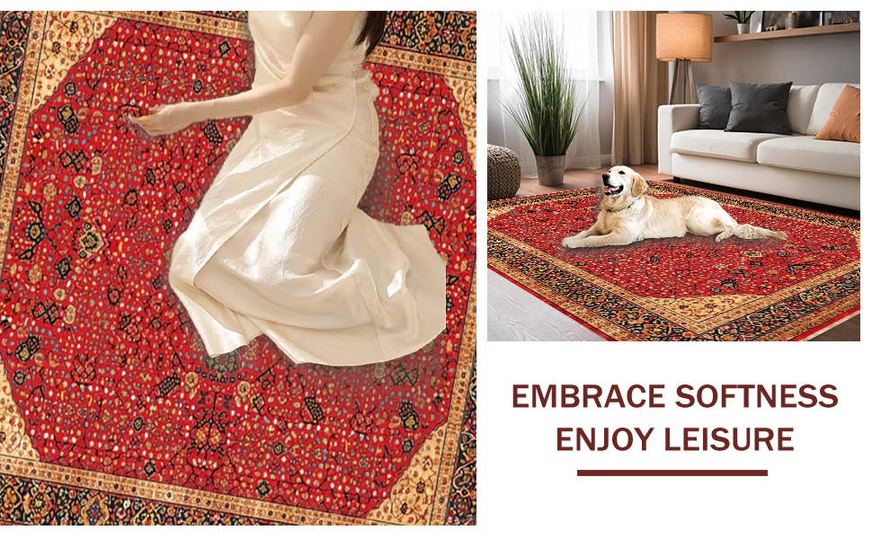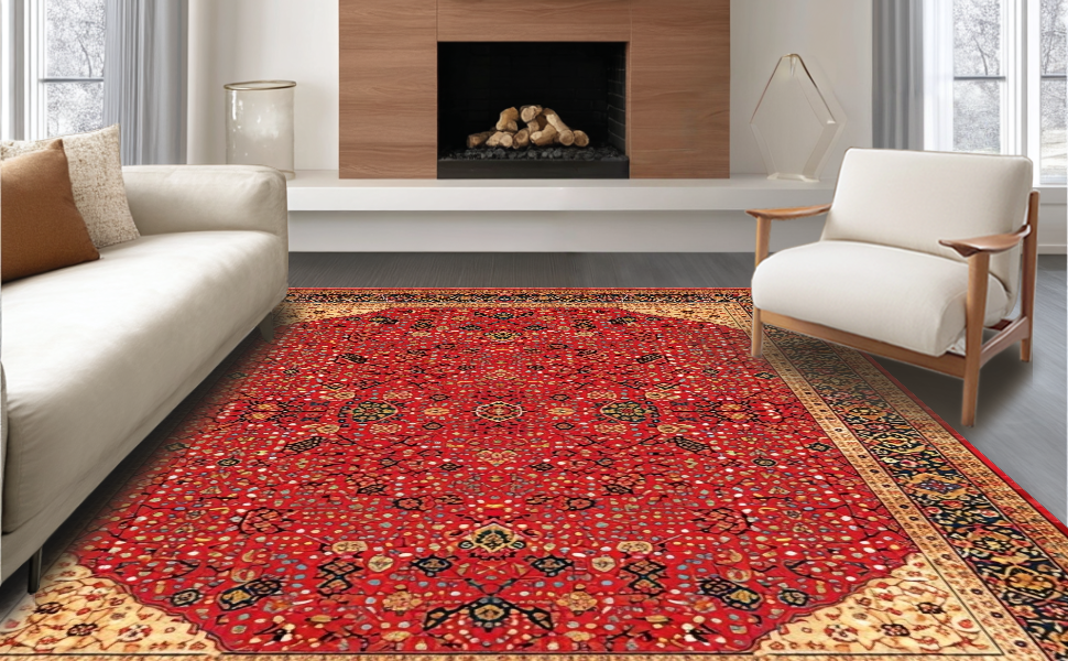 Ultra Soft Area Rug, Non Slip, Stain Resistant, Washable Area Rugs for Living Room, Bedroom, Eclectic Vibrant Floral Collage(Red) Overview: