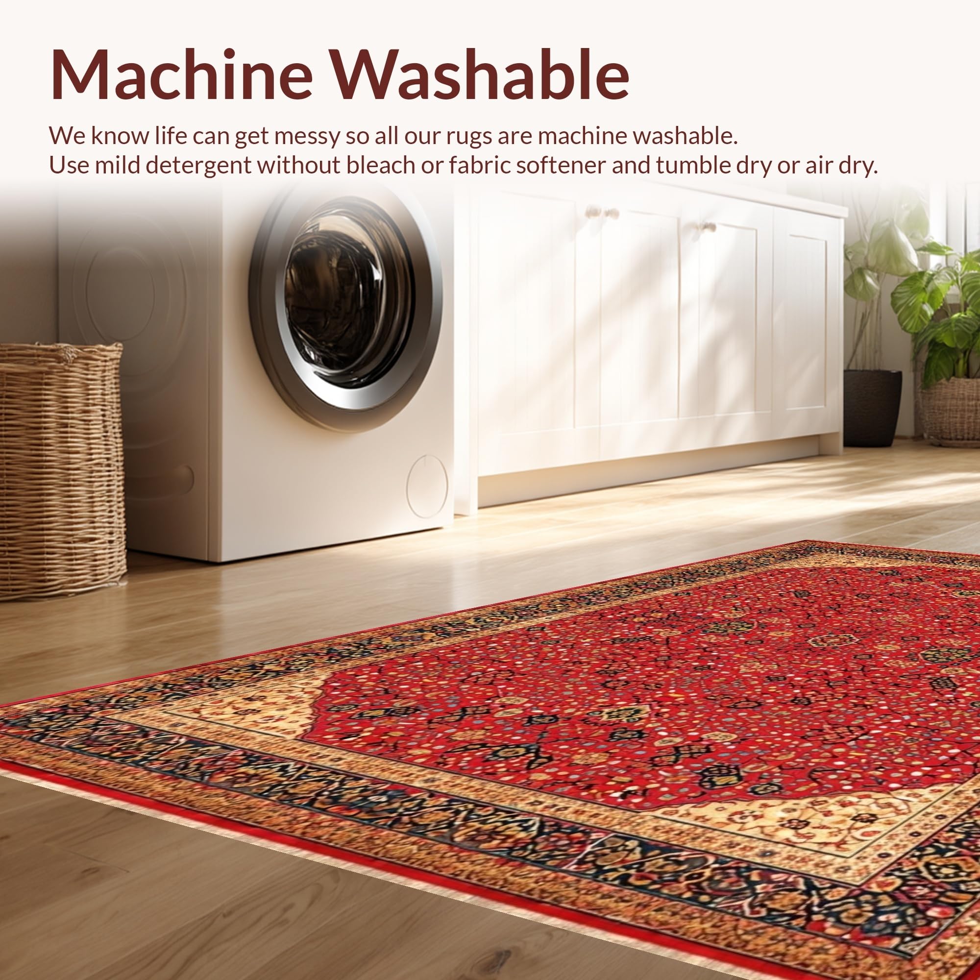- Machine Washable: Our rugs can be easily thrown in the wash machine.