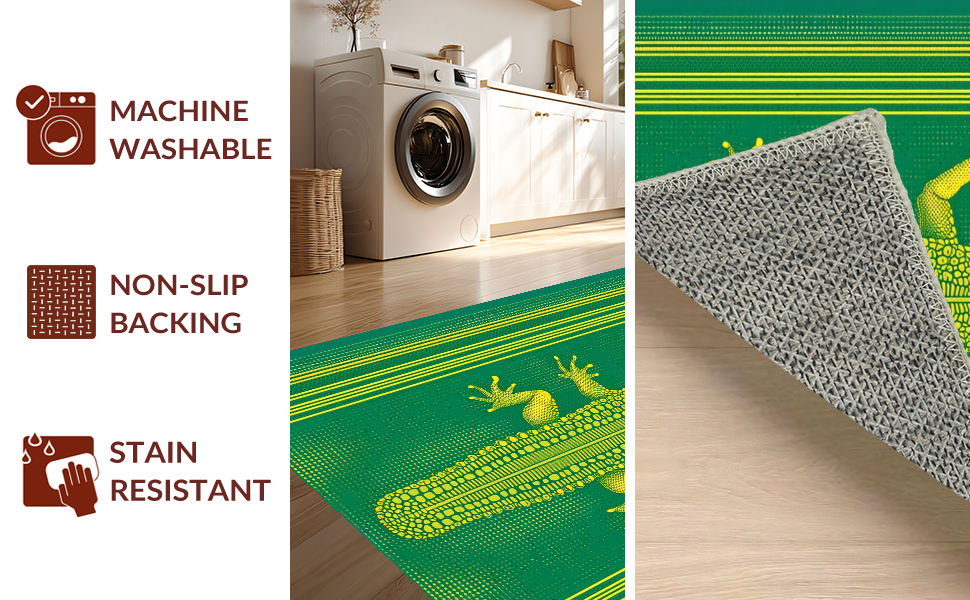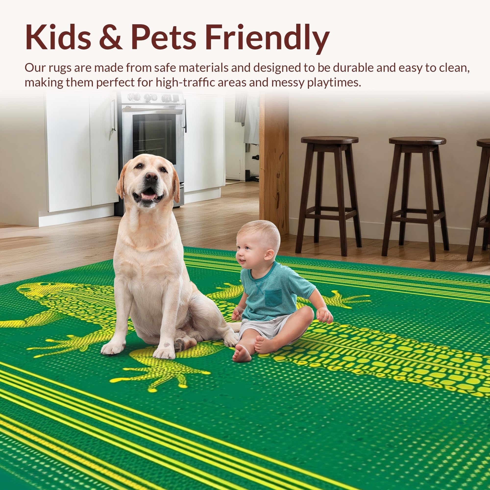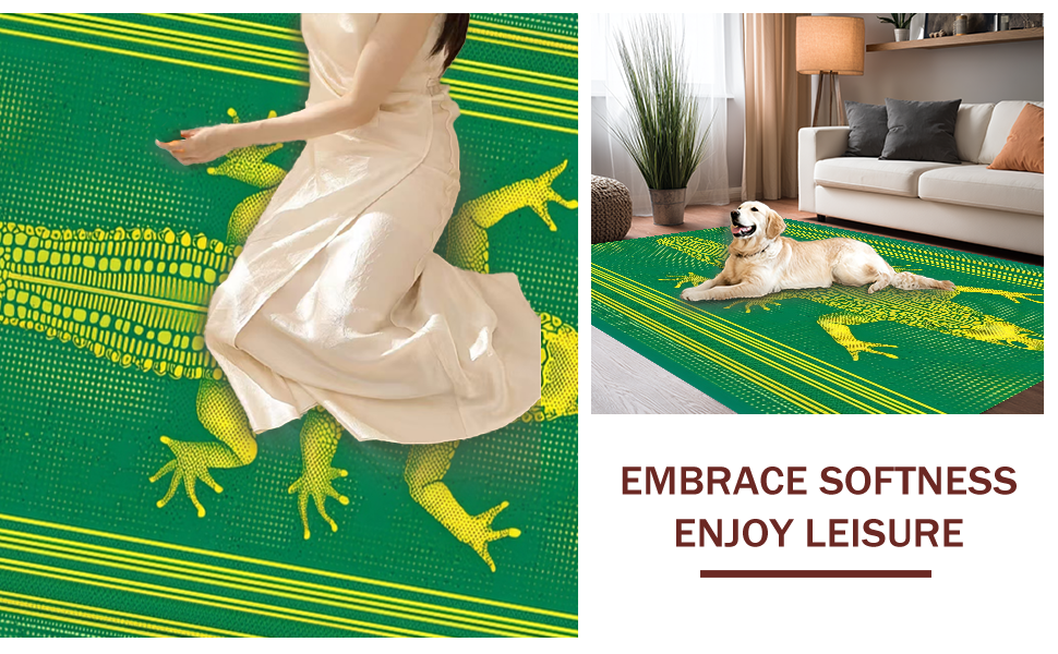 Ultra Soft Area Rug, Non Slip, Stain Resistant, Washable Area Rugs for Living Room, Bedroom, Eclectic Vibrant Wildlife Design(Green) Overview: