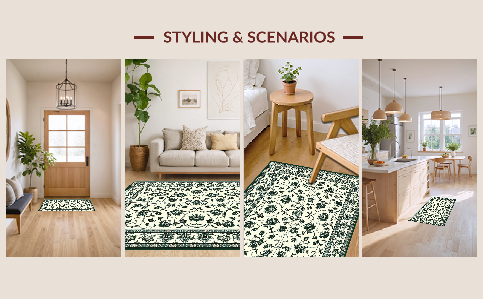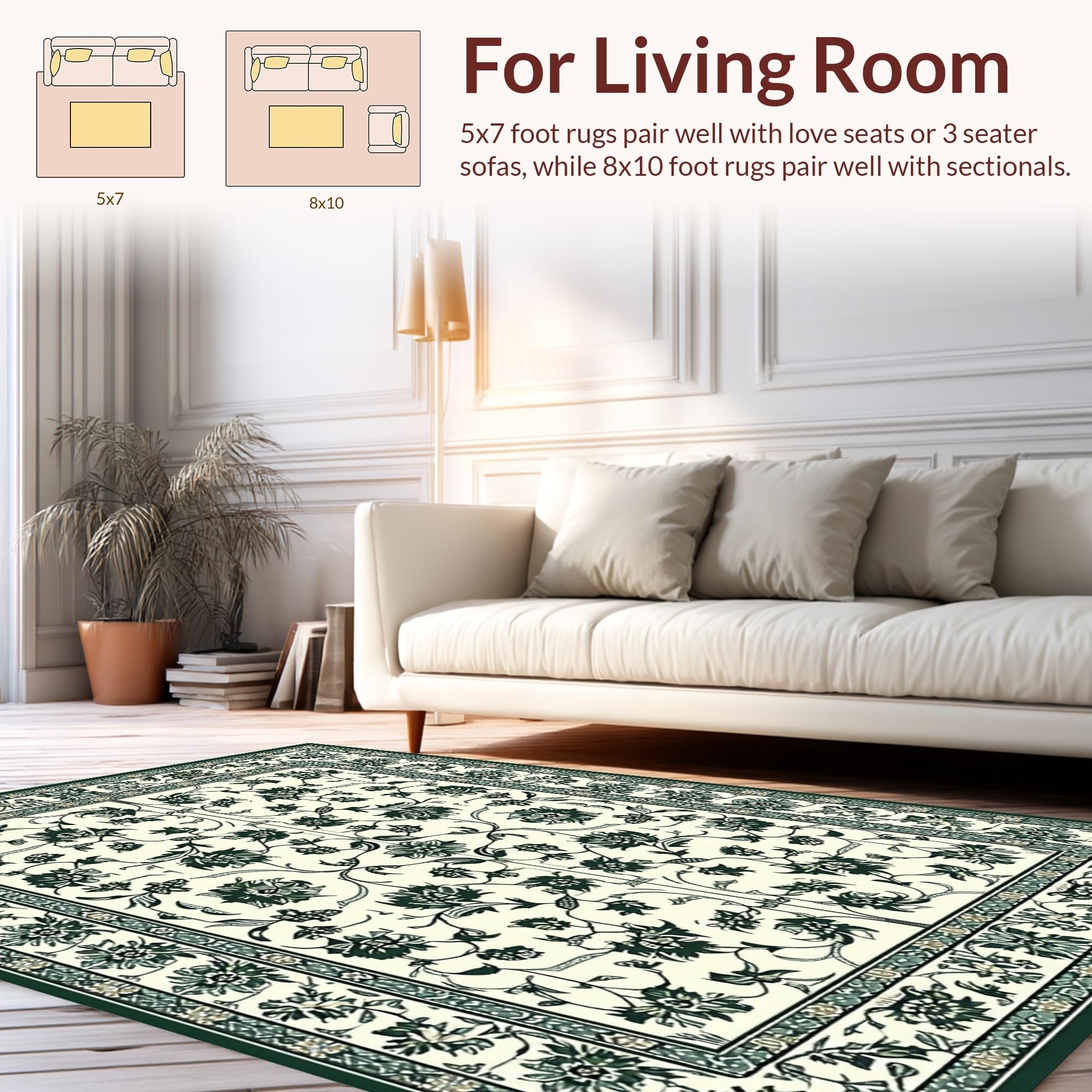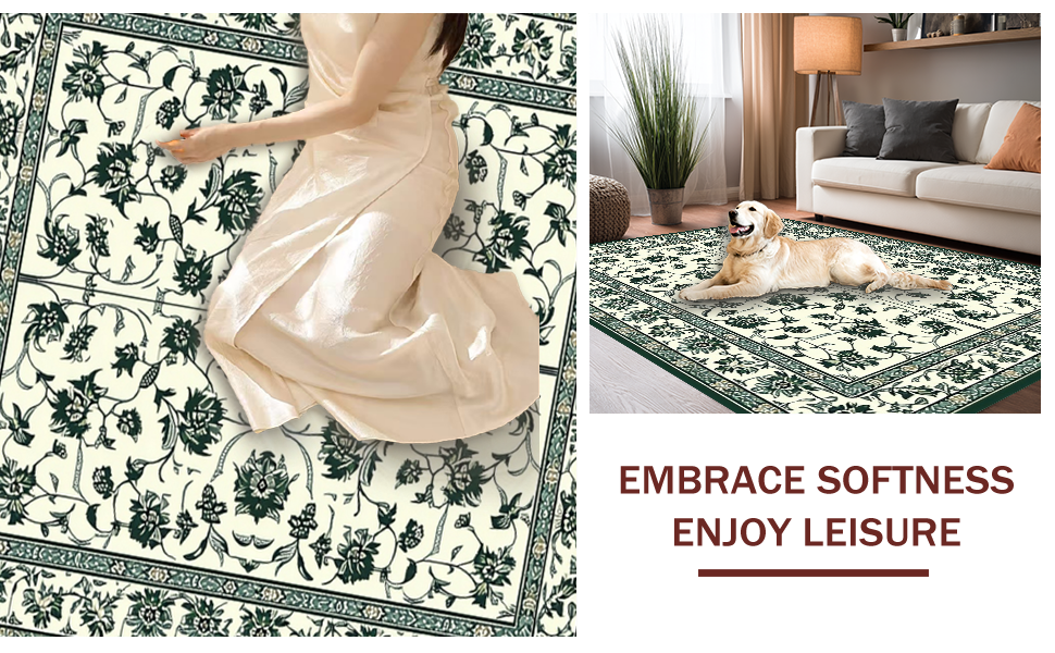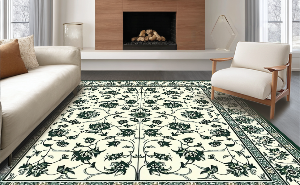 Ultra Soft Area Rug, Non Slip, Stain Resistant, Washable Area Rugs for Living Room, Bedroom, Eclectic Vintage Garden Aesthetic(White) Overview: