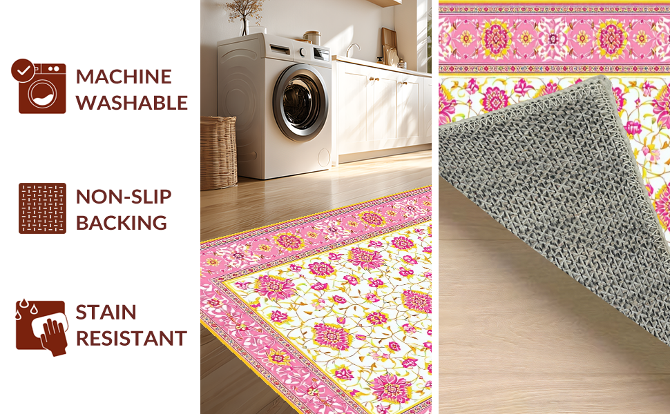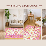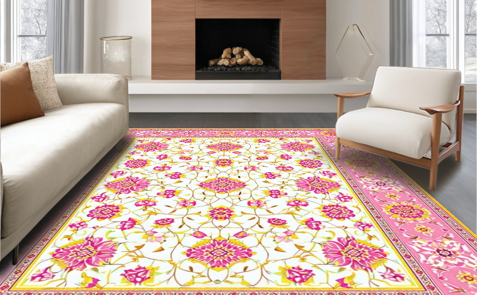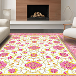 Ultra Soft Area Rug, Non Slip, Stain Resistant, Washable Area Rugs for Living Room, Bedroom, Eclectic Whimsical Floral Motif(Pink) Overview: