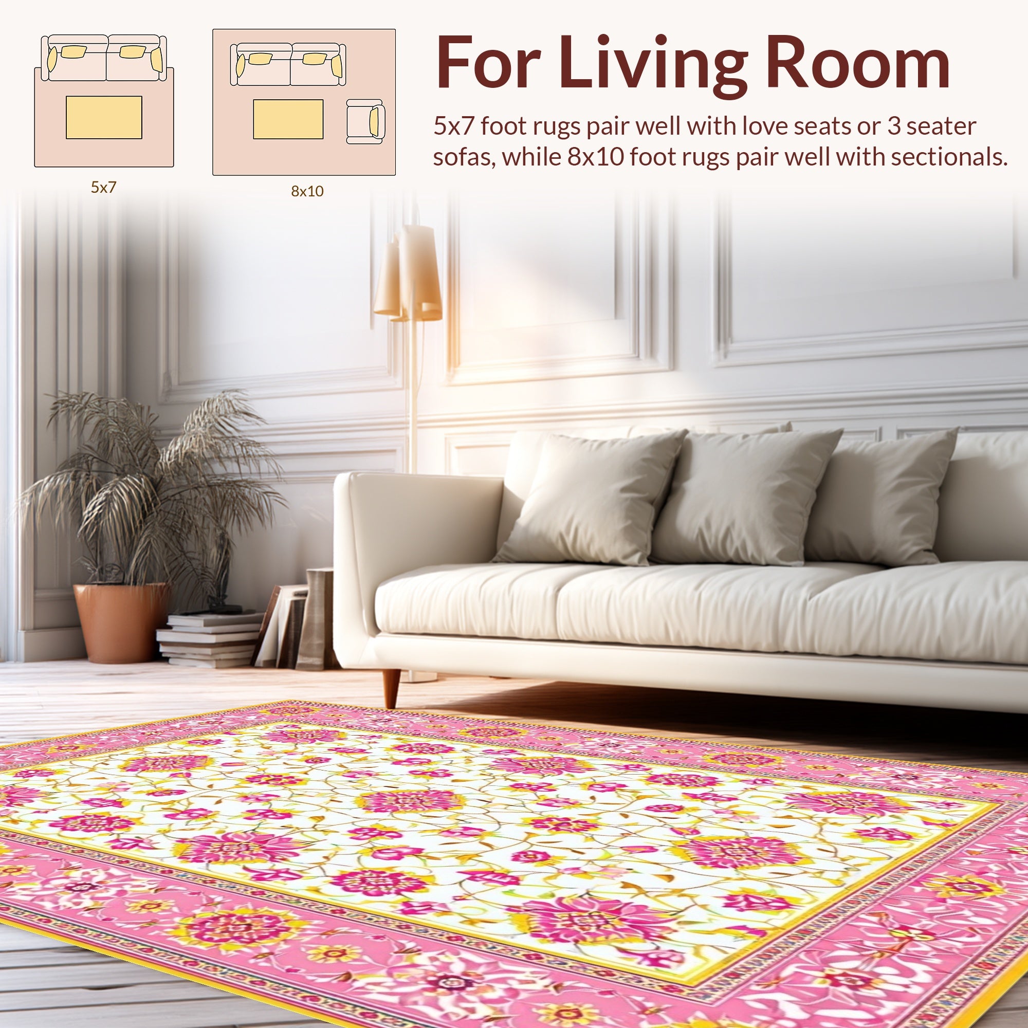 Flatwoven High Traffic Area Rug, Eclectic Whimsical Floral Motif, Non Slip, Stain Resistant, Washable Area Rugs for Living Room, Bedroom (Pink) Overview: