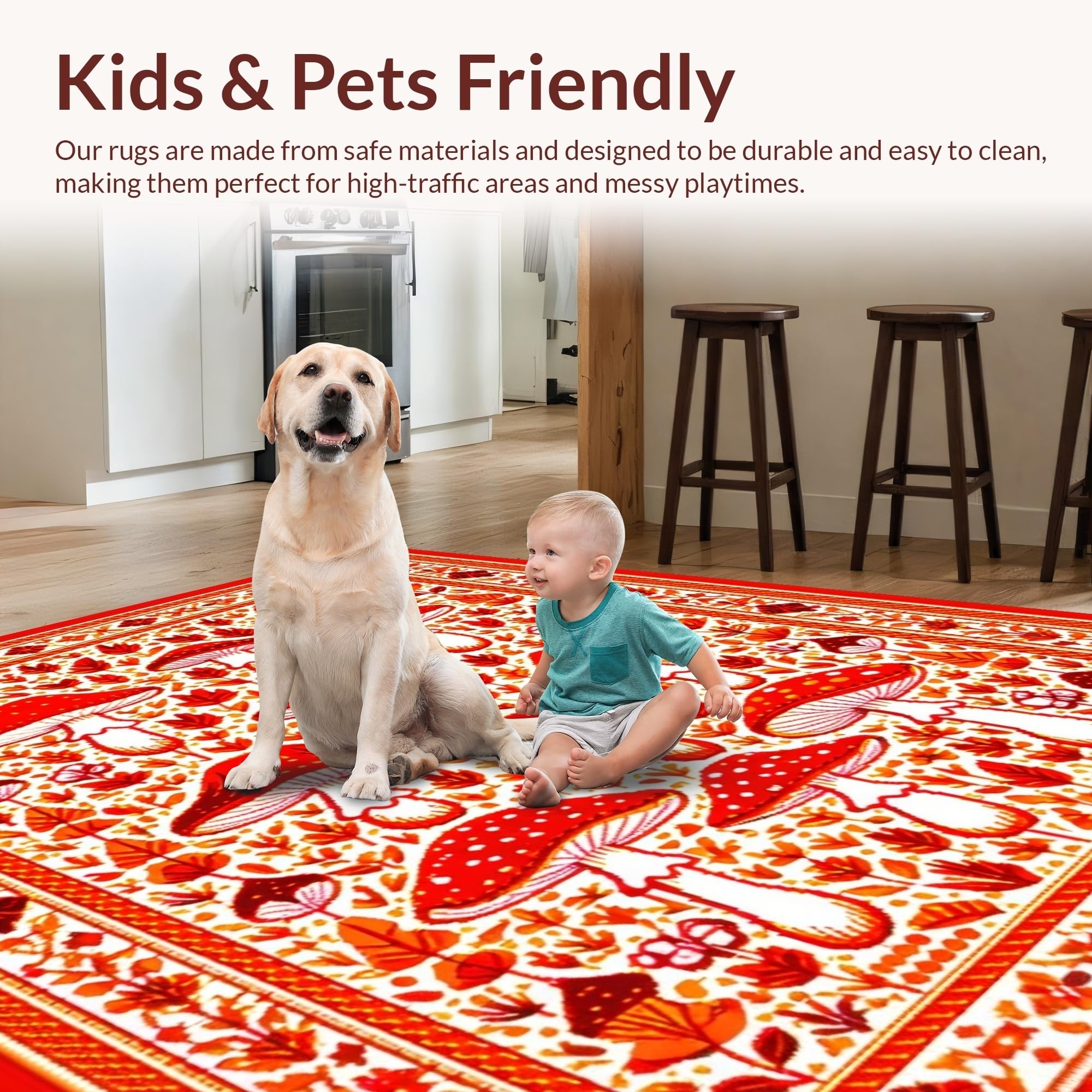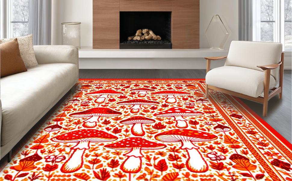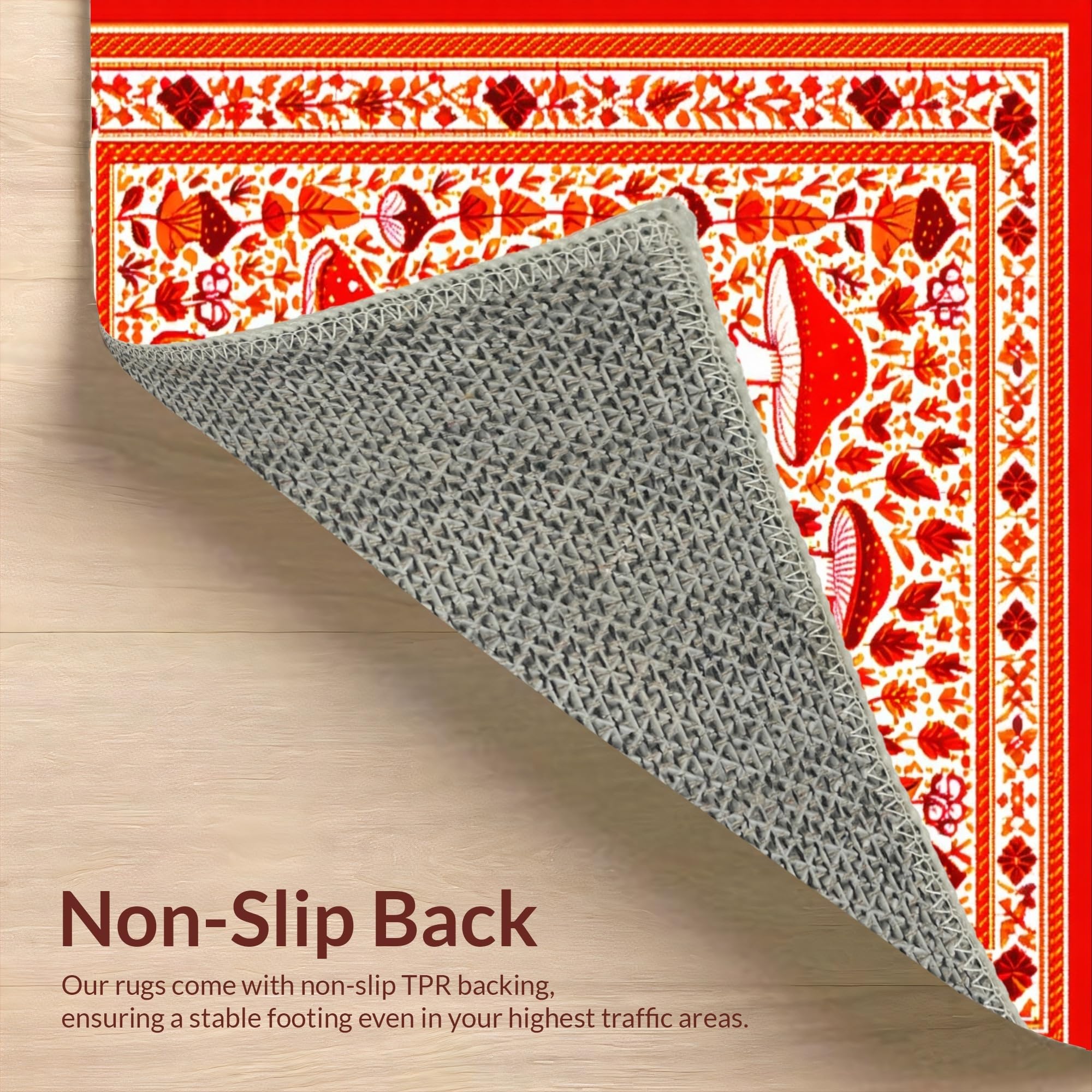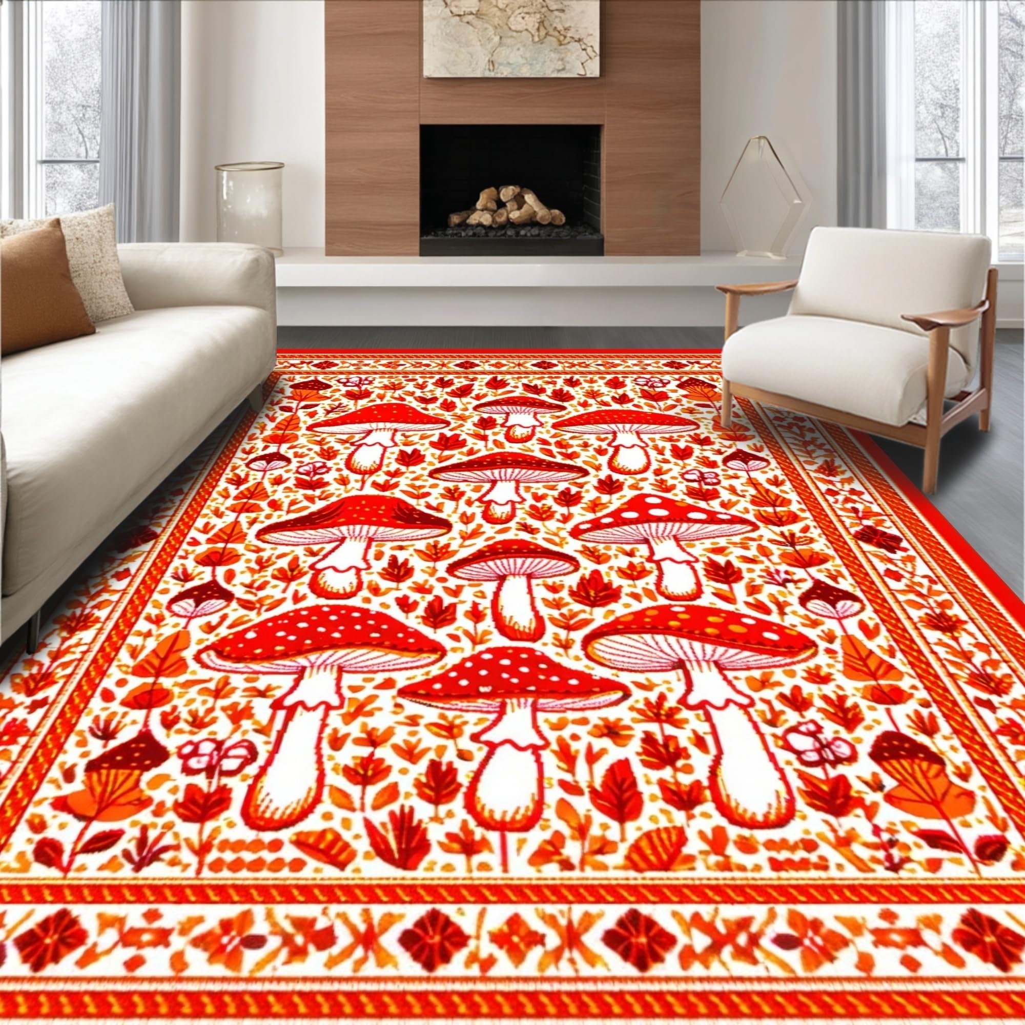 Ultra Soft Area Rug, Non Slip, Stain Resistant, Washable Area Rugs for Living Room, Bedroom, Eclectic Whimsical Fungi Artistry(Red) Overview: