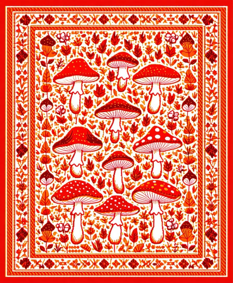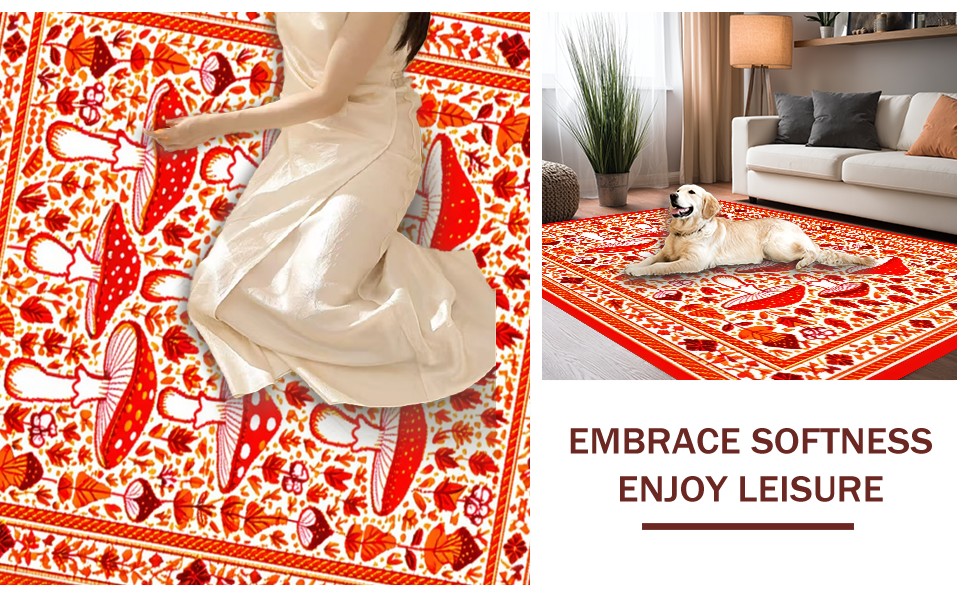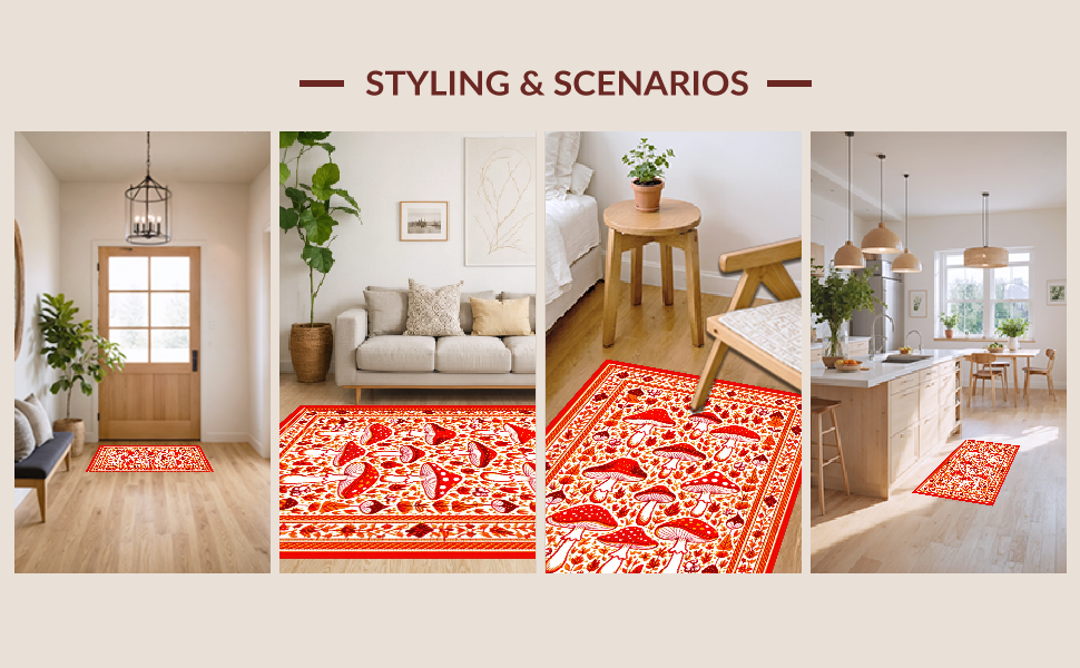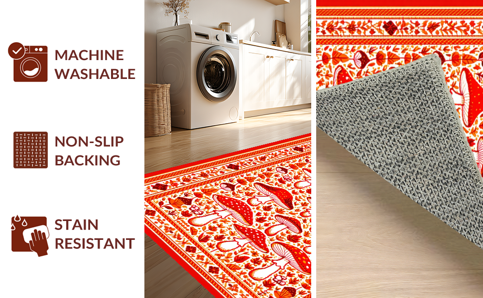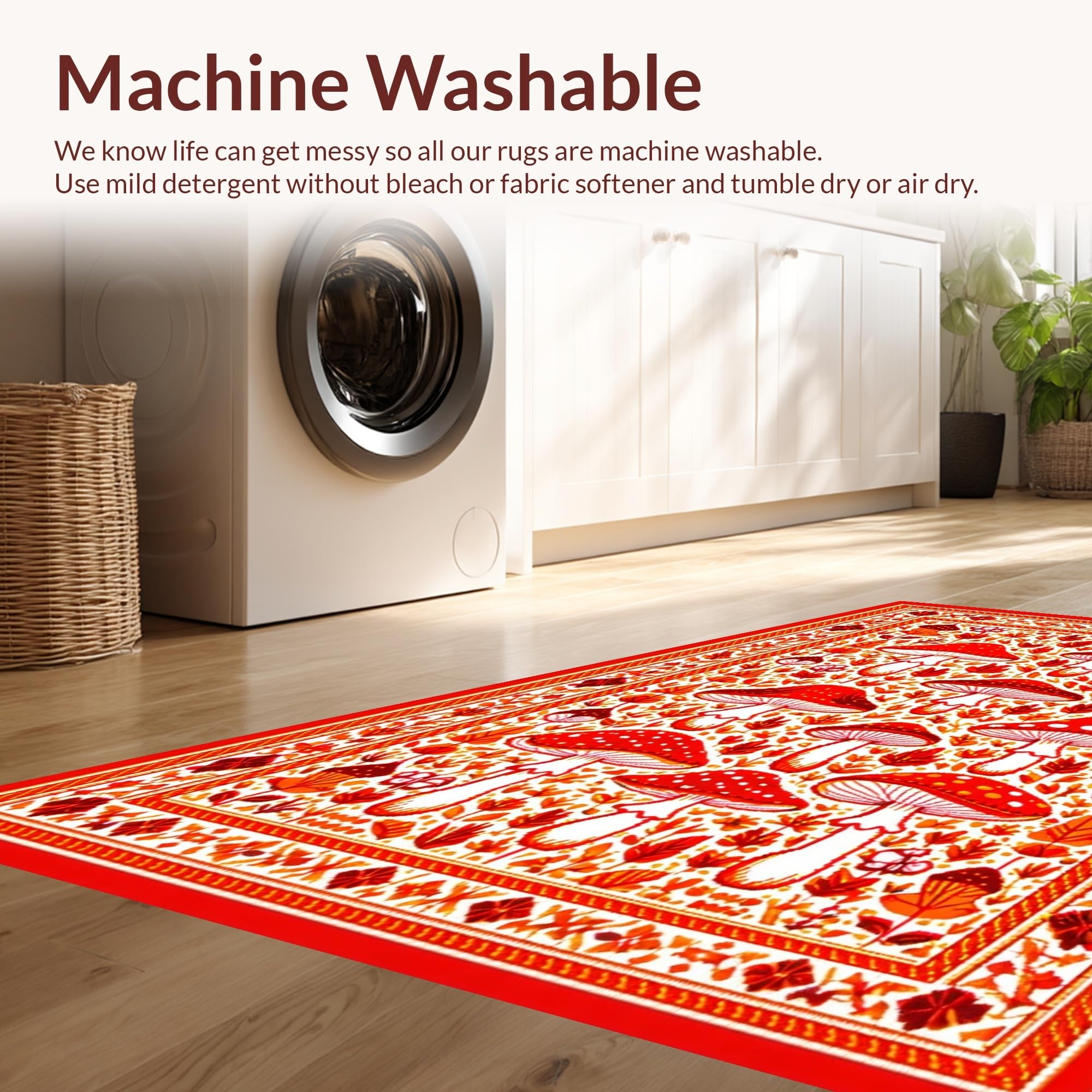 Ultra Soft Area Rug, Non Slip, Stain Resistant, Washable Area Rugs for Living Room, Bedroom, Eclectic Whimsical Fungi Artistry(Red) Overview: