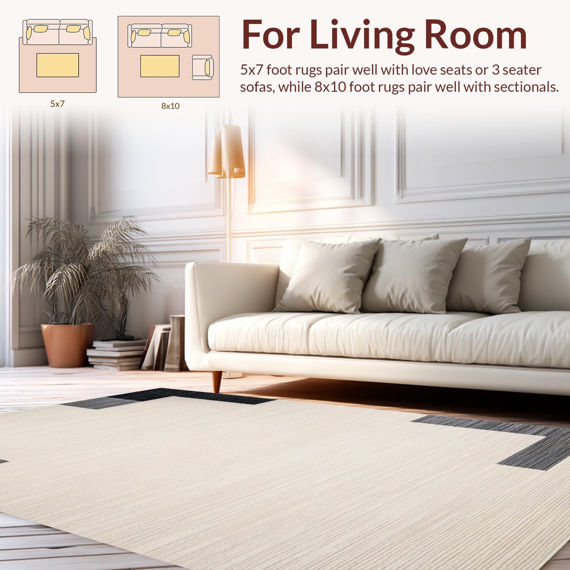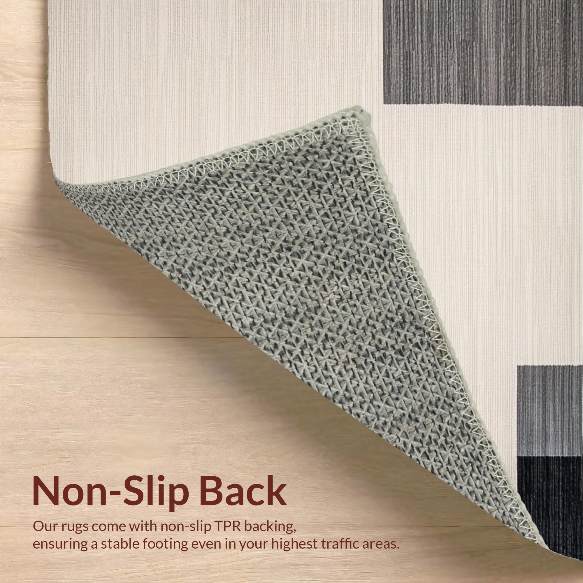 Ultra Soft Area Rug, Non Slip, Stain Resistant, Washable Area Rugs for Living Room, Bedroom, Eclectic Yellow Gray Symmetry(Beige) Overview: