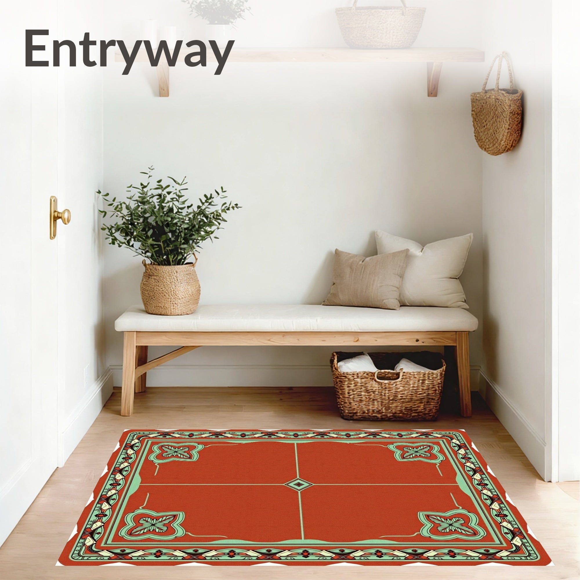 Ultra Soft Area Rug, Non Slip, Stain Resistant, Washable Area Rugs for Living Room, Bedroom, Edge Kilim Design Tasseled Throw with Earthy Tones(Red) Overview: