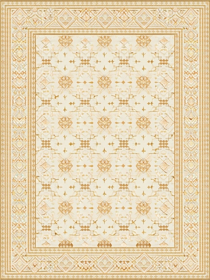 Edge Rug with Symmetrical Geometric Patterns and Neutral Tones(Beige)