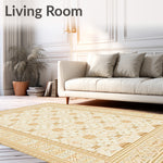 Ultra Soft Area Rug, Non Slip, Stain Resistant, Washable Area Rugs for Living Room, Bedroom, Edge Rug with Symmetrical Geometric Patterns and Neutral Tones(Beige) Overview: